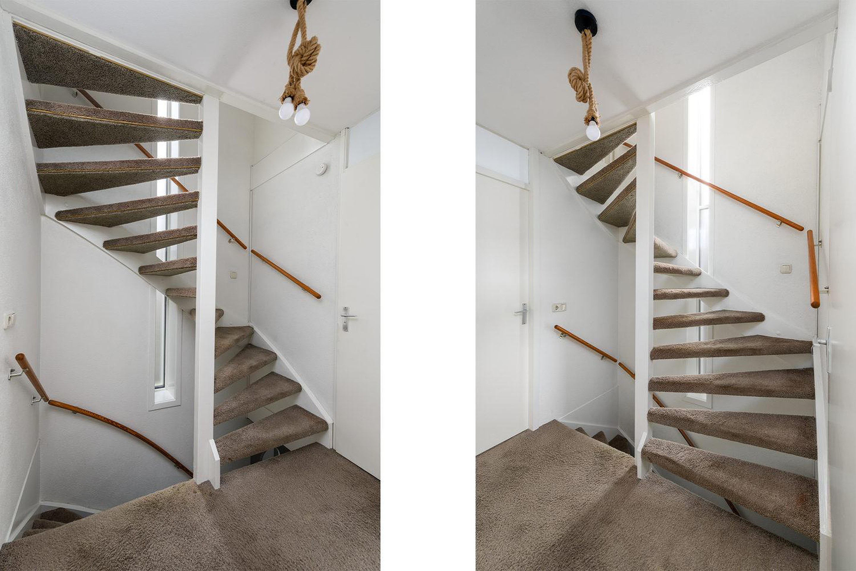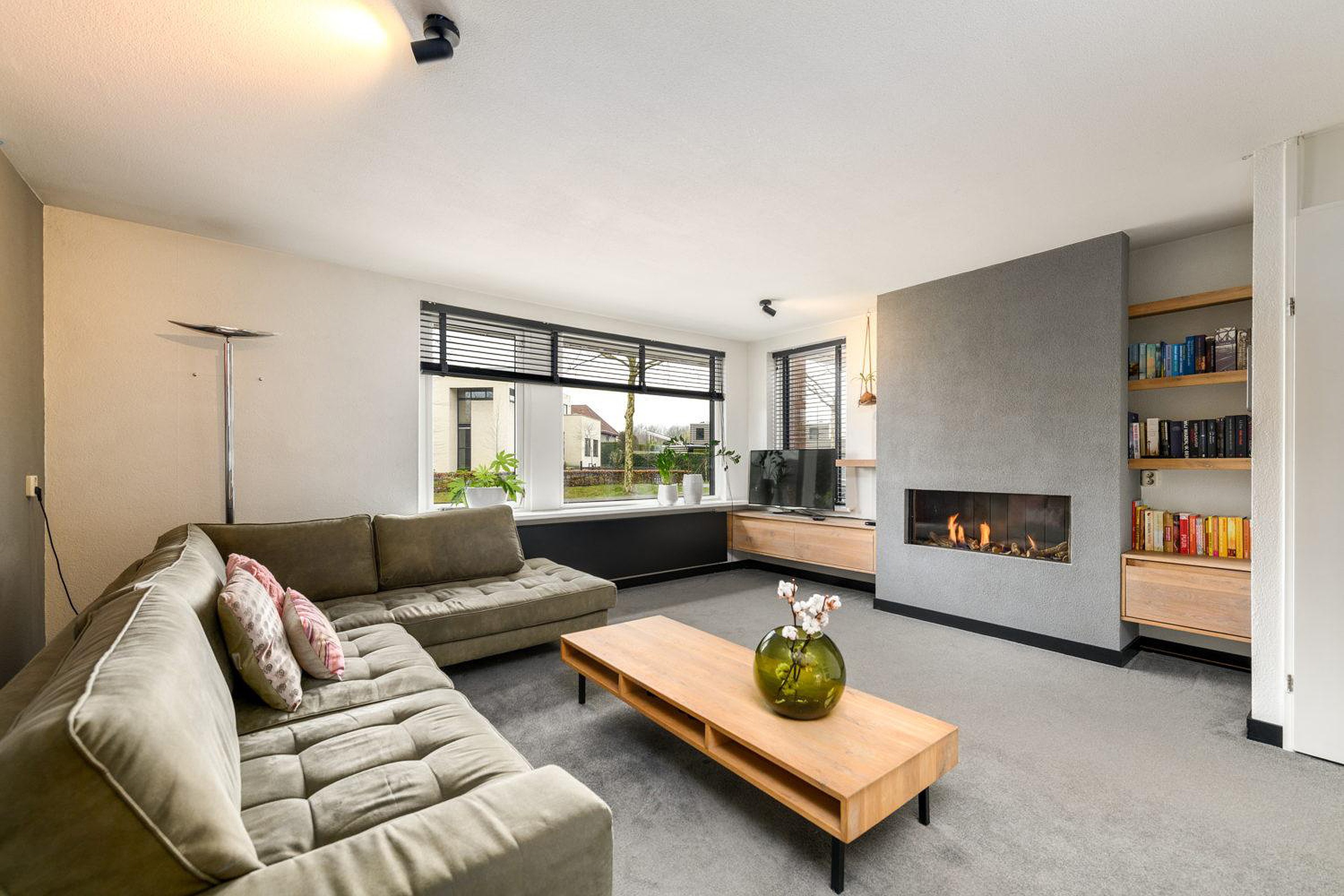 Begane grond Entree, hal, meterkast met krachtstroom, modern toilet (wandcloset) met fonteintje en trapopgang naar de verdieping. De ruime en sfeervolle woonkamer met zijraam heeft vrij uitzicht over de straat. Alle radiatoren zijn vervangen door LTV (lage temperatuur) radiatoren afgestemd op de warmtepomp. De hele begane grond beschikt over triple glas (HR+++). De blikvanger in de woonkamer is de centraal geplaatste sfeerhaard. In de woonkamer ligt een tapijt met ondervloer. In de hal en de leefkeuken ligt een fraaie PVC vloer met houtstructuur.