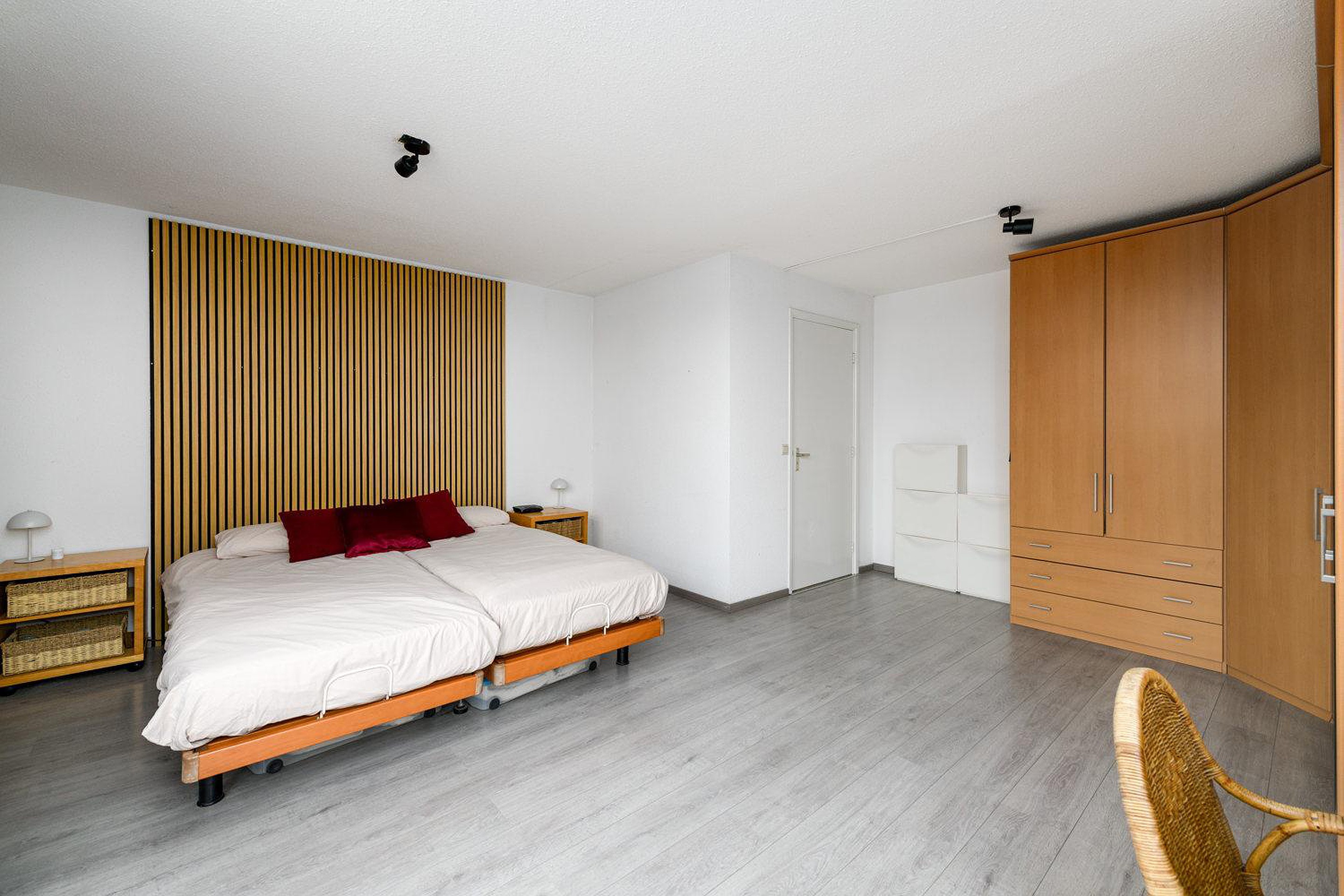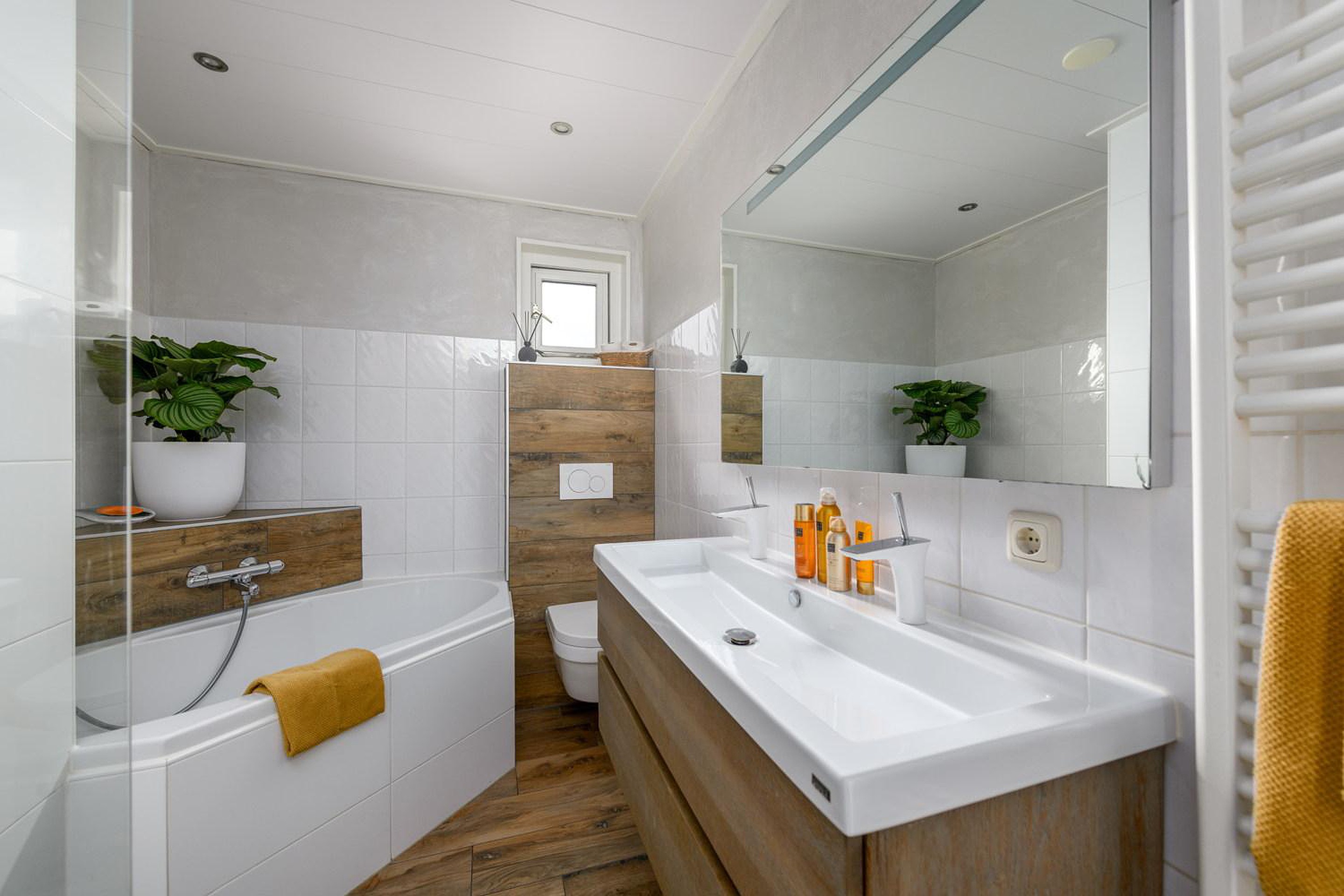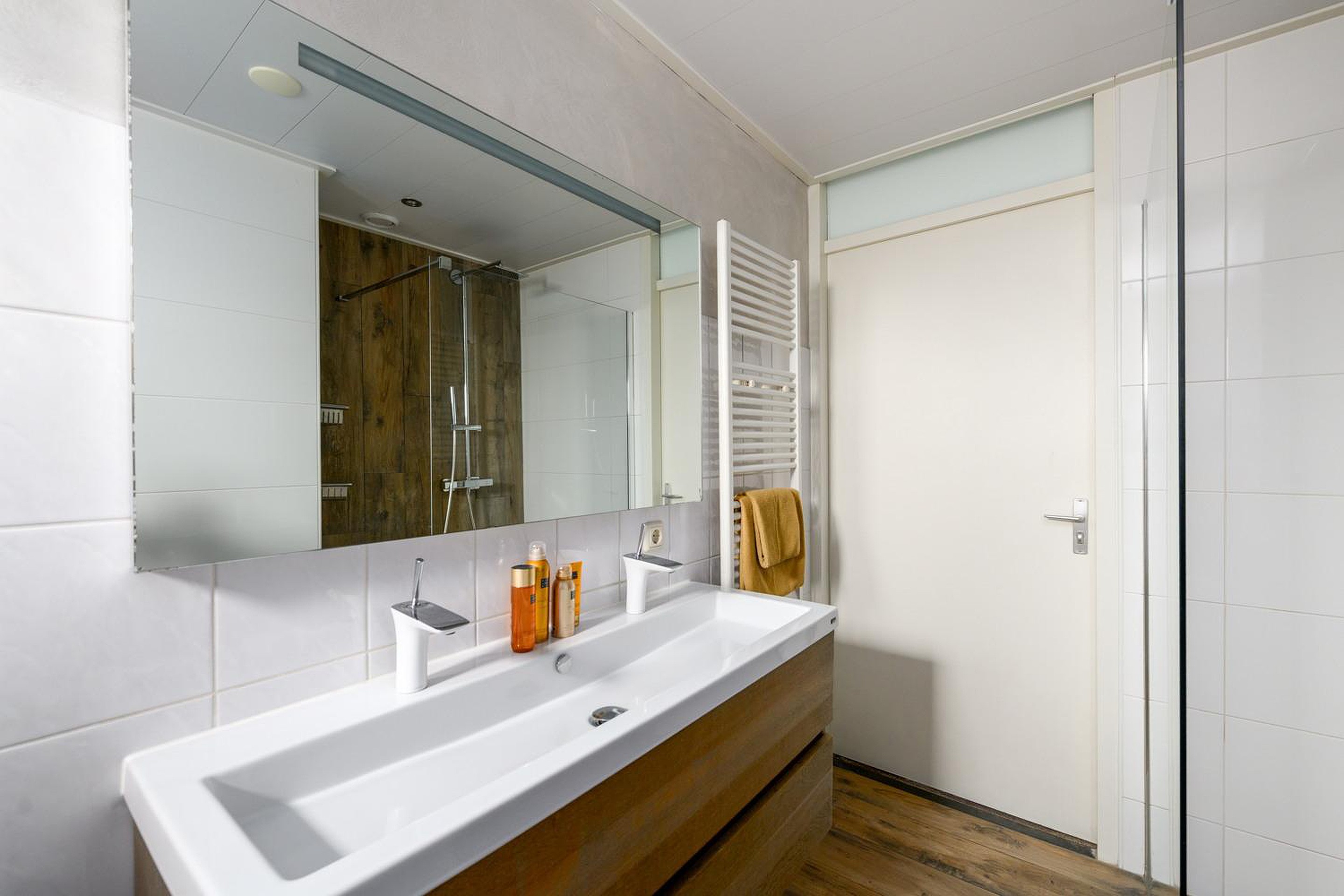 Eerste verdieping Op de eerste verdieping bevinden zich 3 ruime slaapkamers met een oppervlakte van respectievelijk 14,7 m2, 12,6 m2 en 10,3 m2 voorzien van een laminaat vloer en rolhorren voor de ramen. De moderne, stijlvolle en luxe badkamer (2020) met ligbad, inloopdouche, dubbele wastafel met meubel en extra tweede toilet (wandcloset). De hele verdieping beschikt over triple glas (HR+++).