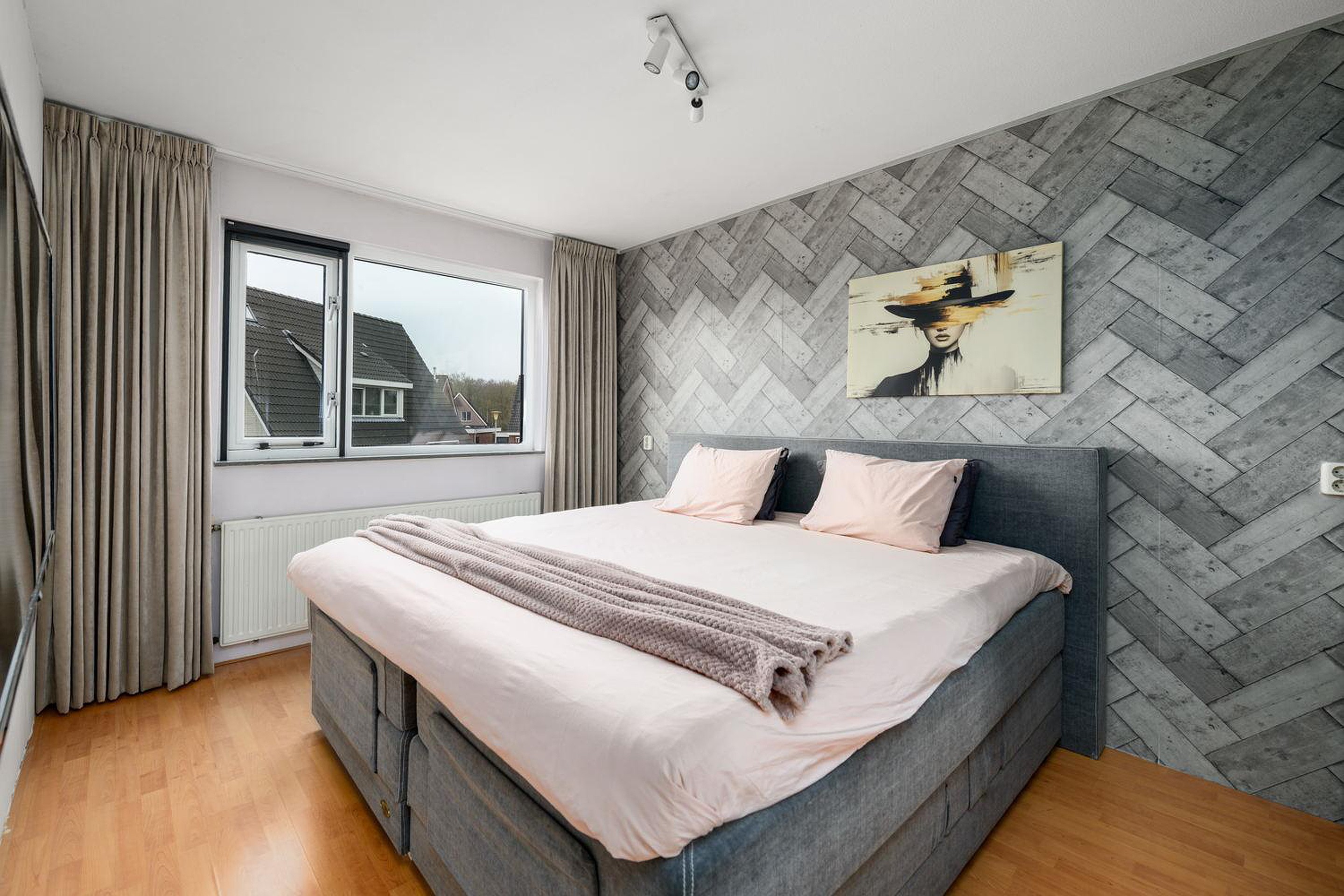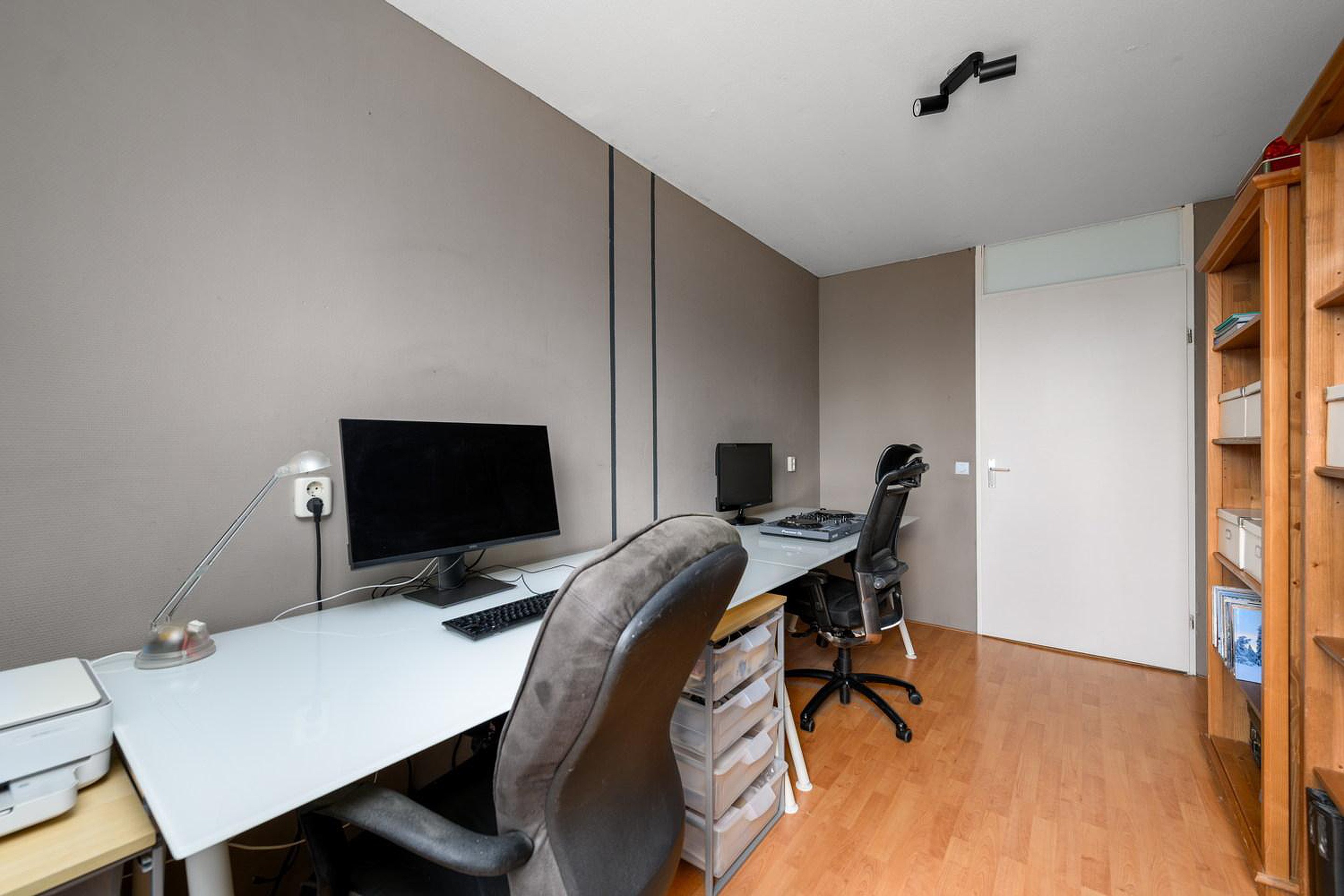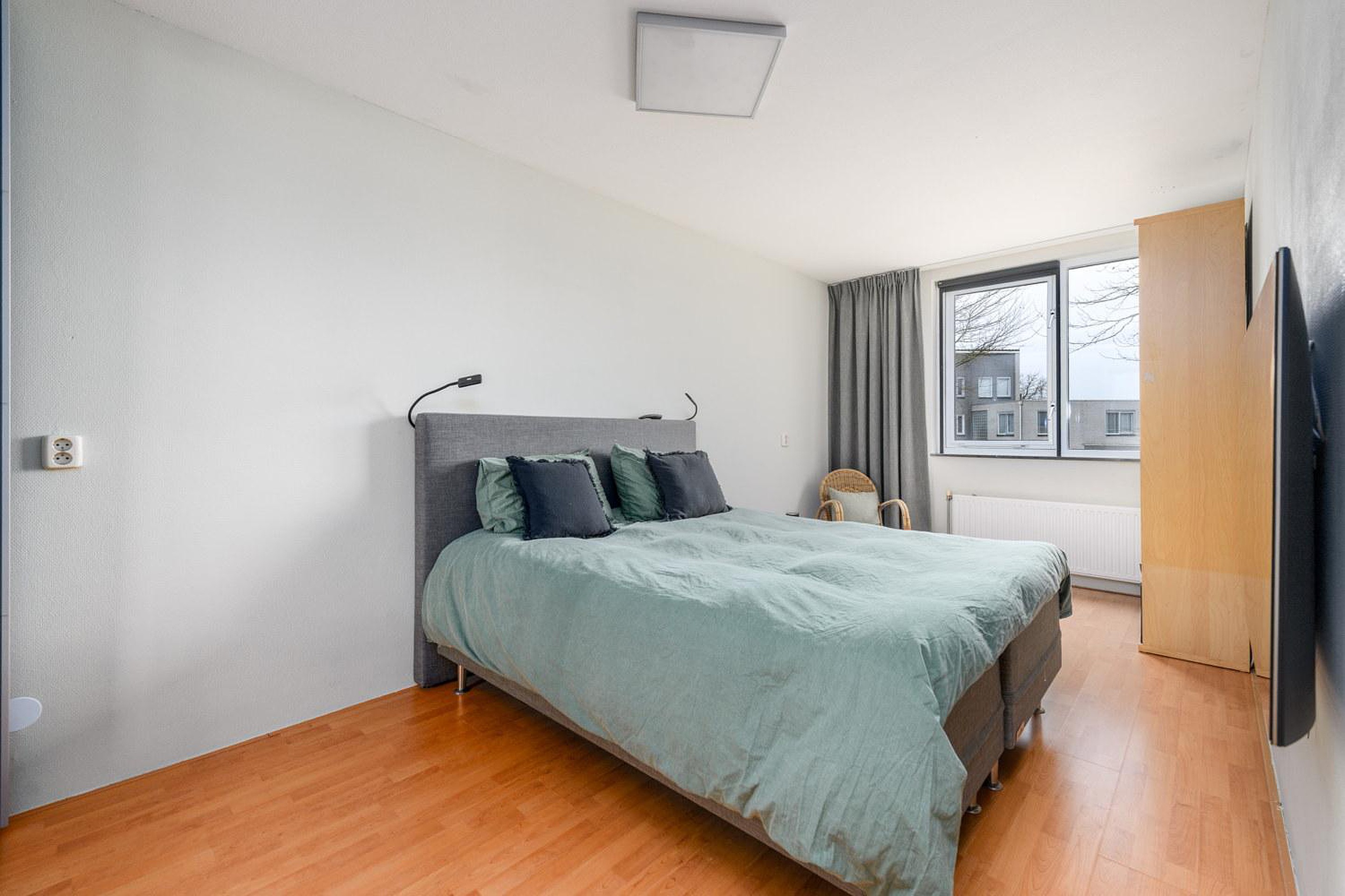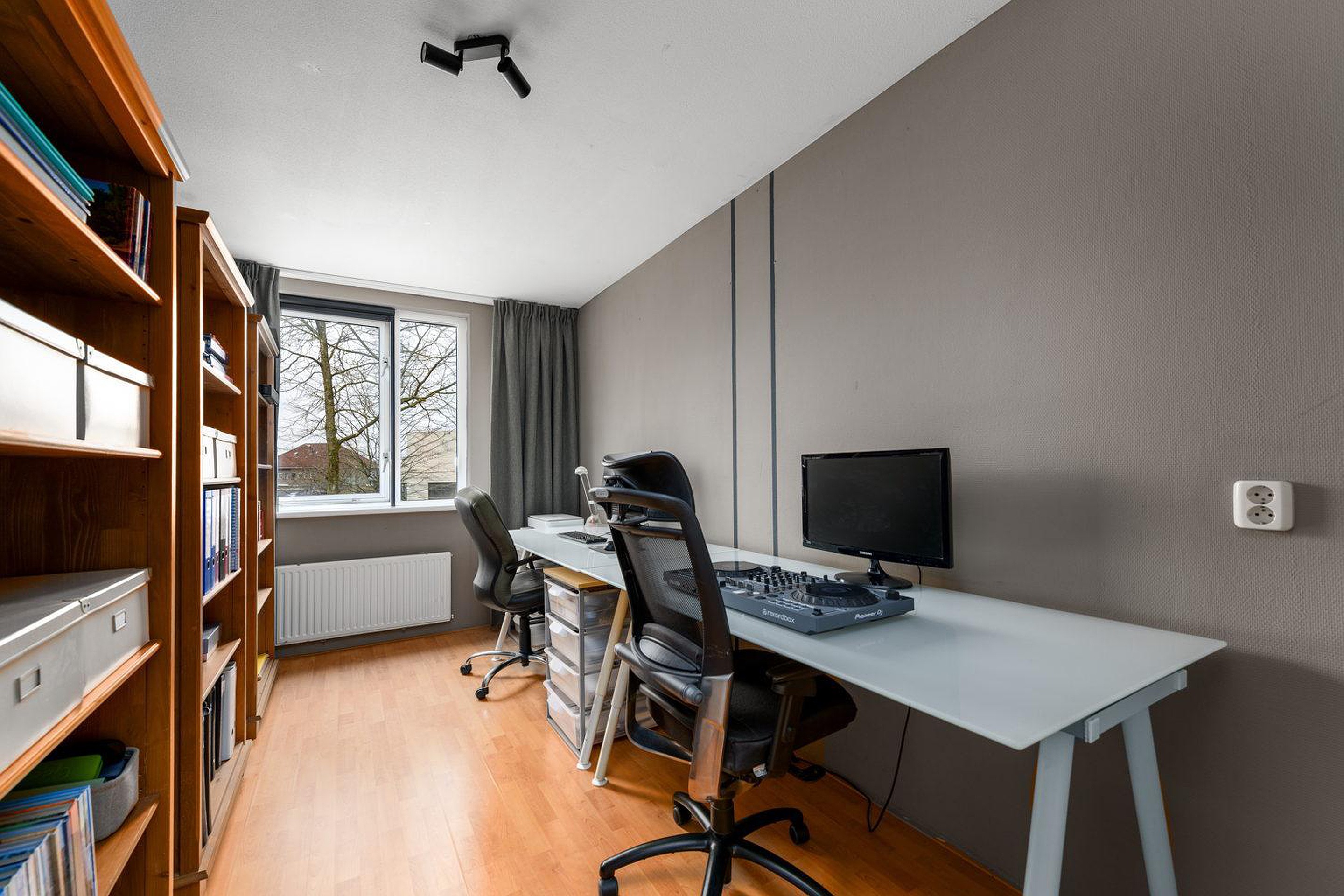 Eerste verdieping Op de eerste verdieping bevinden zich 3 ruime slaapkamers met een oppervlakte van respectievelijk 14,7 m2, 12,6 m2 en 10,3 m2 voorzien van een laminaat vloer en rolhorren voor de ramen. De moderne, stijlvolle en luxe badkamer (2020) met ligbad, inloopdouche, dubbele wastafel met meubel en extra tweede toilet (wandcloset). De hele verdieping beschikt over triple glas (HR+++).