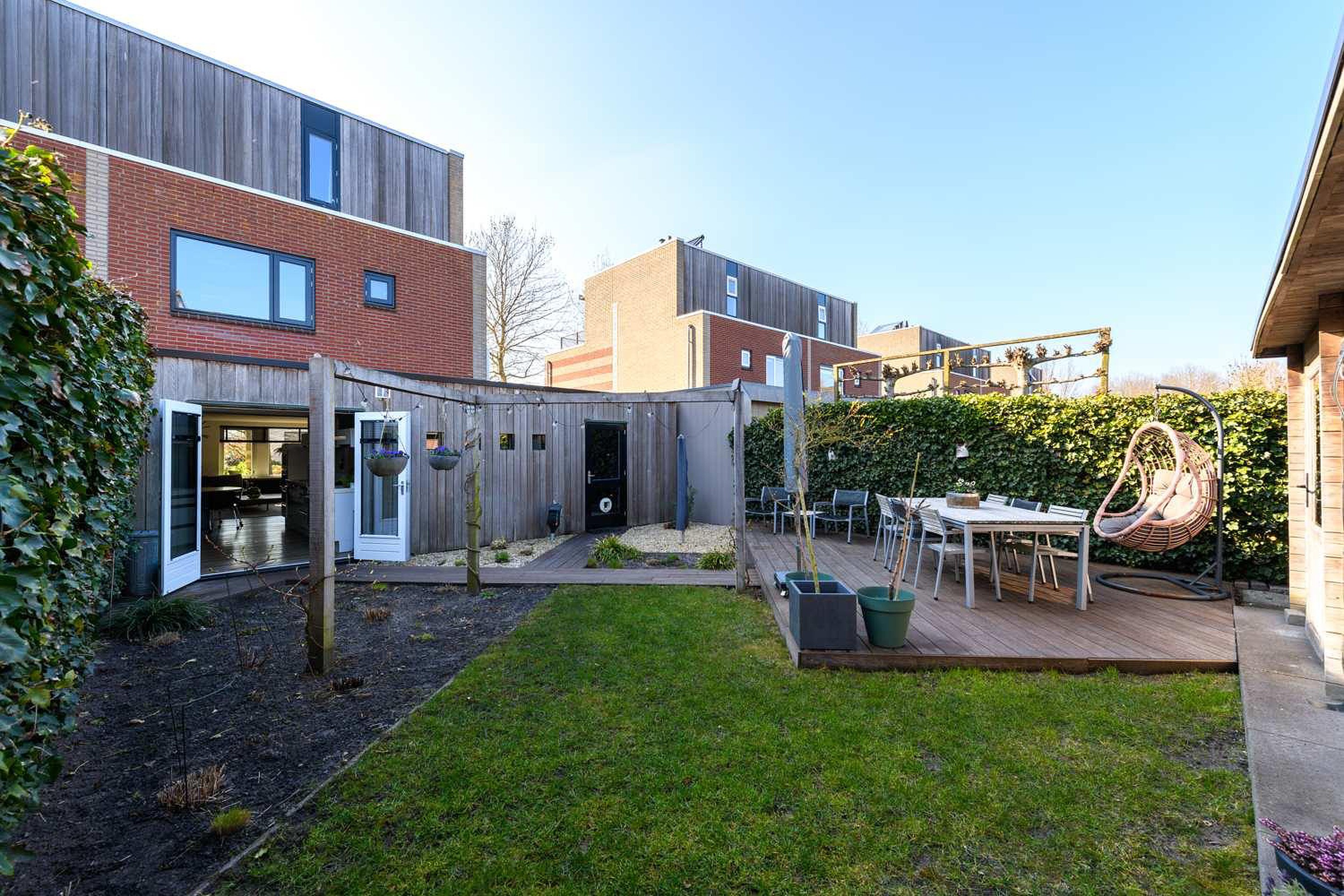 De tuin is heringericht en is een plaatje om te zien. De speelse niveauverschillen en de strakke bamboe vlonders geven de buitenruimte een luxe uitstraling. Achterin de tuin staat een grote vrijstaande schuur (tuinhuis) met een royale overkapping en loungeruimte. Of het nu regent of de zon schijnt: hier geniet je het hele jaar door van het buitenleven. Kortom een uniek, instapklaar en duurzaam huis op een toplocatie, met verrassend veel leefruimte binnen én buiten. Een buitenkans voor wie comfortabel, modern en energiezuinig wil wonen! En een zee aan ruimte!