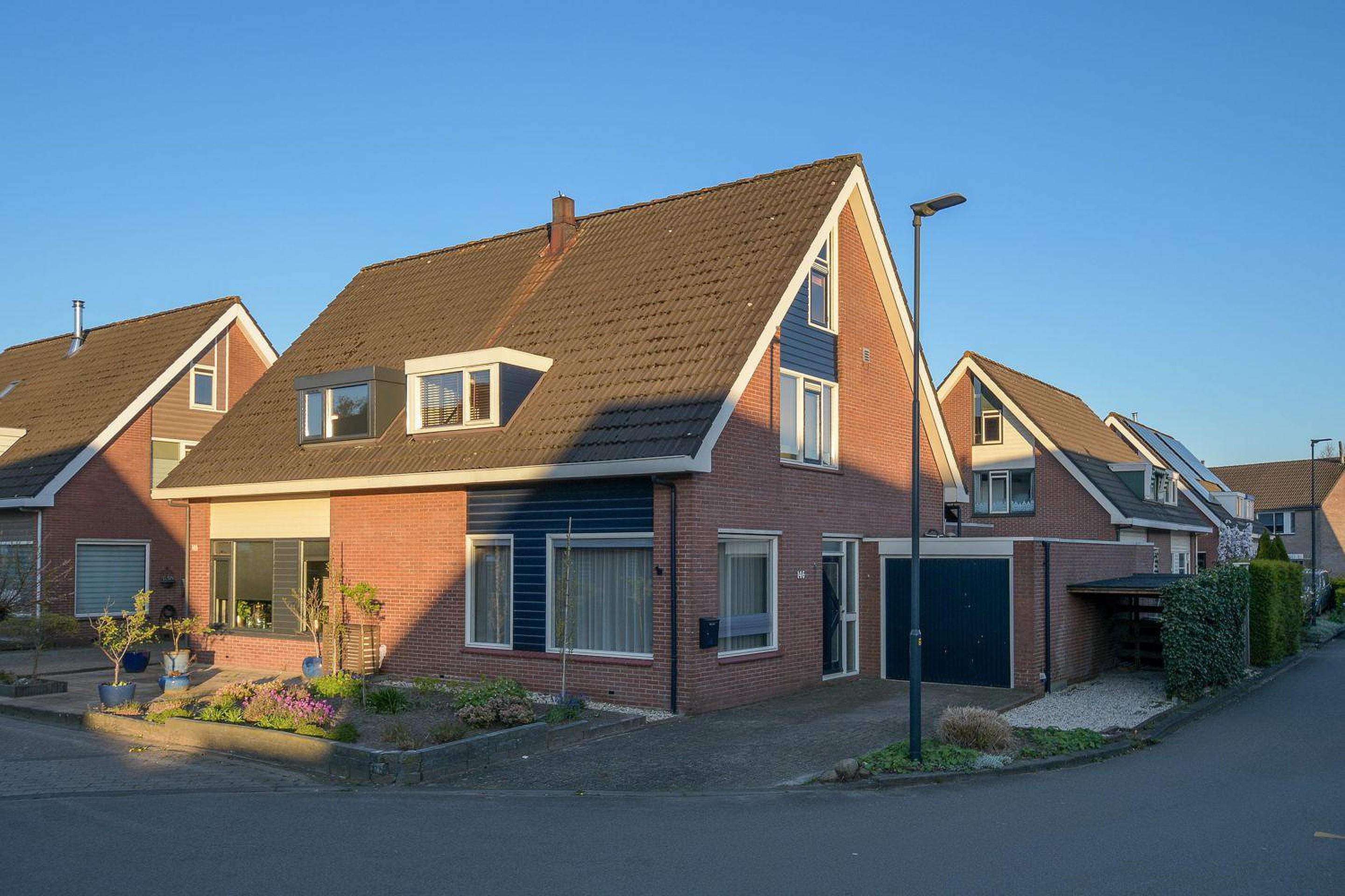 De moderne luxe keuken is een echte eyecatcher en is van alle gemakken voorzien. Op de eerste verdieping zorgt de dakkapel voor extra ruimte en lichtinval. De moderne badkamer met luxe sanitair, heeft een eigentijdse afwerking die perfect aansluit bij de rest van de woning. De verlengde garage biedt volop bergruimte en mogelijkheden voor hobby of werk aan huis. De woning is volledig geïsoleerd en er liggen 13 zonnepanelen op het dak.
