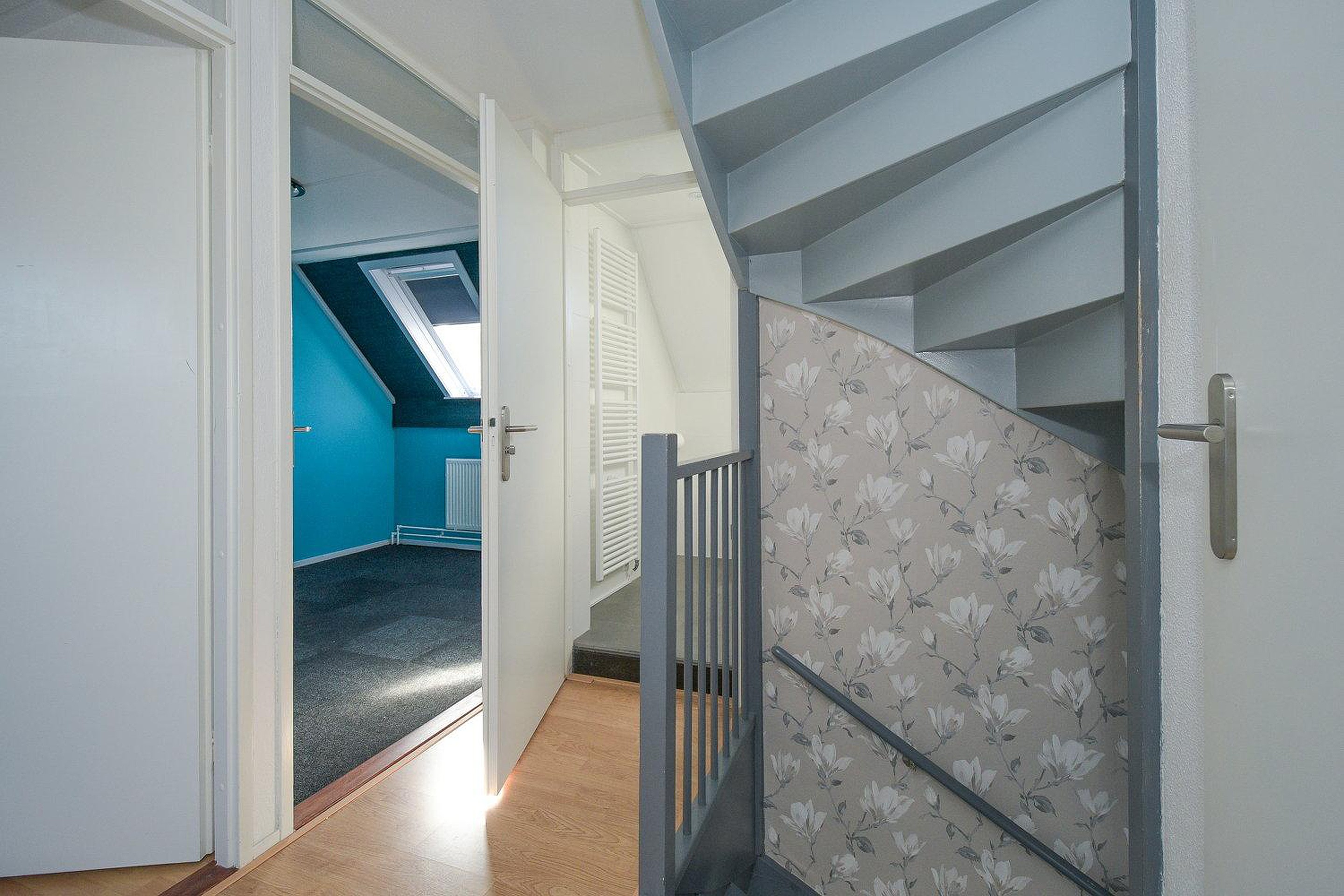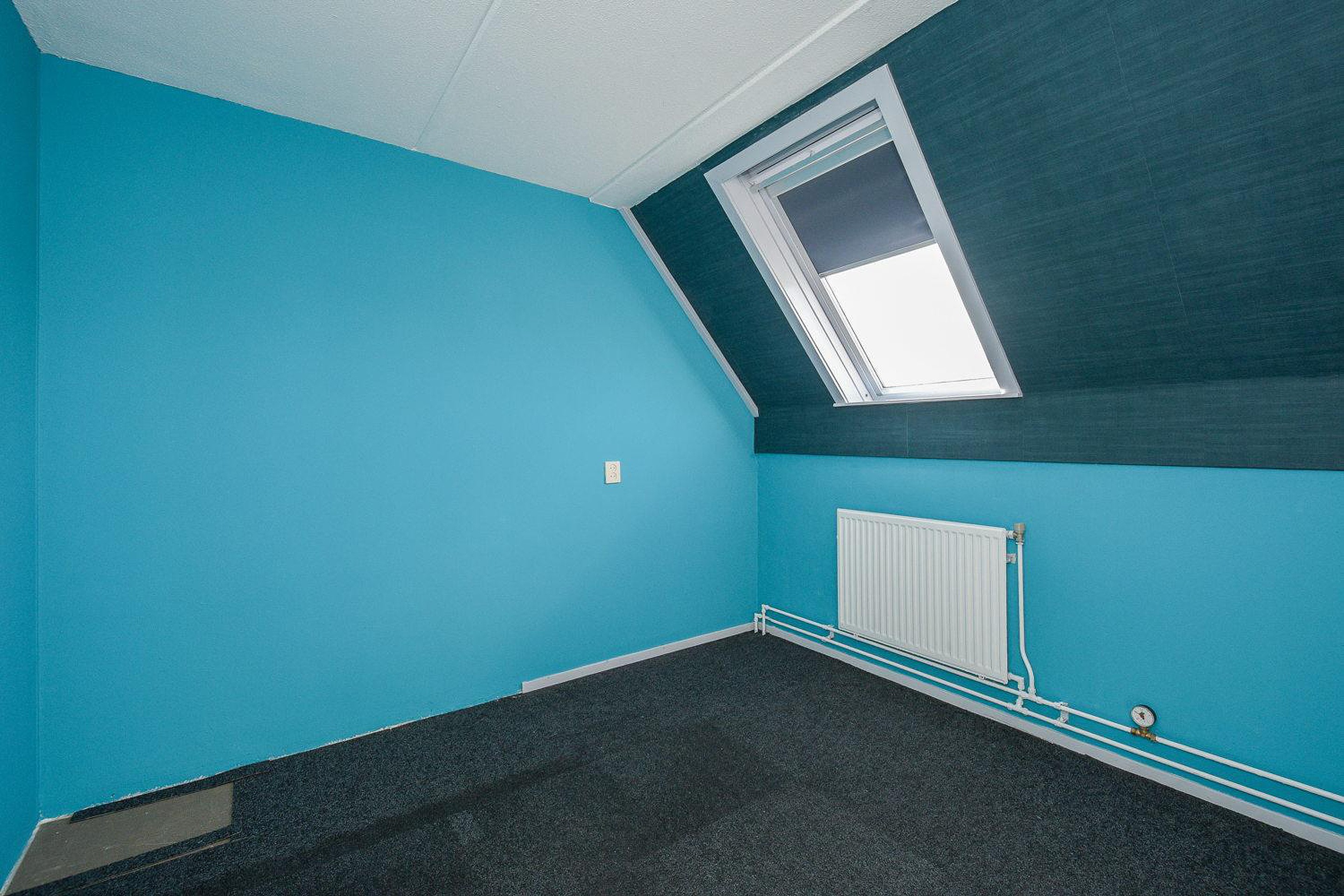 Via een vaste trap kom je op de zolderverdieping waar zich een extra slaapkamer met groot Velux raam bevindt. Op de overloop is de HR CV ketel van het merk Intergas (2014) en de mechanische ventilatie geplaatst.