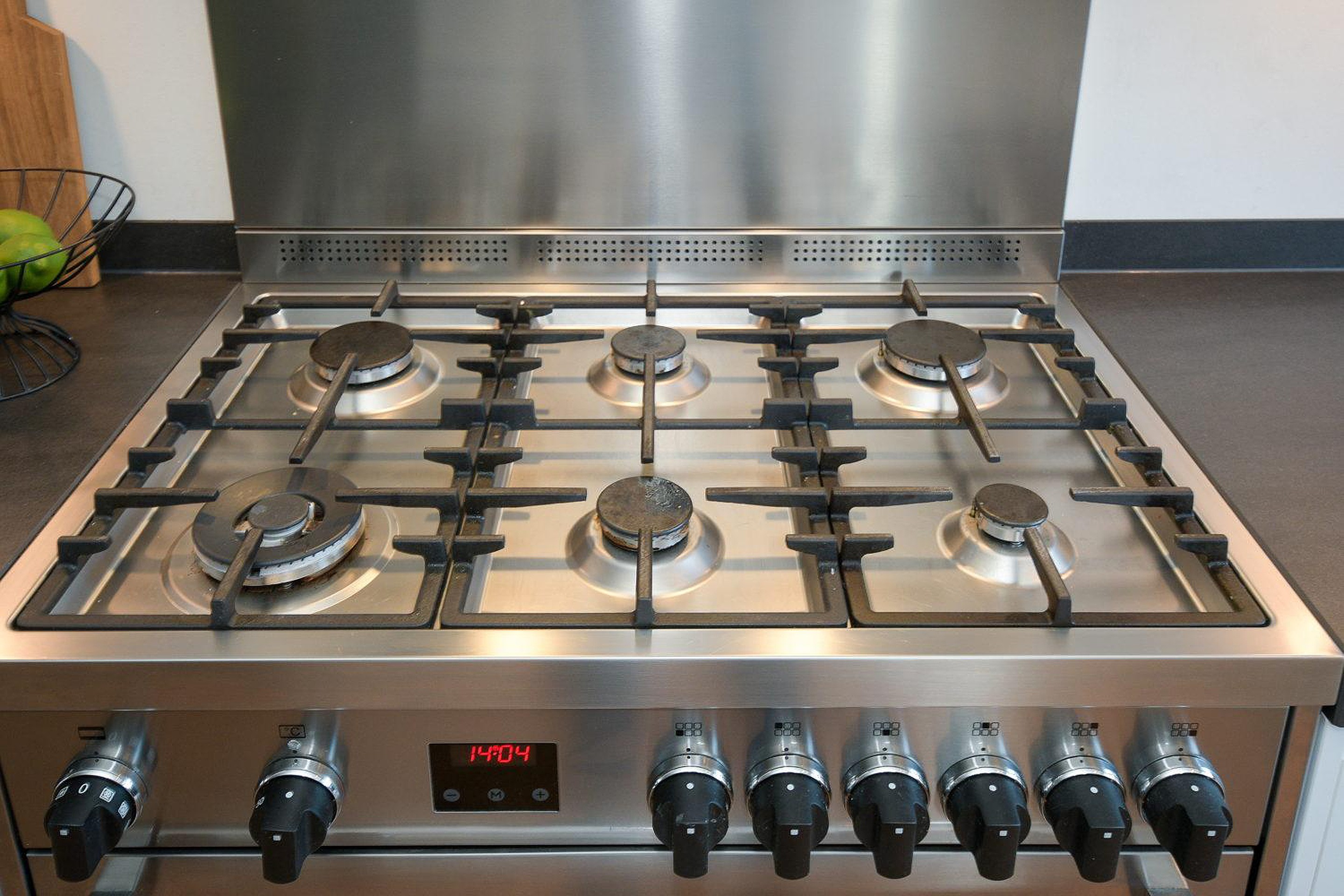 De moderne luxe keuken in lichte kleurstelling is voorzien van diverse inbouwapparatuur (AEG); 6 pits gasfornuis met oven, vaatwasser, Quooker, combimagnetron en koelkast. De keuken heeft een mooi uitzicht over de woonwijk. In de bijkeuken (voormalige garage) bevinden zich de witgoedaansluitingen. Deze ruimte is volledig geïsoleerd en voorzien van een mooie gietvloer. De strak afgewerkte en volledig geïsoleerde bijkeuken is zoveel meer dan alleen bergruimte. Dankzij de hoogwaardige afwerking en het comfortabele binnenklimaat voelt deze ruimte als een volwaardig verlengstuk van de woning.