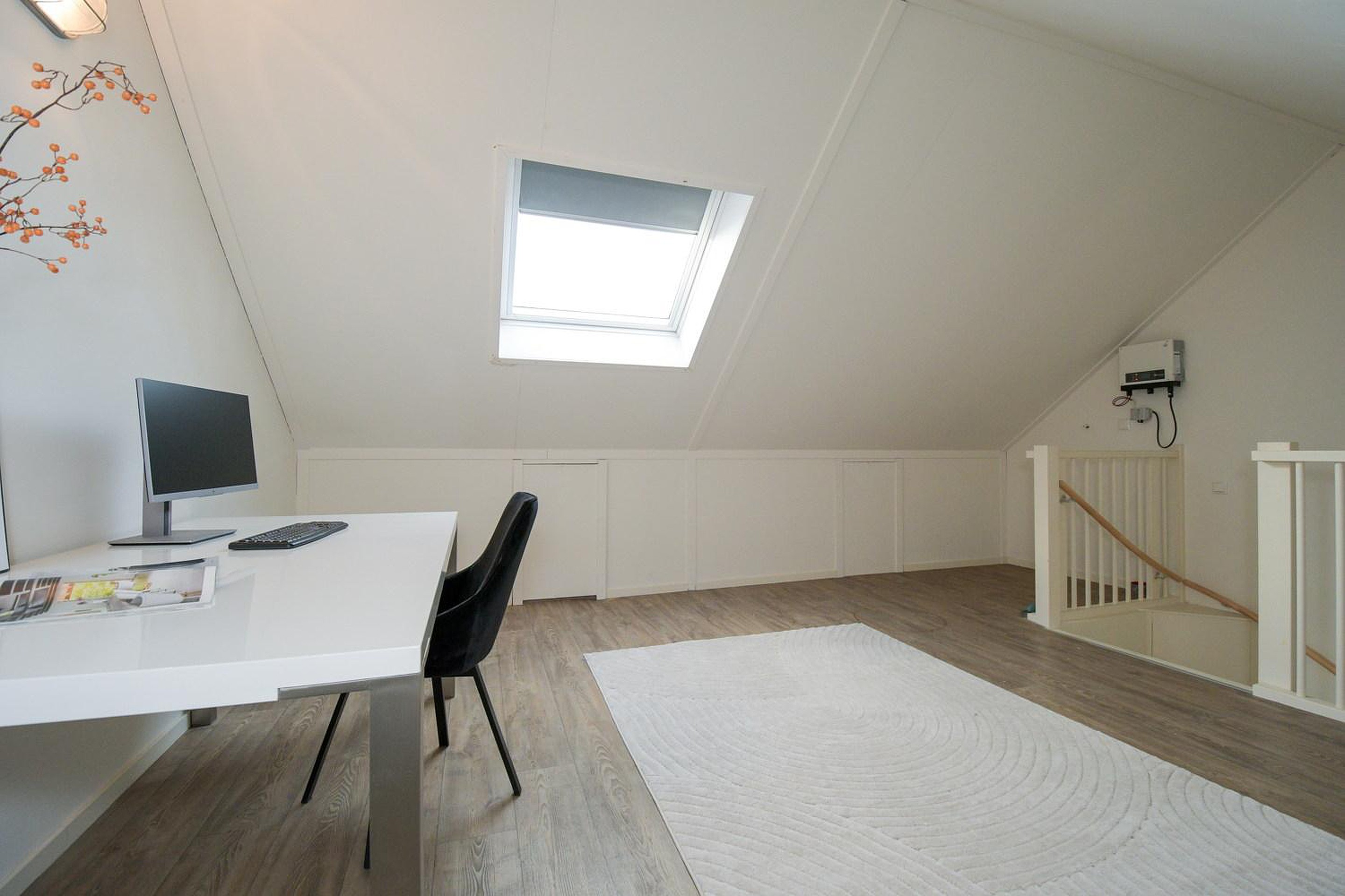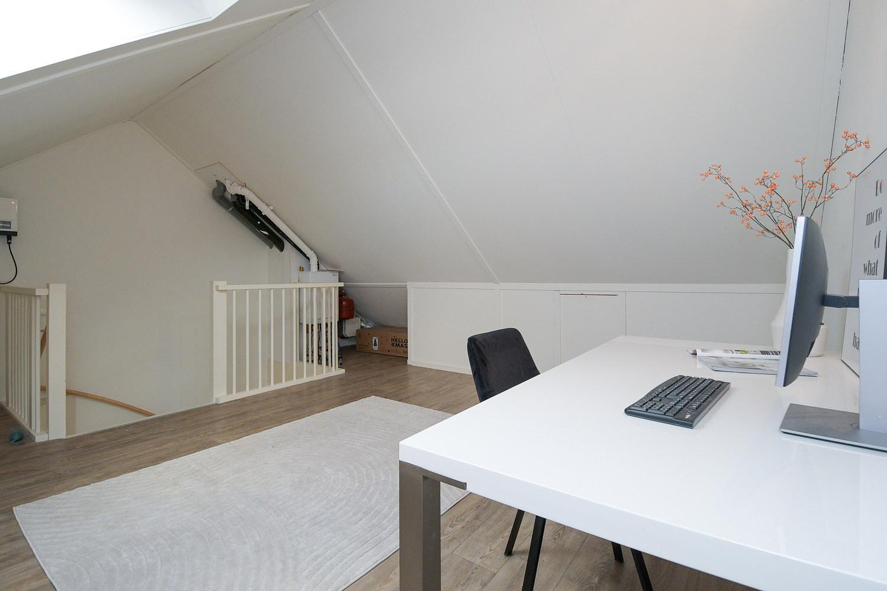 Tweede verdieping Deze verdieping is nu ingericht als kantoor met vinyl als vloerbedekking, maar is eventueel zeer geschikt als vierde slaapkamer (ca 18 m2). Tevens bevinden zich hier de stelplaats van de HR CV ketel, merk Intergas (2018), de omvormer van de zonnepanelen en de mechanische ventilatie.