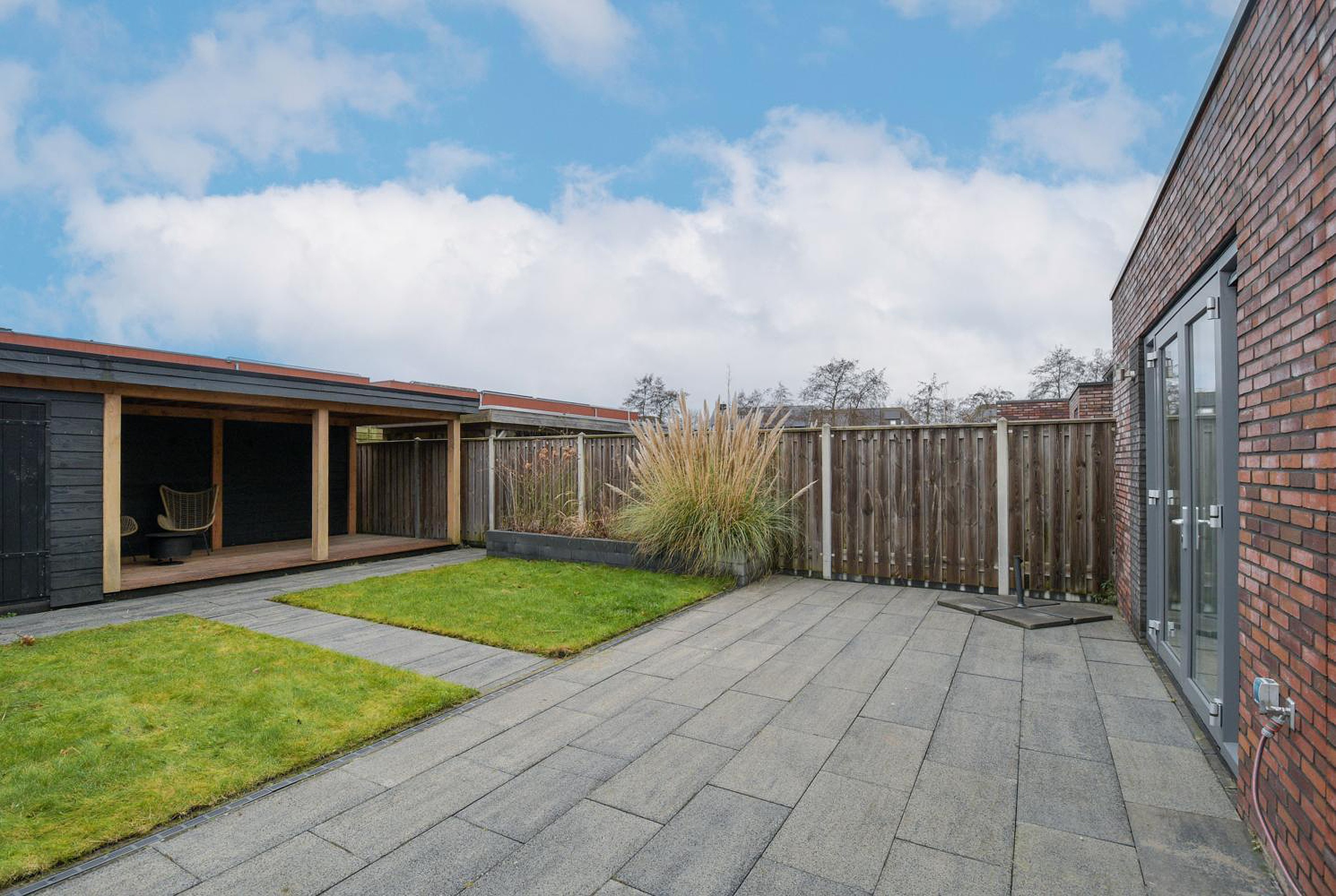 De moderne luxe keuken is voorzien van diverse inbouwapparatuur (AEG). De badkamer is eveneens modern, luxe en van alle gemakken voorzien. In de tuin is over de volle breedte van de kavel een prachtige stijlvolle overkapping geplaatst met een oppervlakte van ca 21 m2. Hier zit je tot in de late uurtjes droog en gezellig buiten. In de schuur heb je meer dan genoeg plek voor je fietsen en tuingereedschap.