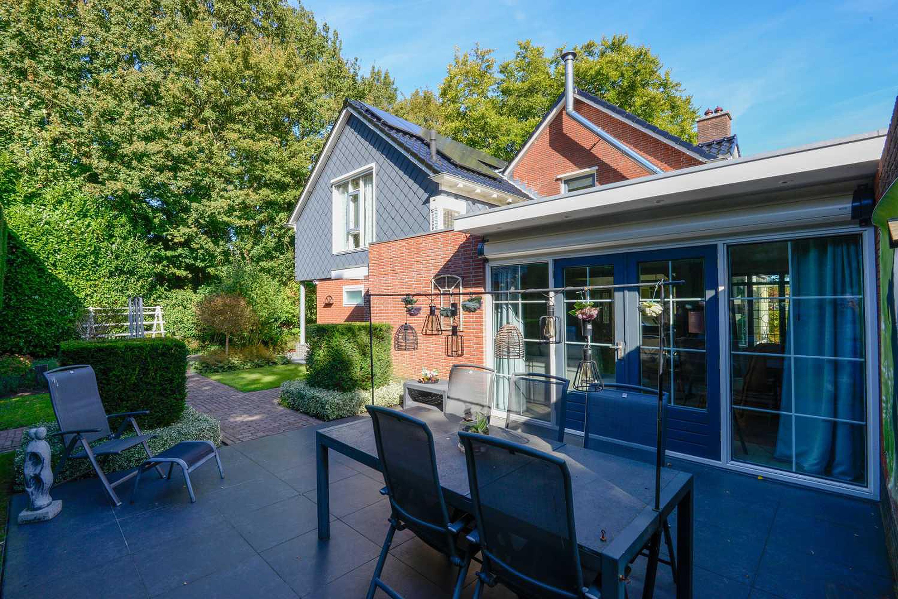 Karakteristieke vrijstaande woning met riante uitbouw aan de achterzijde van de woning. De uitbouw met luxe uitstraling heeft openslaande tuindeuren en biedt volop woon-en leef ruimte. De houtkachel in de woonkamer zorgt voor extra sfeer. De woning is onder architectuur verbouwd en de tuin is een ontwerp van tuinarchitect Rob Verlinden. Een ware eyecatcher - een plek waar design en natuur samenkomen.
