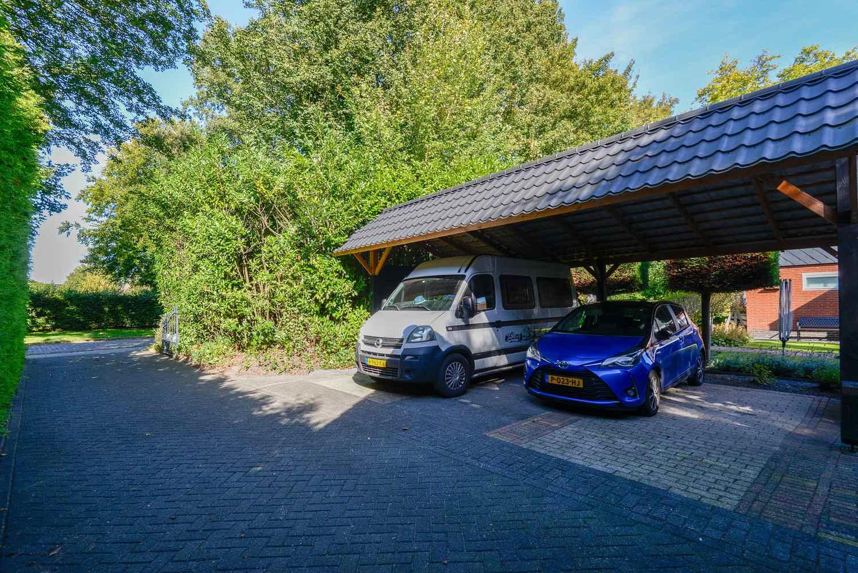 Achterop het erf staat een grote stenen garage met elektrische deur, een houten schuur en een fraaie overkapping. Het erf is toegankelijk aan de zijkant van de woning via een elektrisch bedienbaar toegangshek, met een lange oprit naar de garage. Kortom: een prachtige, riante woning waar u direct kunt intrekken, zonder zorgen, mét luxe en duurzaamheid in balans.
