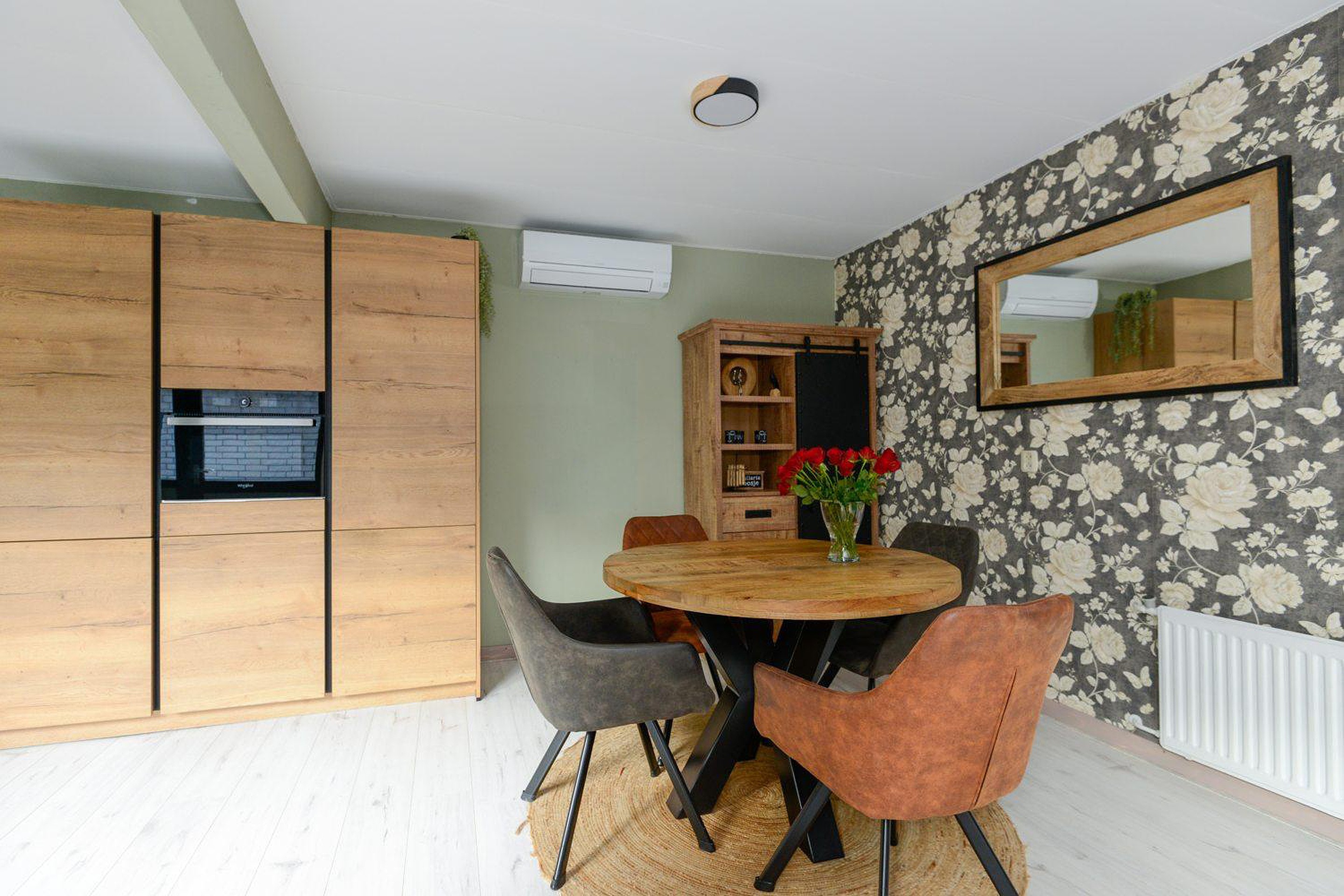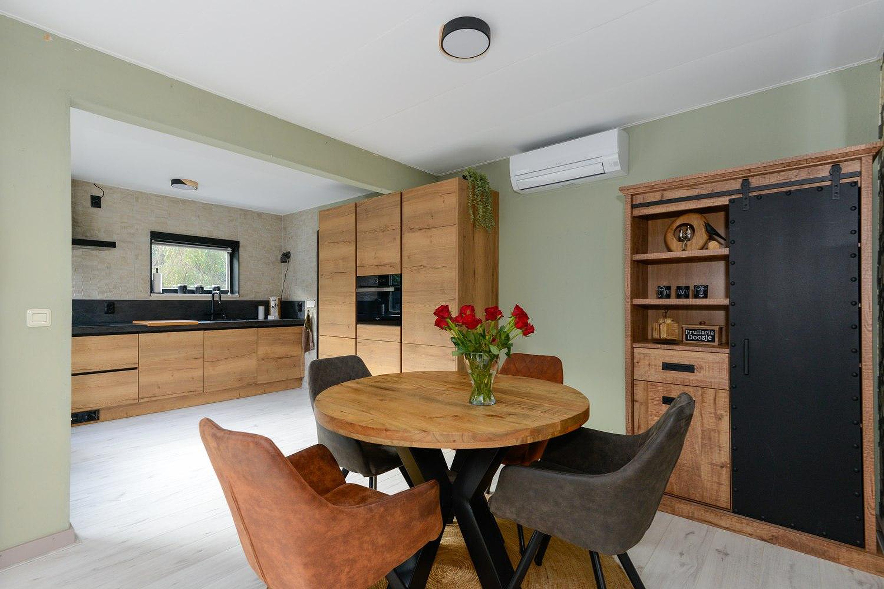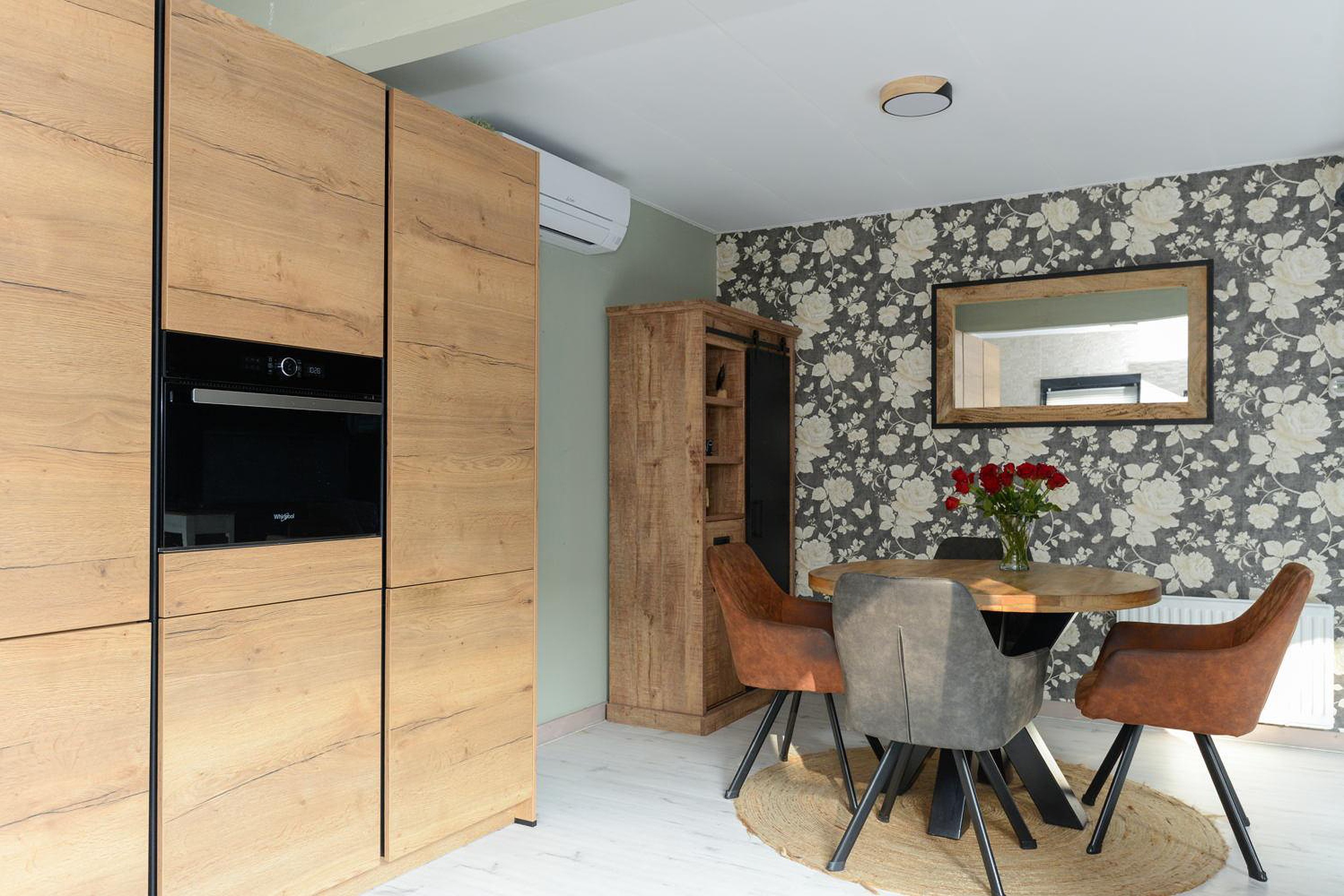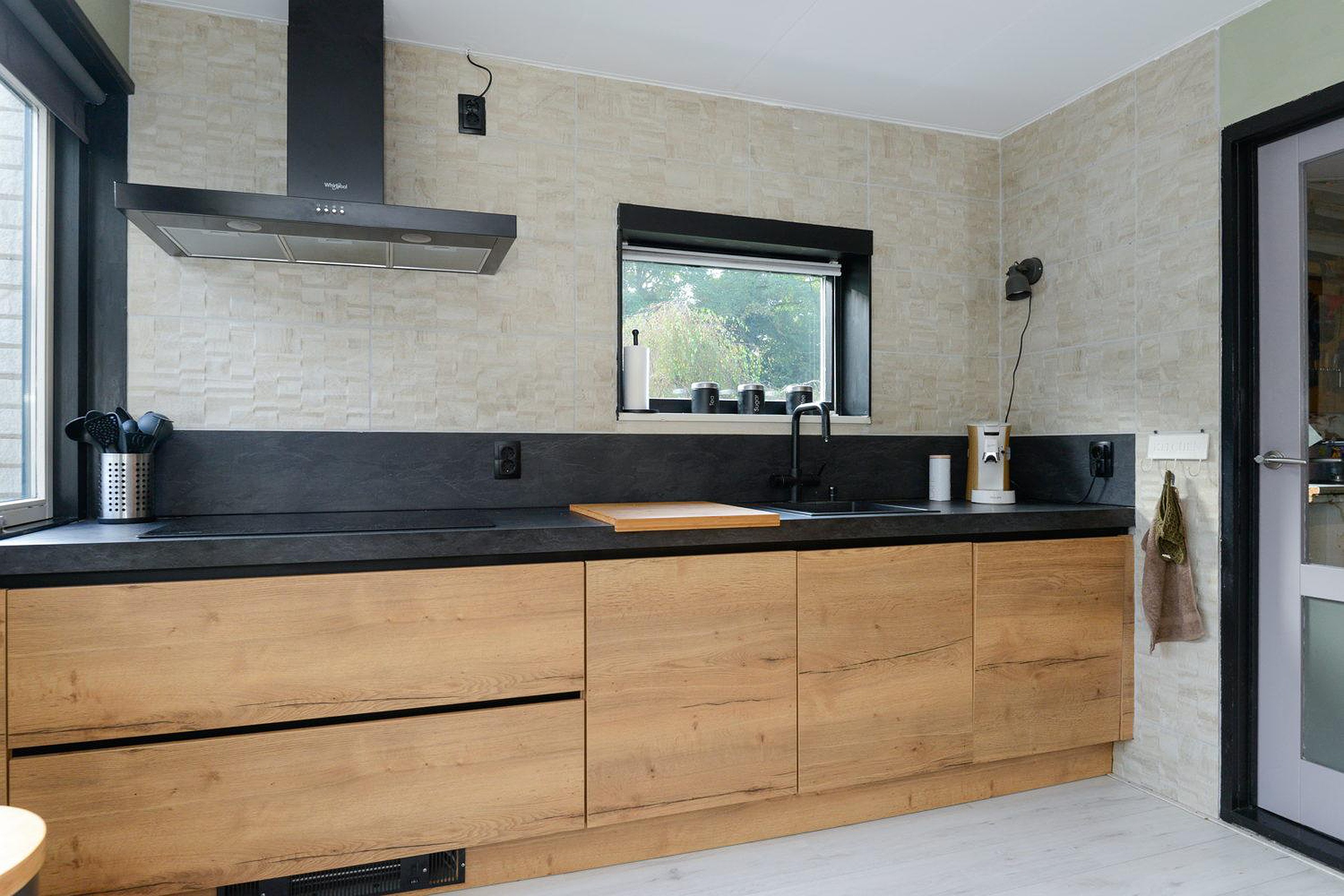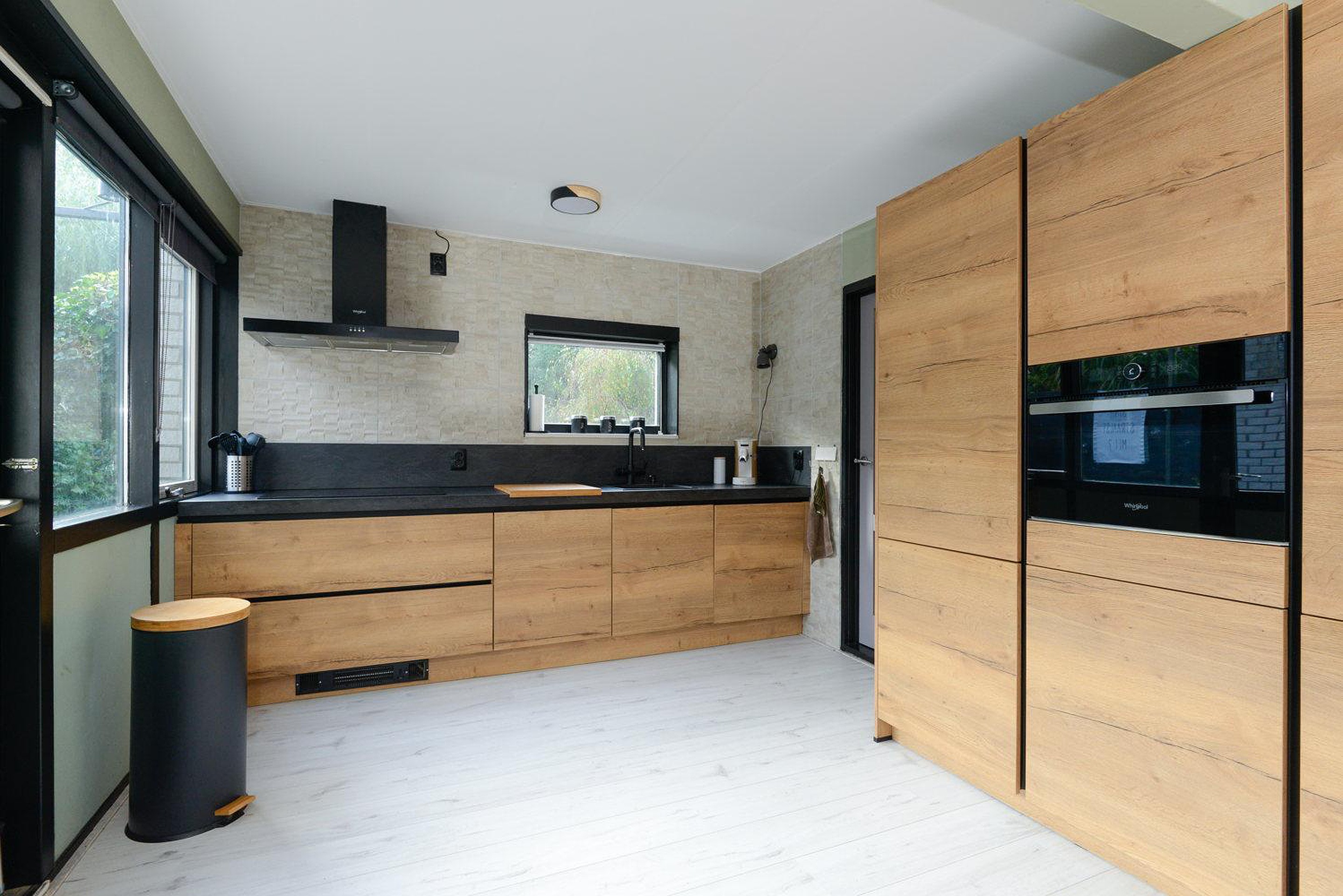 De keuken is vernieuwd in 2022 en voorzien van diverse inbouwapparatuur, waaronder; combimagnetron, koelkast met vriezer, inductie kookplaat en vaatwasser. Vanuit de keuken is er toegang tot de inpandige garage.