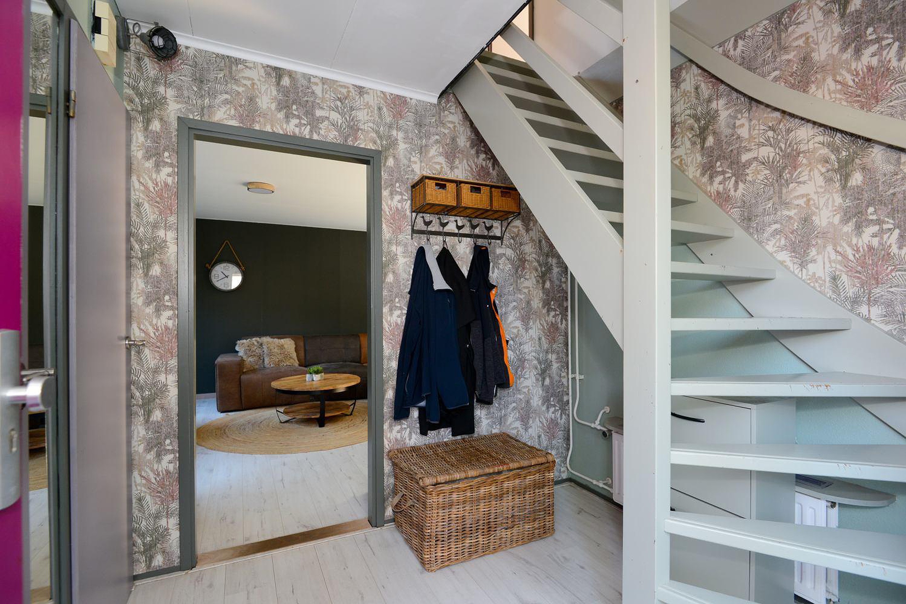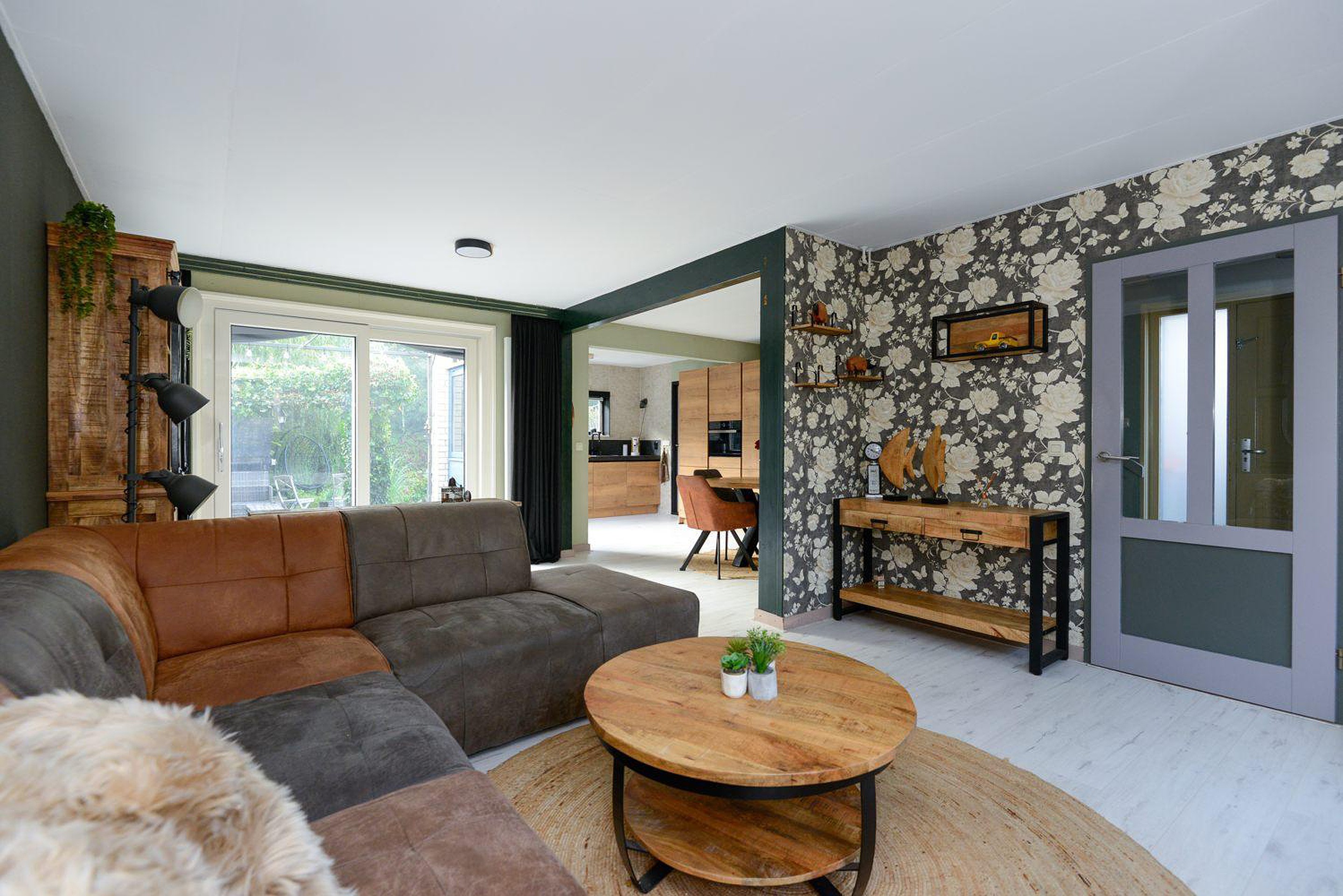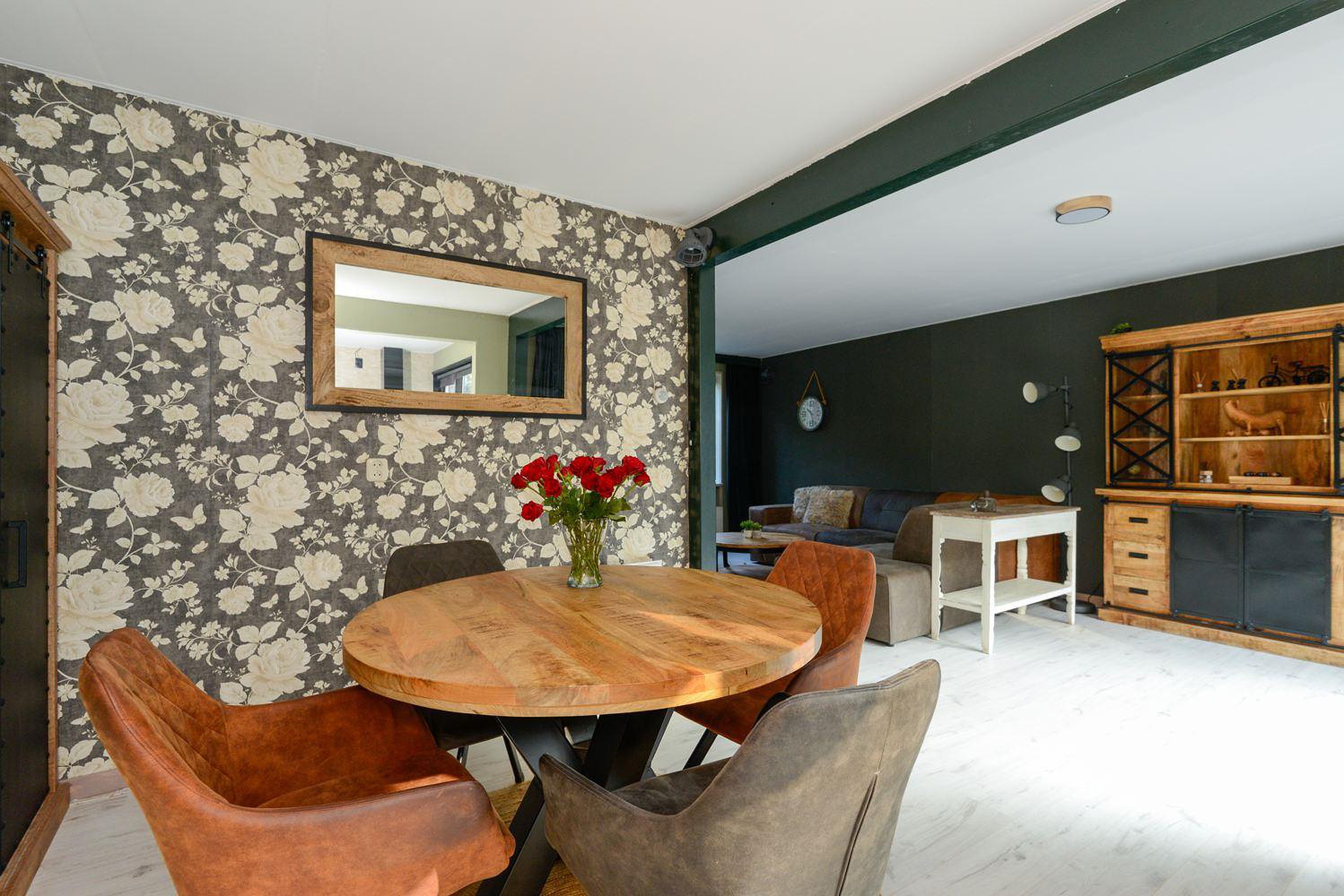 Entree, modern toilet (wandcloset) met fonteintje, vernieuwde meterkast, waterontharder en trapopgang naar de eerste verdieping. De moderne en lichte woonkamer heeft door het groen aan beide zijden van de woning veel privacy. De schuifpui aan de achterzijde geeft toegang tot het terras. De keuken is bij de eetkamer getrokken waardoor er een heerlijke open woon/leef ruimte is ontstaan.