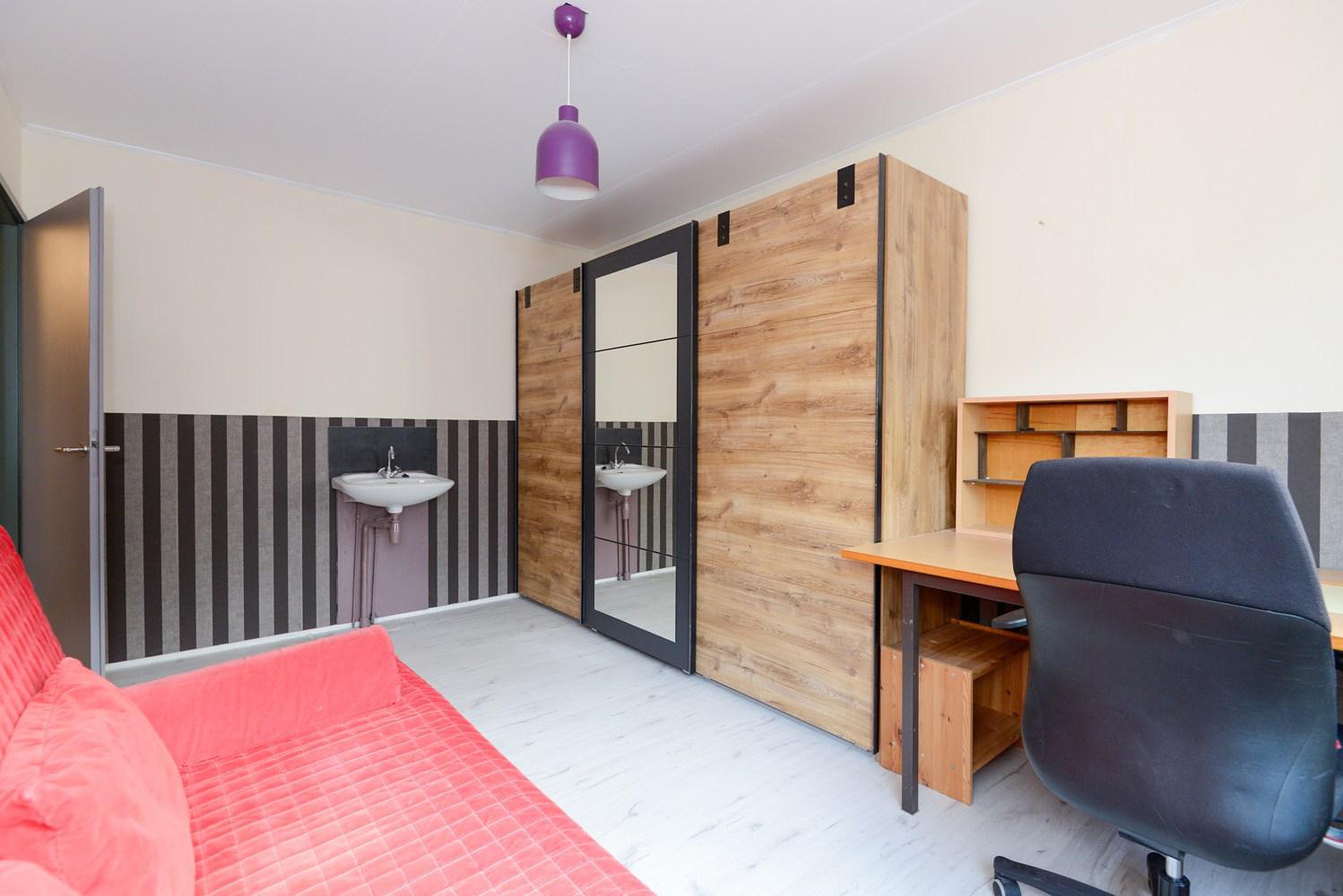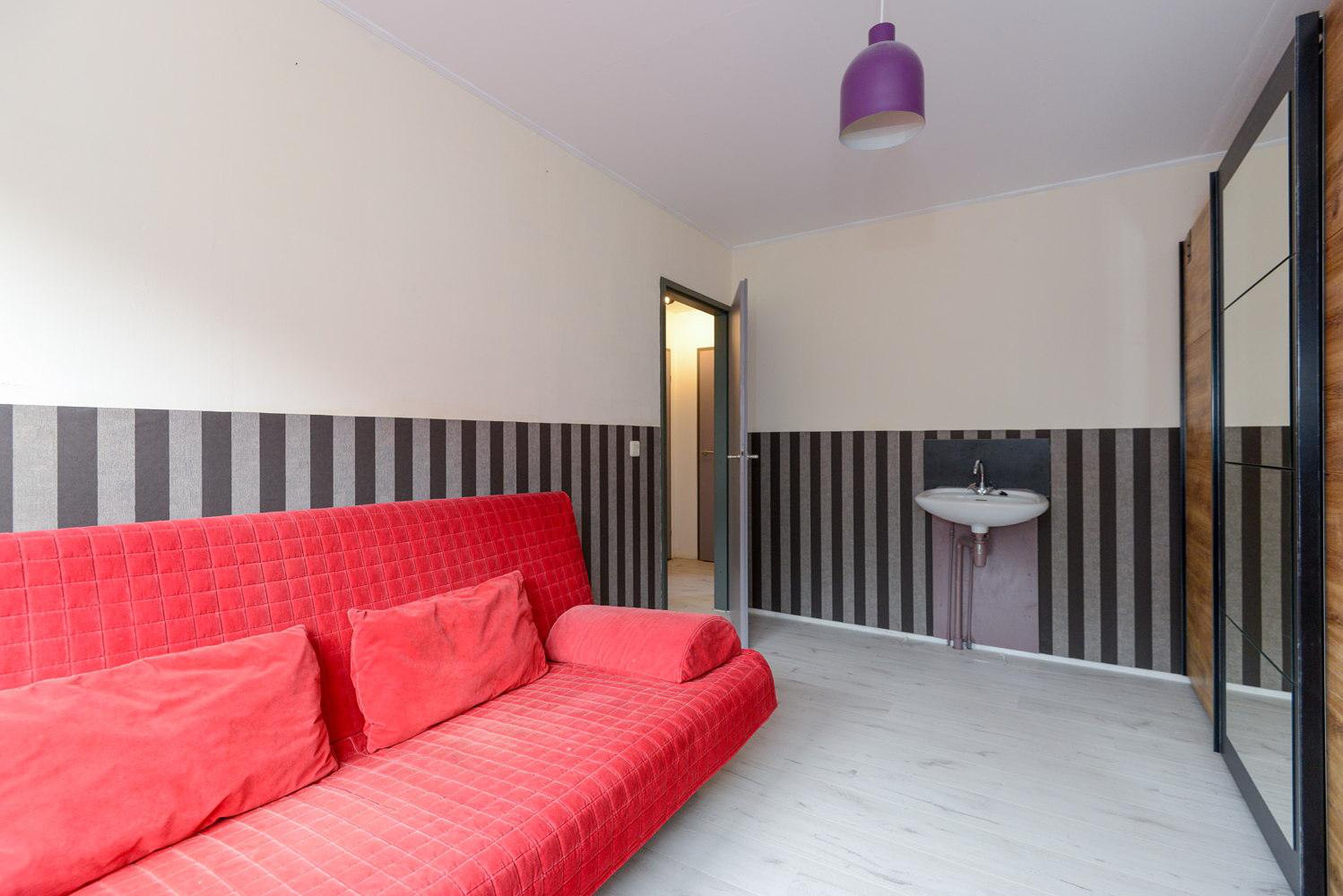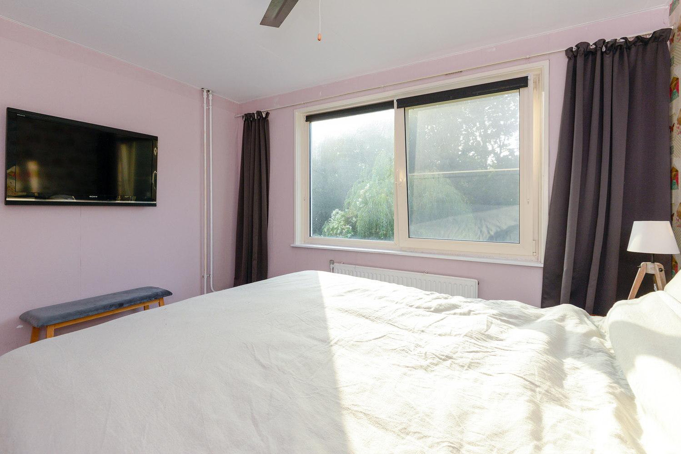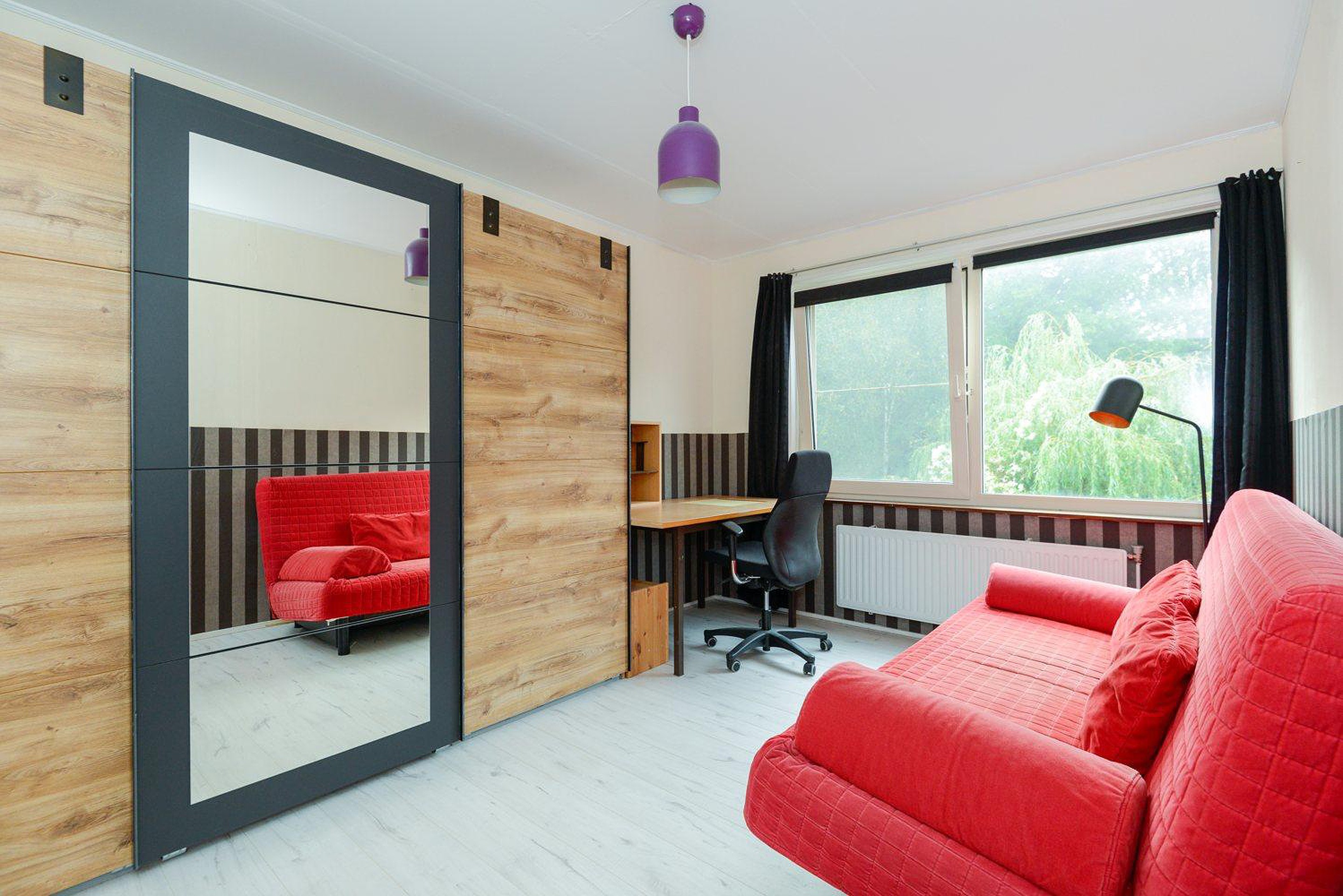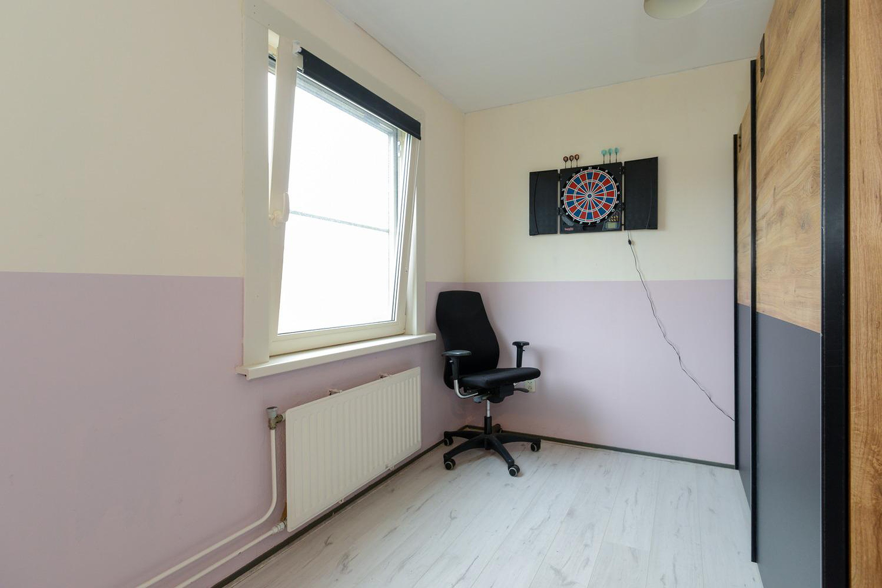 Op de eerste verdieping bevinden zich 3 slaapkamers met een oppervlakte van respectievelijk 12,7 m2 11,9 m2 en 7,2 m2. De kozijnen zijn grotendeels van kunststof met HR beglazing. In een separate ruimte staat de CV, merk Intergas uit 2013. De moderne badkamer in donkere kleurstelling is vernieuwd en voorzien van een inloopdouche met regen- en handdouche, dubbel wastafelmeubel en tweede toilet (wandcloset). Vanaf de overloop is via een vlizotrap toegang tot de zolderruimte, welke geschikt is als bergruimte.