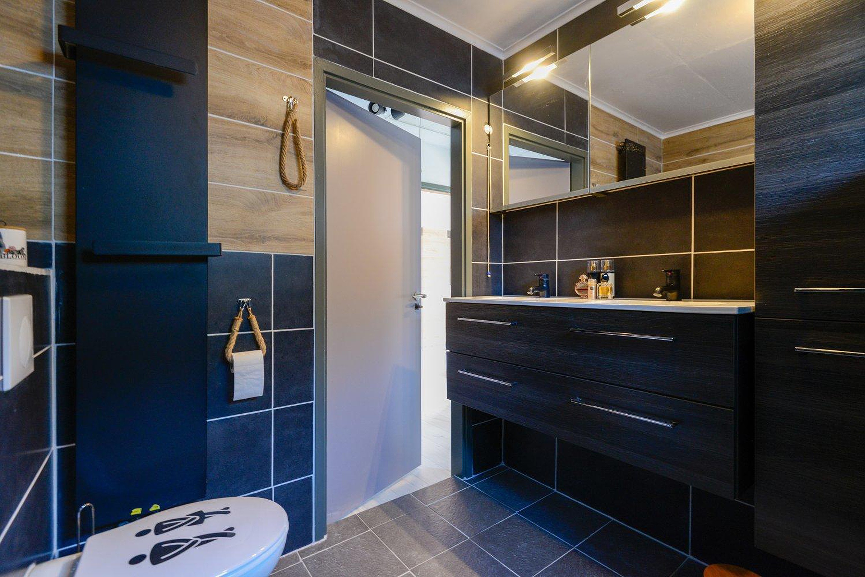Binnen tref je een lichte woonkamer met schuifpui naar het terras en uitzicht op het water. De recent geplaatste keuken (2022) is modern en praktisch ingericht. Dankzij de airco in de woonkamer is er het hele jaar door een aangenaam binnenklimaat: zowel koelen in de zomer als verwarmen in de winter is mogelijk.
