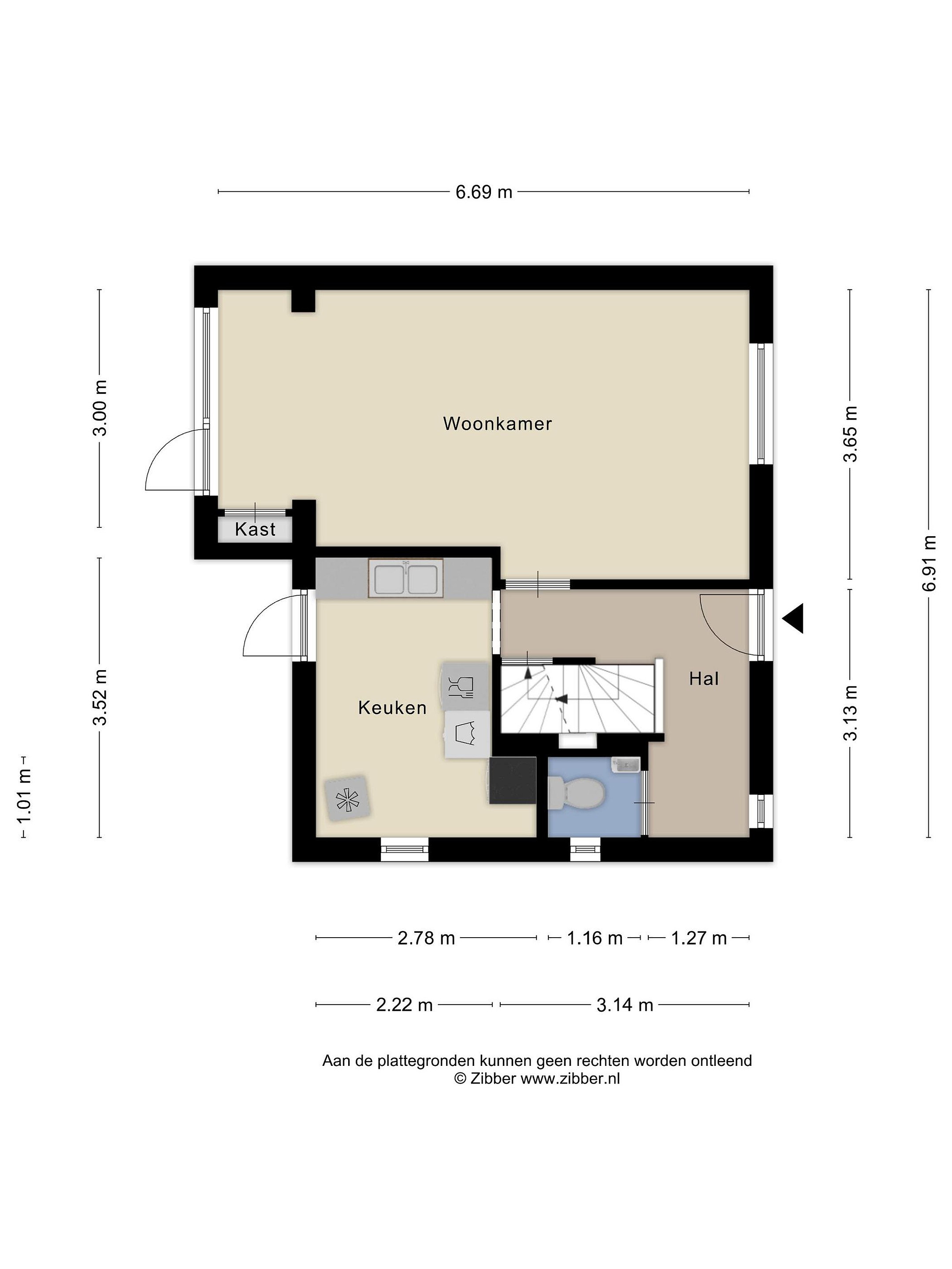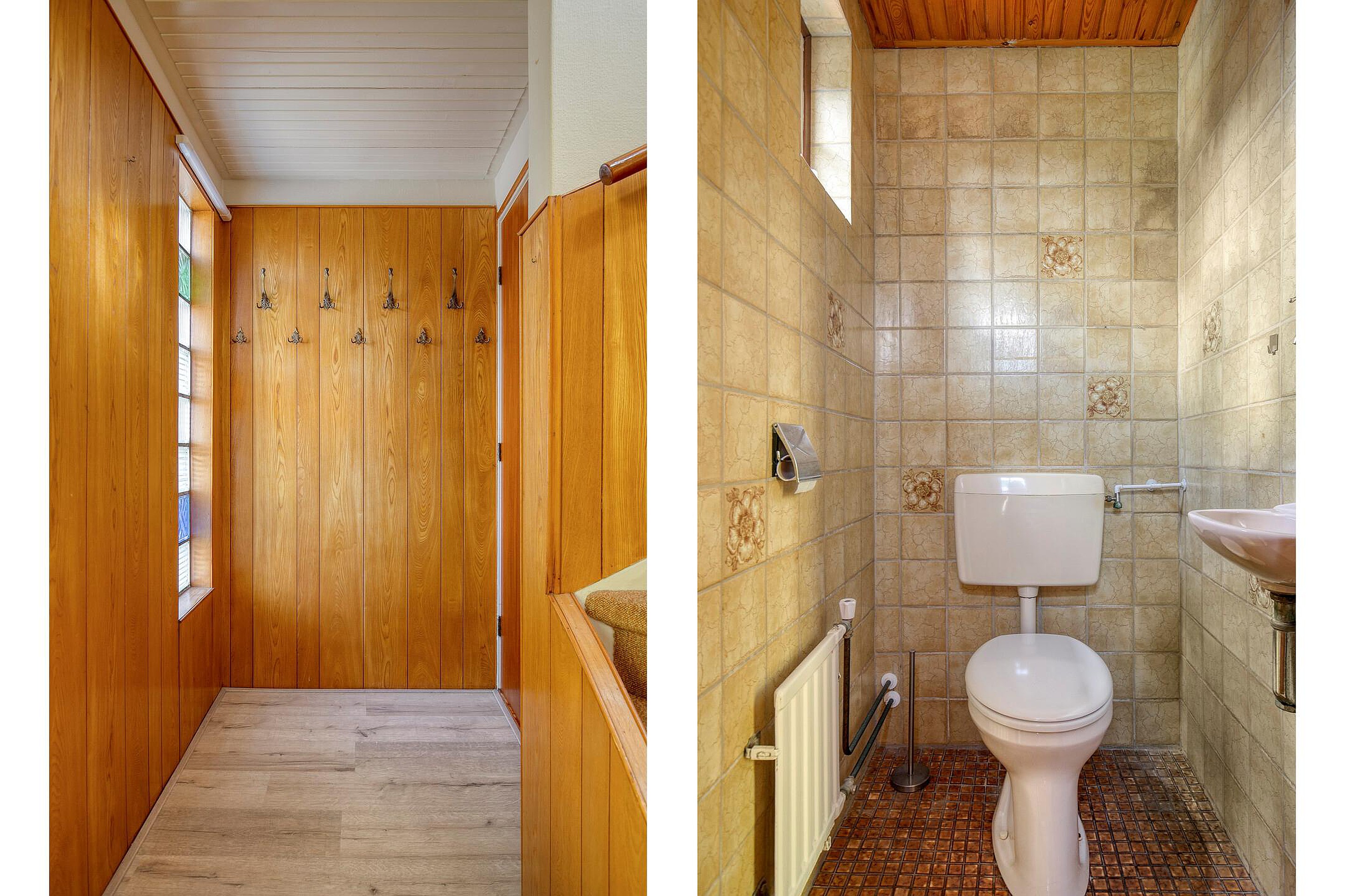 Je komt binnen via de entree met toegang tot het toilet, de trapopgang en een handige provisiekelder.