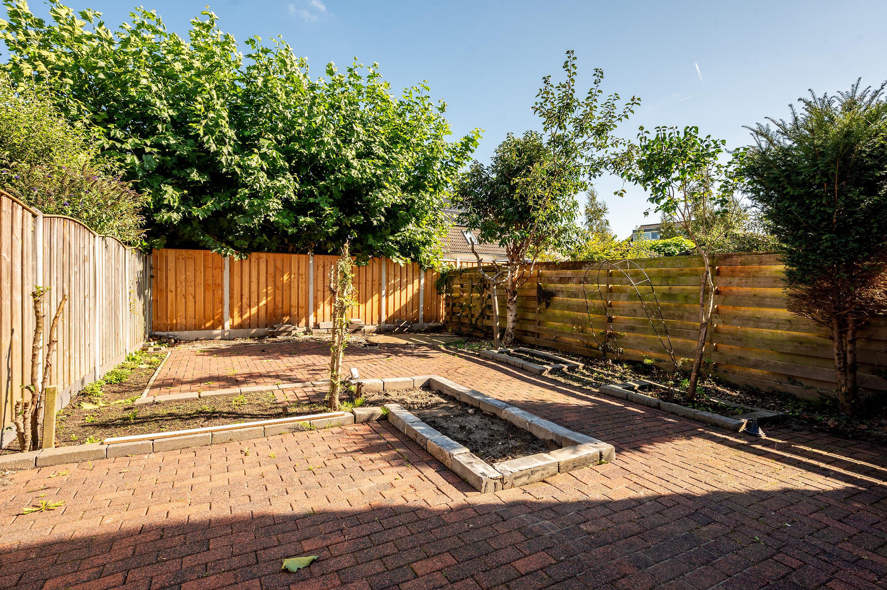 Tuin: De diepe en groen aangelegde achtertuin is bereikbaar vanuit de woonkeuken en vanuit de bijkeuken. Dankzij de diepte van de tuin en de lage bebouwing kan je hier al vroeg op de dag in de zon van een kop koffie genieten! Naast de vijver en het groen zijn er verschillende mogelijkheden om zitjes te creëren en optimaal van de tuin te kunnen genieten.