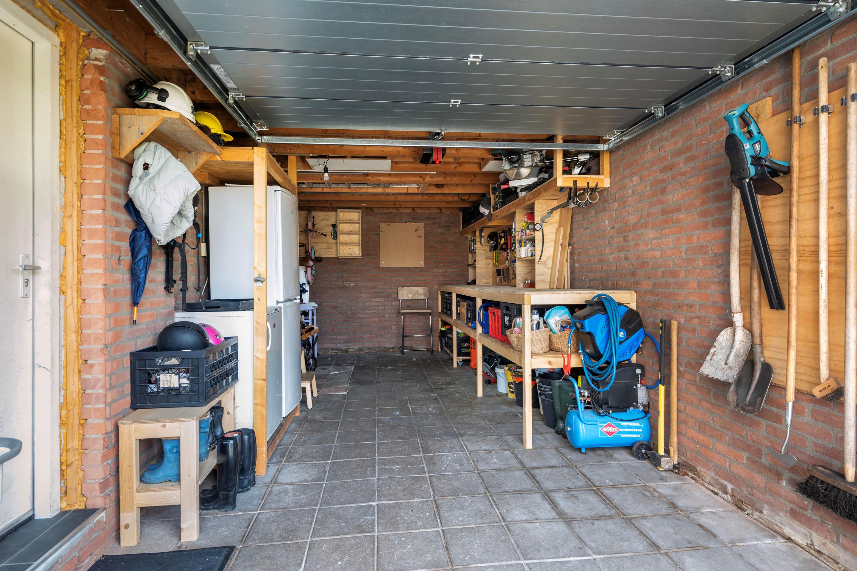De aanpandige garage van circa 21 m2 is ideaal voor opslag, hobby of het stallen van fietsen en/of een auto.