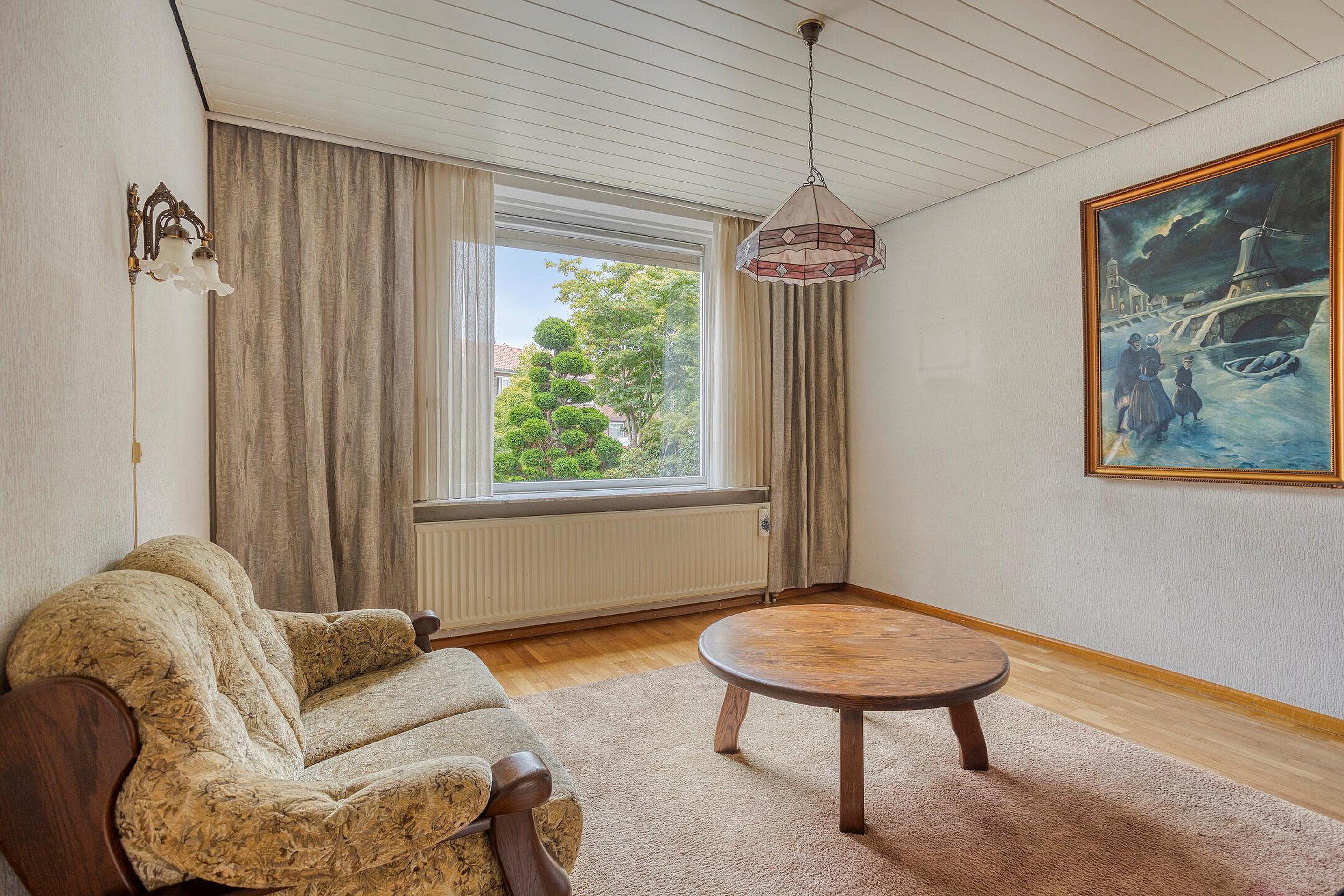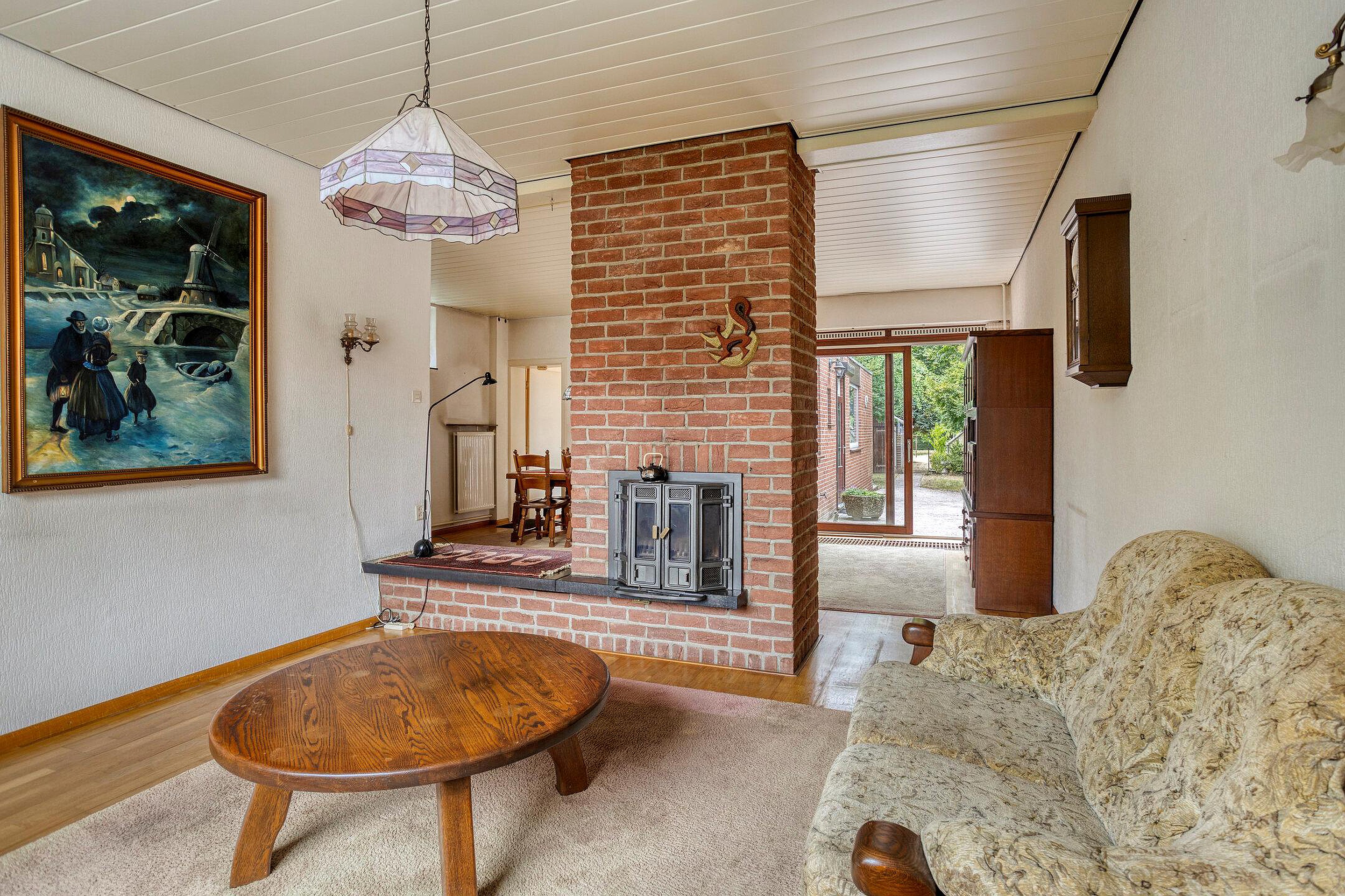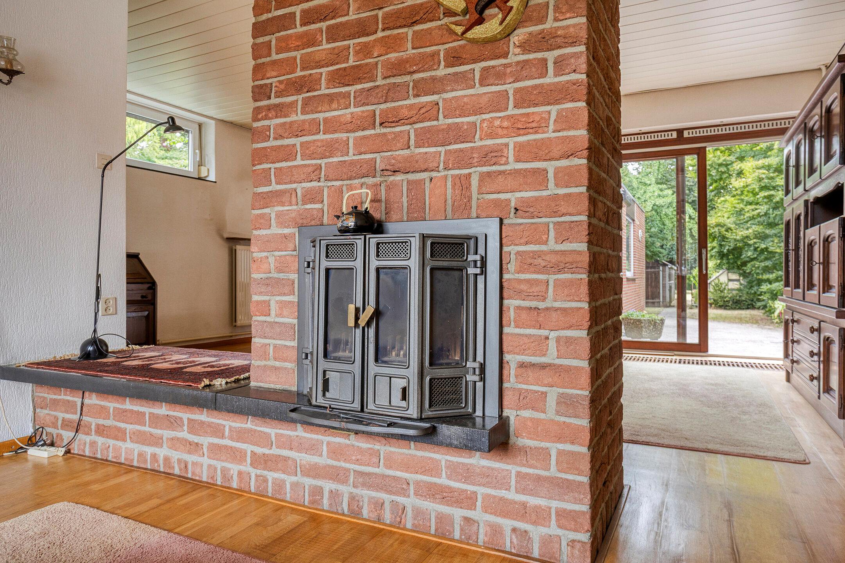 - Royale woonkamer (ca. 42 m2) met sfeervolle haardpartij en schuifpui naar het terras en de grote tuin.