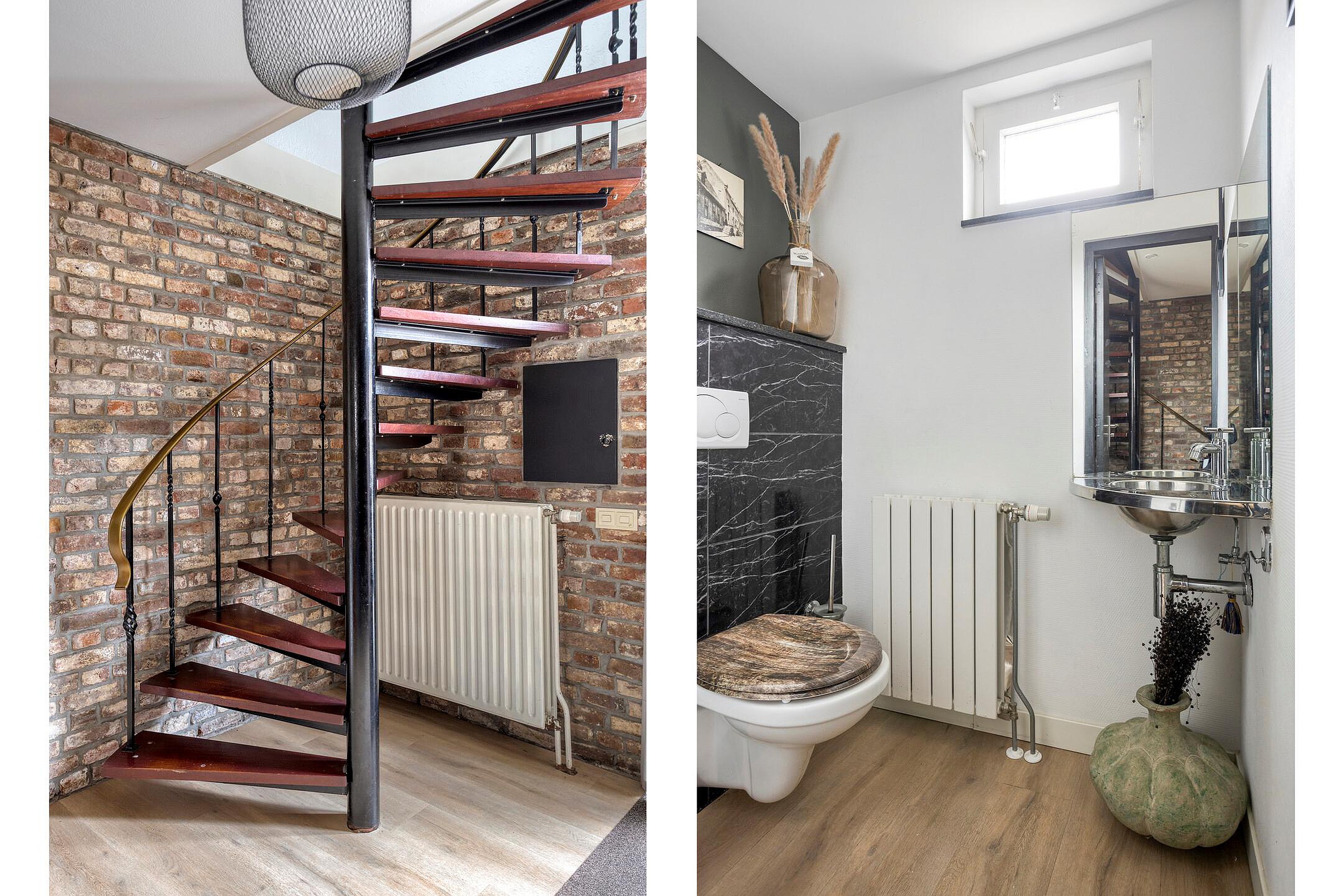 Middels de wenteltrap bereikt men de eerste verdieping. Vanuit de overloop zijn drie royale slaapkamers bereikbaar. Slaapkamer I (ca.12 m2) en slaapkamer II (ca.17 m2) zijn, net als elkaar, aan de achterzijde van de woning gelegen. Slaapkamer III (ca.13 m2) bevindt zich aan de voorzijde. Aan de voorzijde ligt eveneens de ruime badkamer (ca.8 m2), die is uitgerust met een inloopdouche, hoekbad, wandcloset en een wastafelmeubel met granieten blad, onder- en bovenkasten, spiegels en inbouwspots. De badkamer is volledig betegeld en voorzien van natuurlijke ventilatie. De slaapkamers en de overloop zijn afgewerkt met een lichte parketvloer. Op deze verdieping zijn alle houten raamkozijnen voorzien van dubbele beglazing.