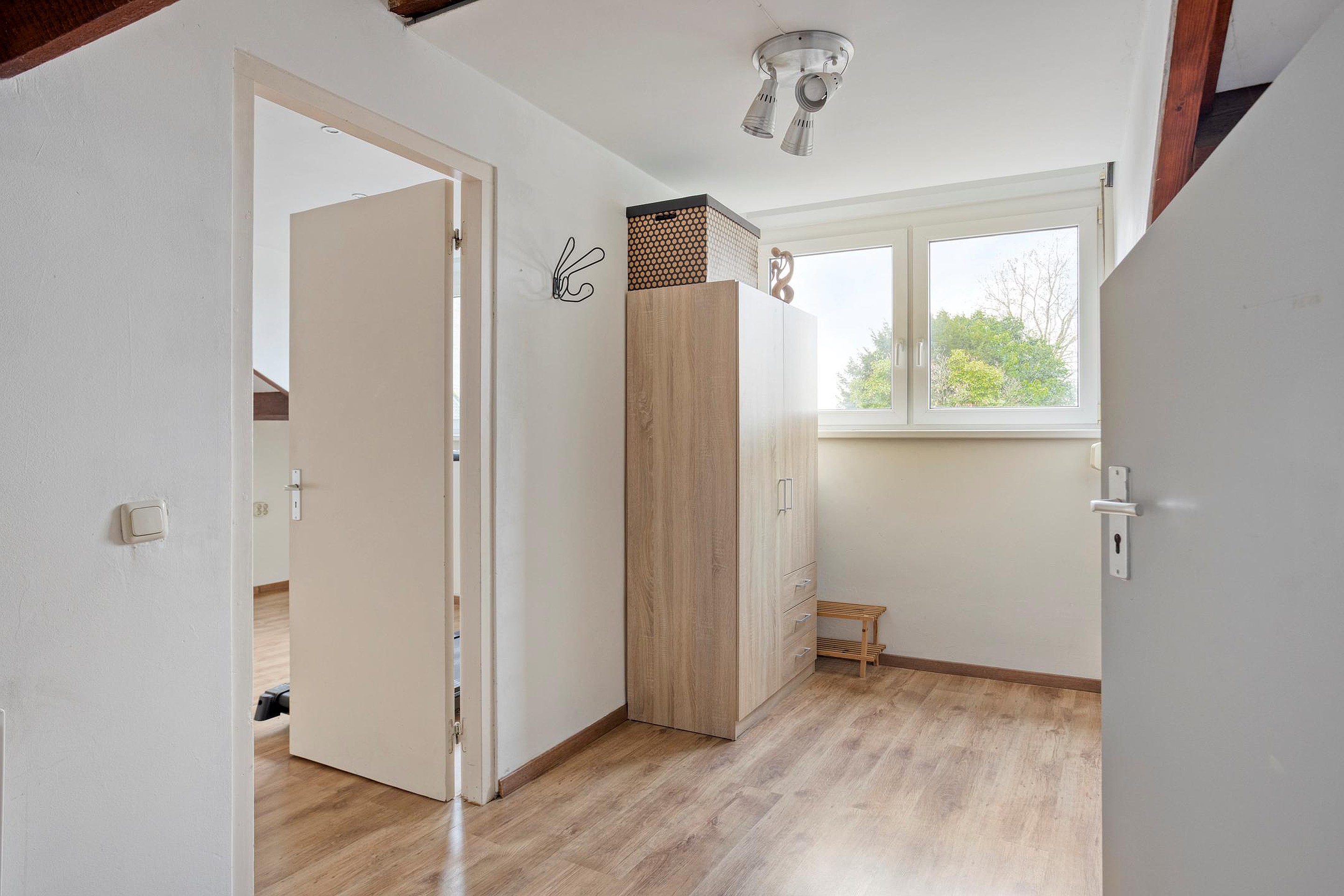 De zolderverdieping is in twee ruimtes opgesplitst. De overloop kan goed gebruikt worden als hobbyruimte (ca.14m2), opslag of werkplek. De andere ruimte is een ideale vierde slaapkamer (ca.18m2). Beide ruimtes voelen niet als een zolderverdieping door de royale dakkapel die veel daglicht toelaat. De kunststofkozijnen zijn van HR++ beglazing voorzien en de zolderruimte is tevens verwarmd en van laminaat voorzien.