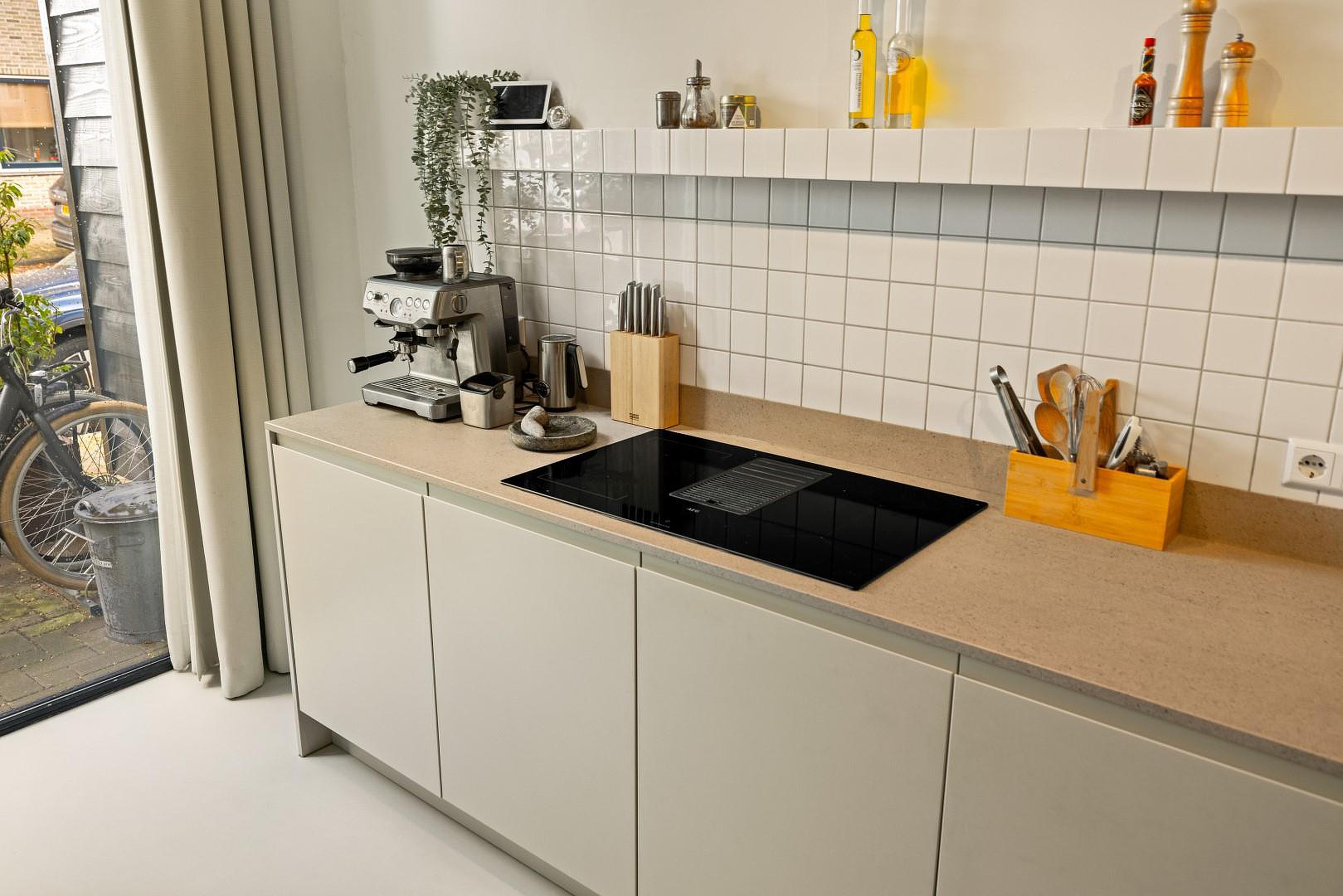 - Luxe keuken met o.a. stoomoven, Quooker, dubbele koeling en inductie met geïntegreerde afzuiging;