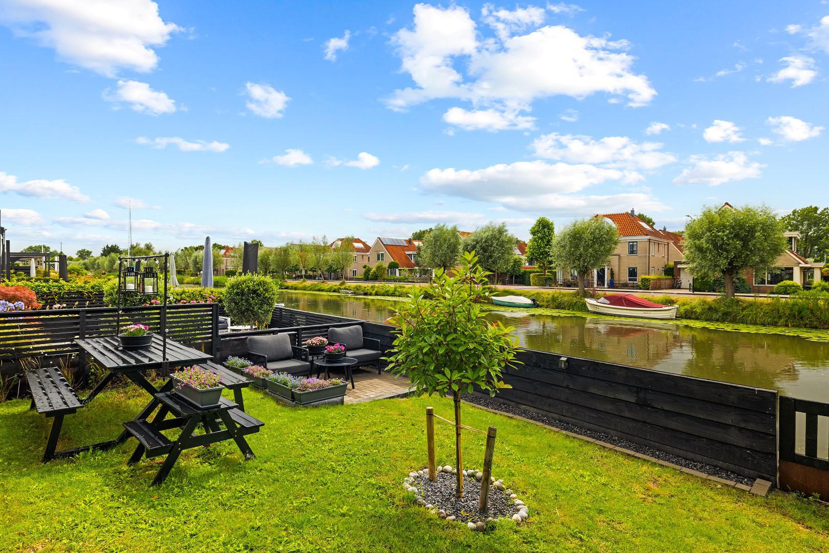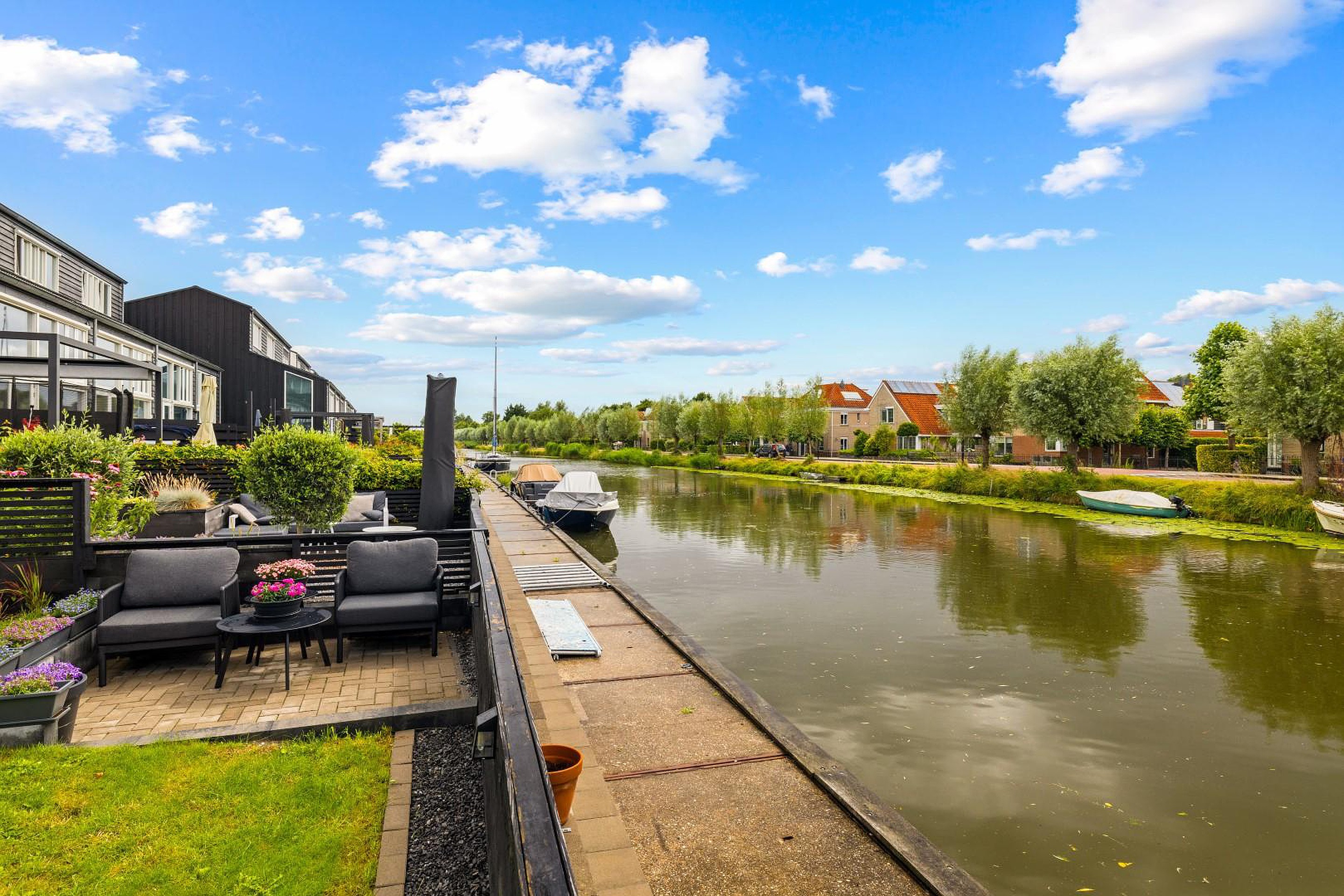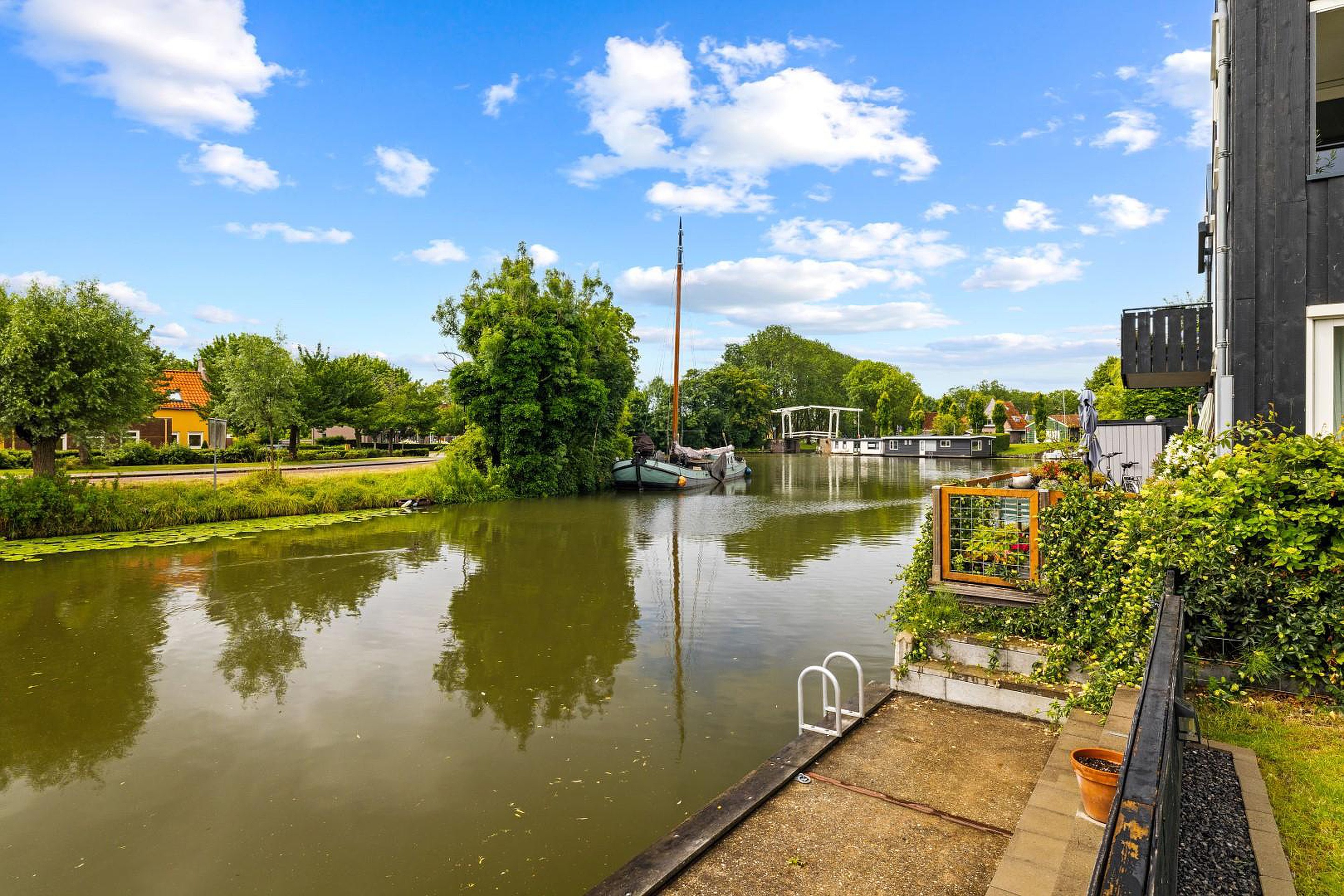 - Tuin op het zuiden, grenzend aan doorgaand vaarwater;