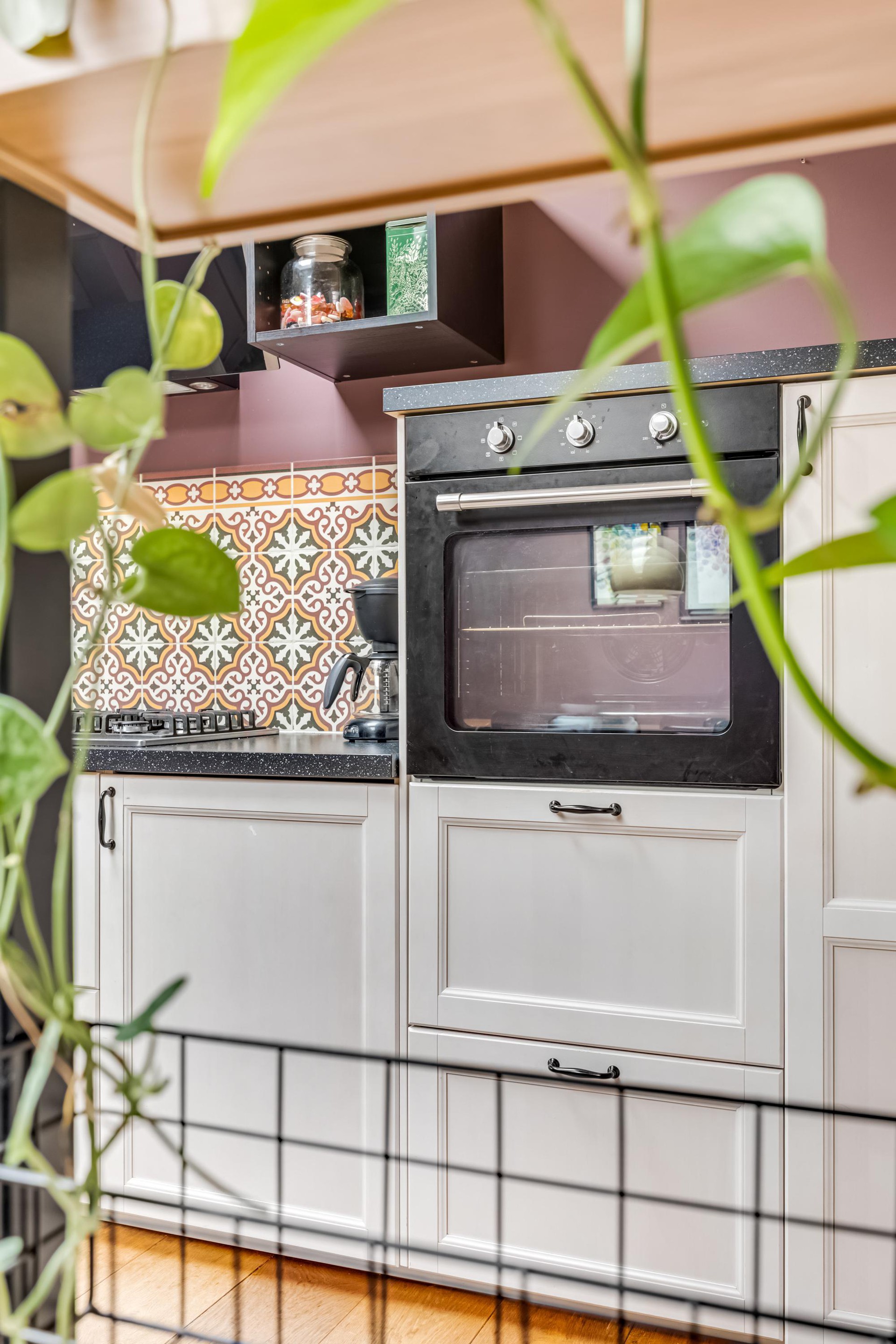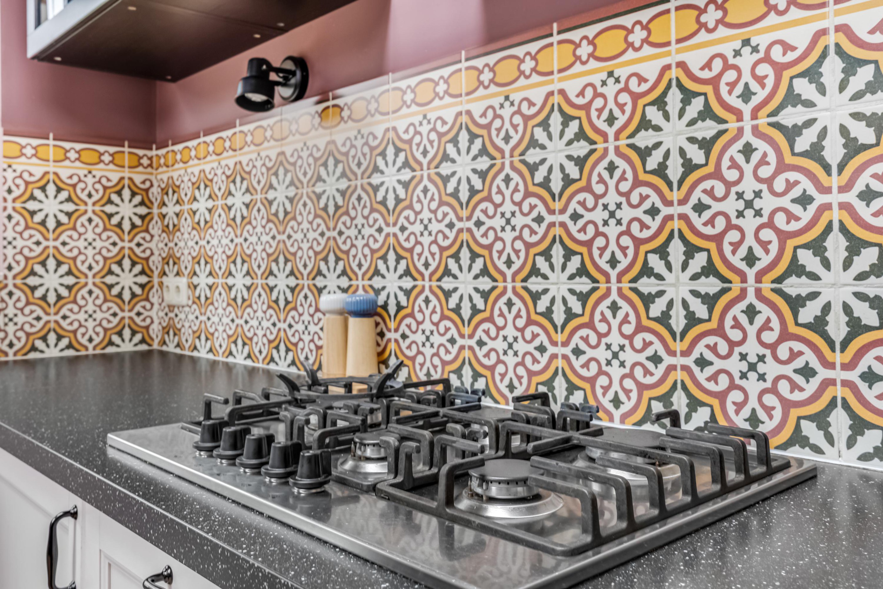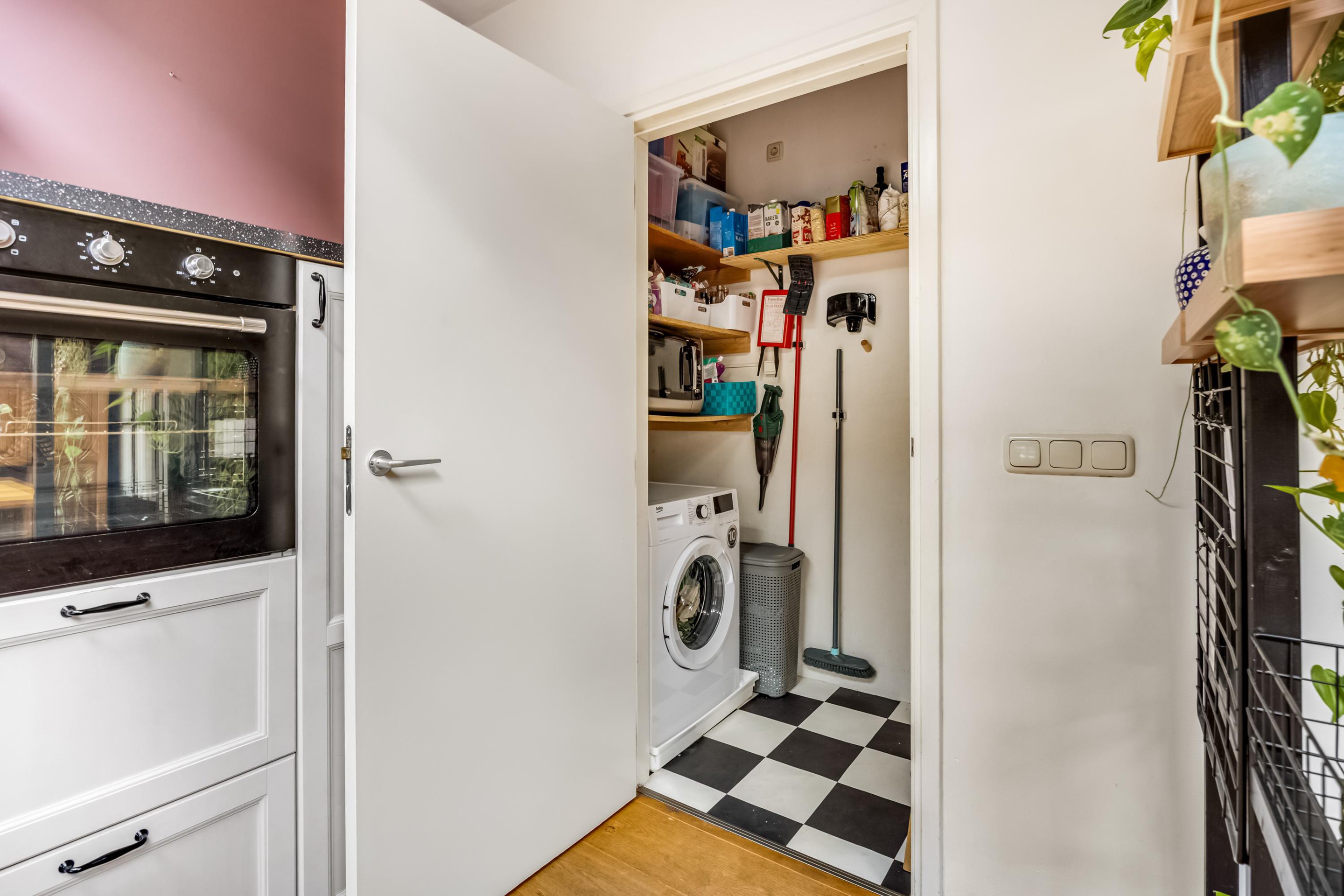 De keuken is uitgerust met diverse inbouwapparatuur, waaronder een 5-pits gasfornuis, afzuigkap, oven, vaatwasser en koelkast. De Portugese tegels geven deze ruimte extra charme en sfeer. Aangrenzend bevindt zich een handige voorraadkast met de aansluiting voor de wasmachine.
