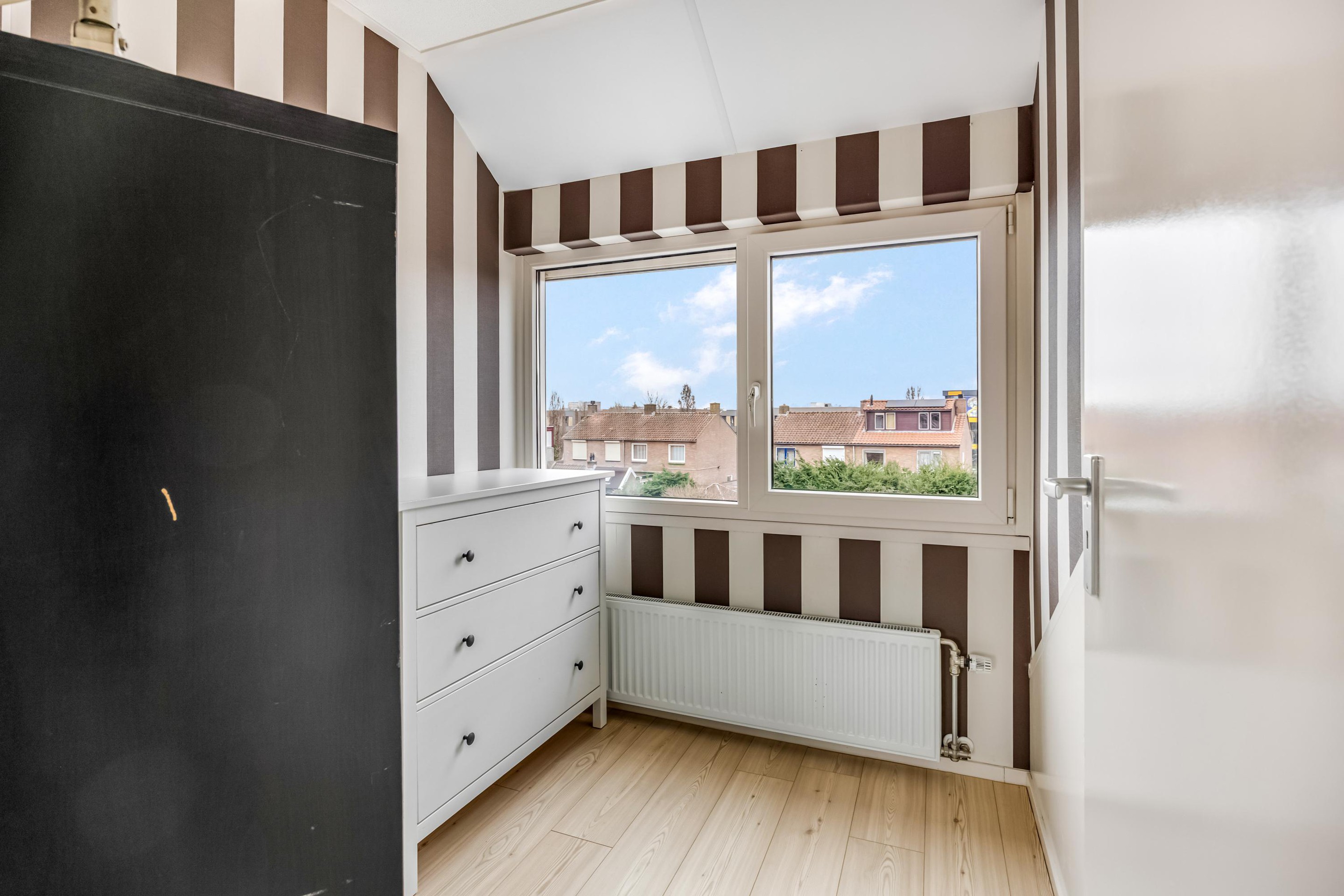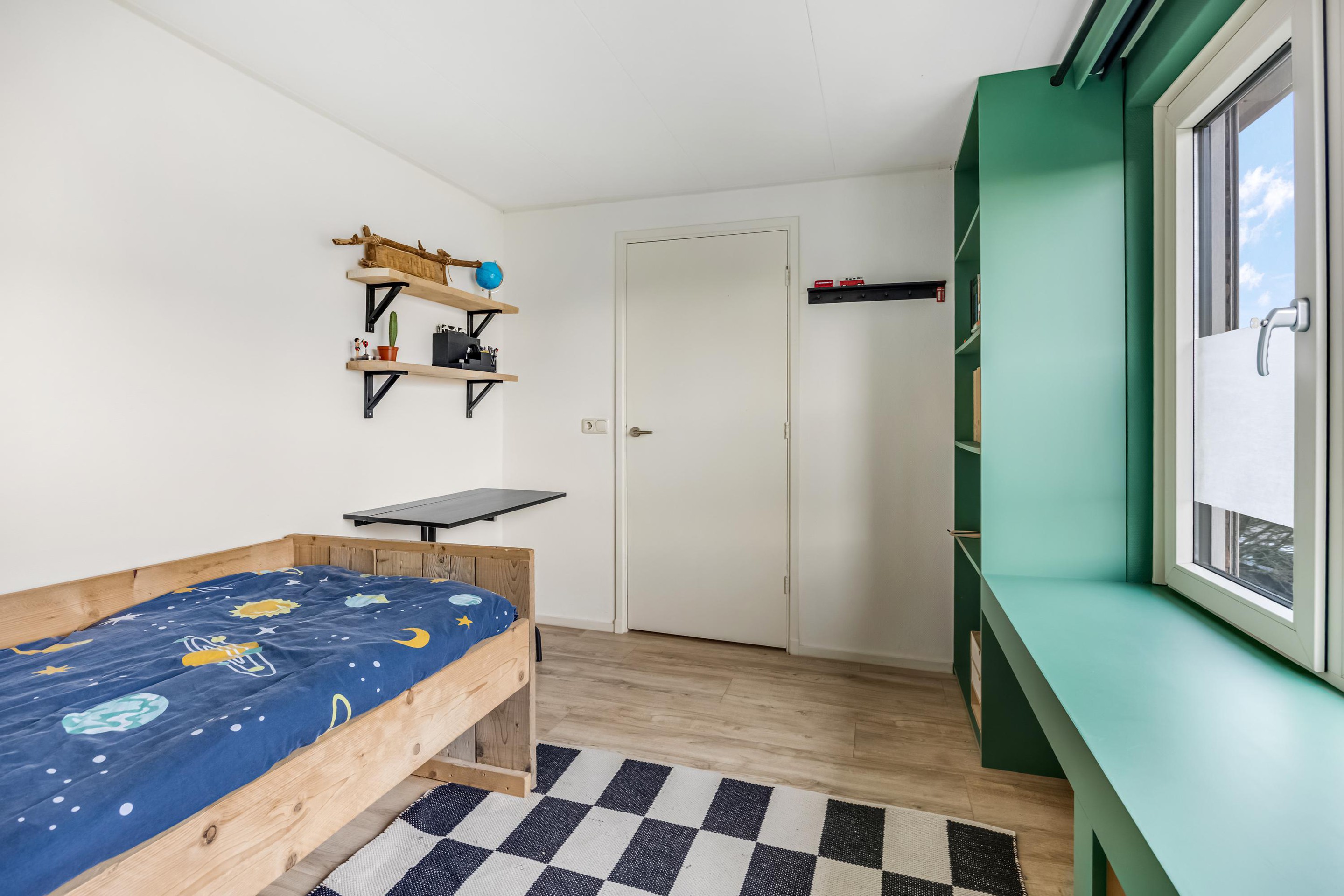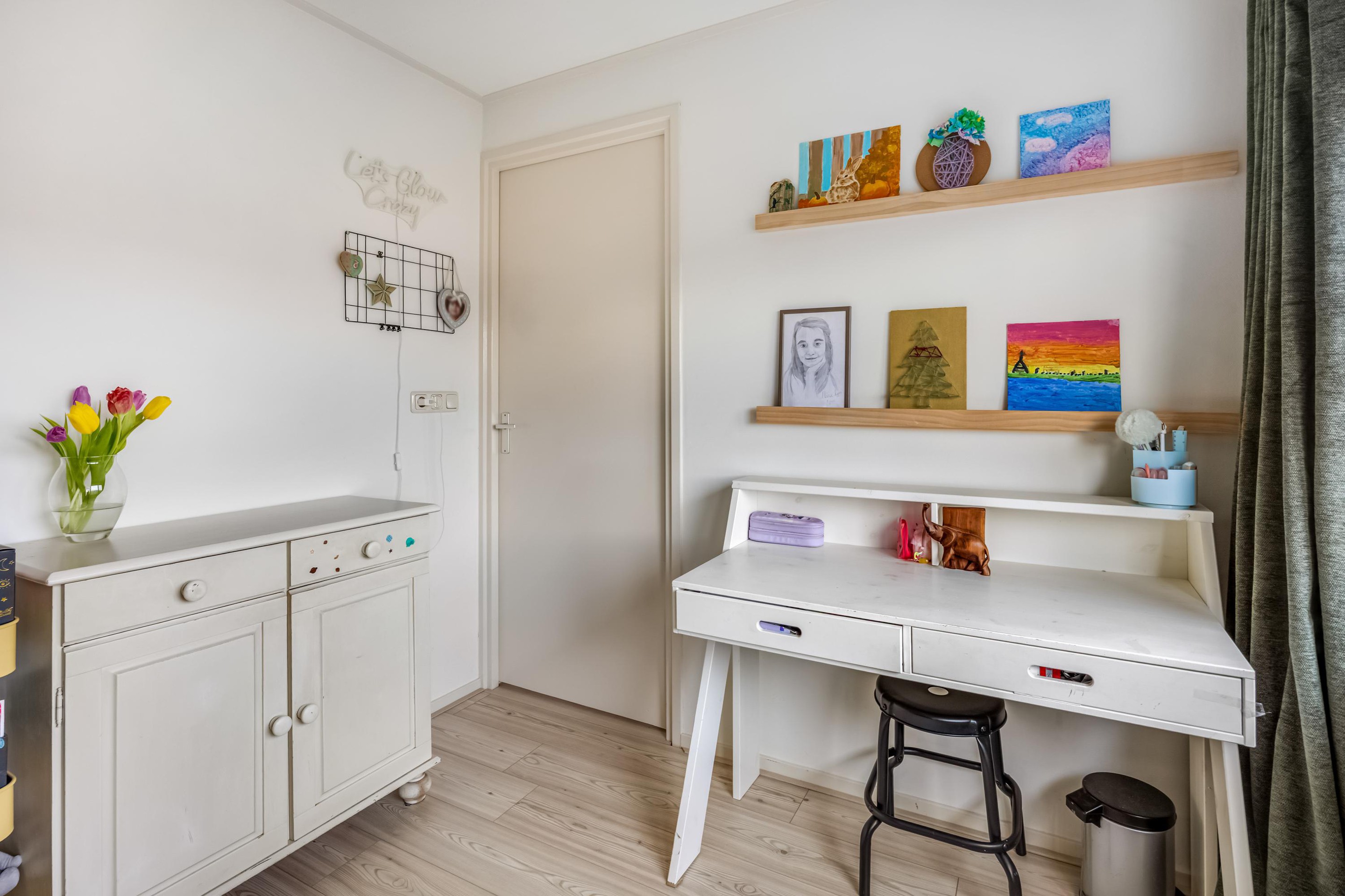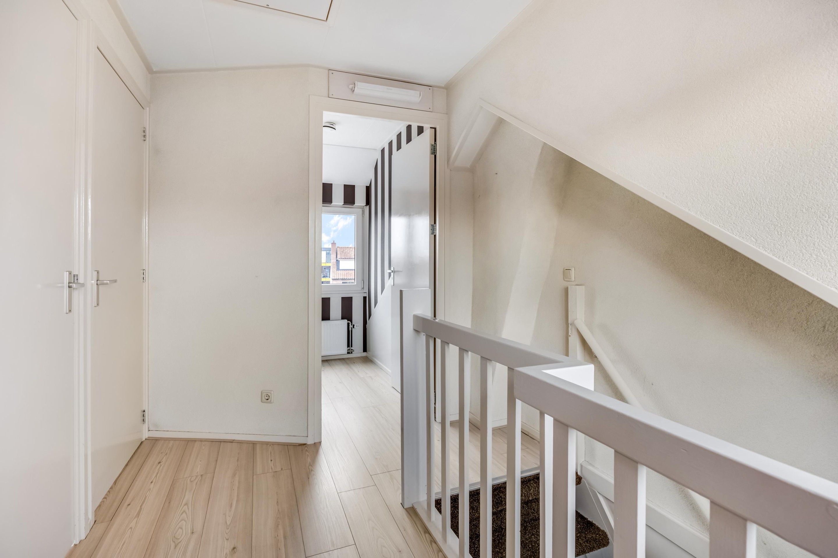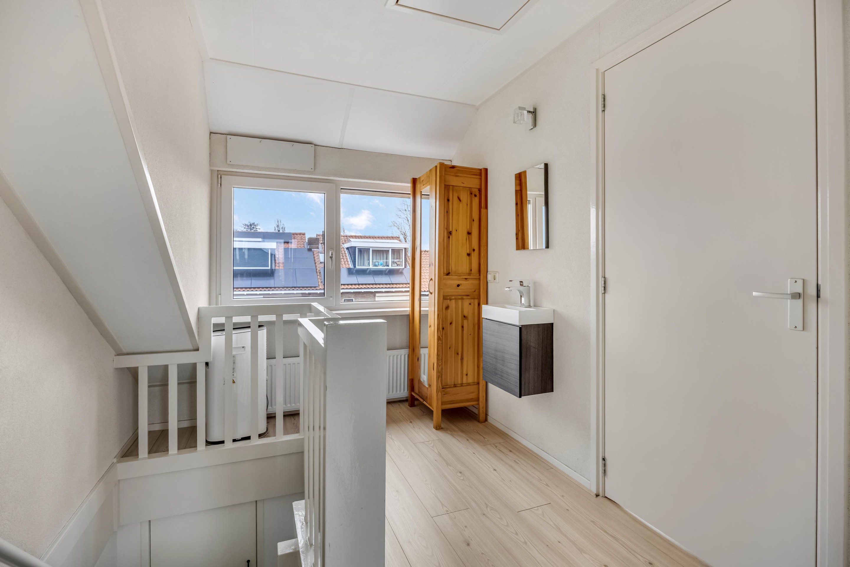 Op de ruime overloop vind je een wastafel en toegang tot een extra kamertje, ideaal als inloopkast of werkkamer. Hier bevindt zich tevens de opstelplaats van de CV-ketel (Nefit Smartline, 2006). Daarnaast zijn er op deze verdieping nog twee slaapkamers van goed formaat, mede dankzij de dakopbouw over de volledige breedte van de woning.
