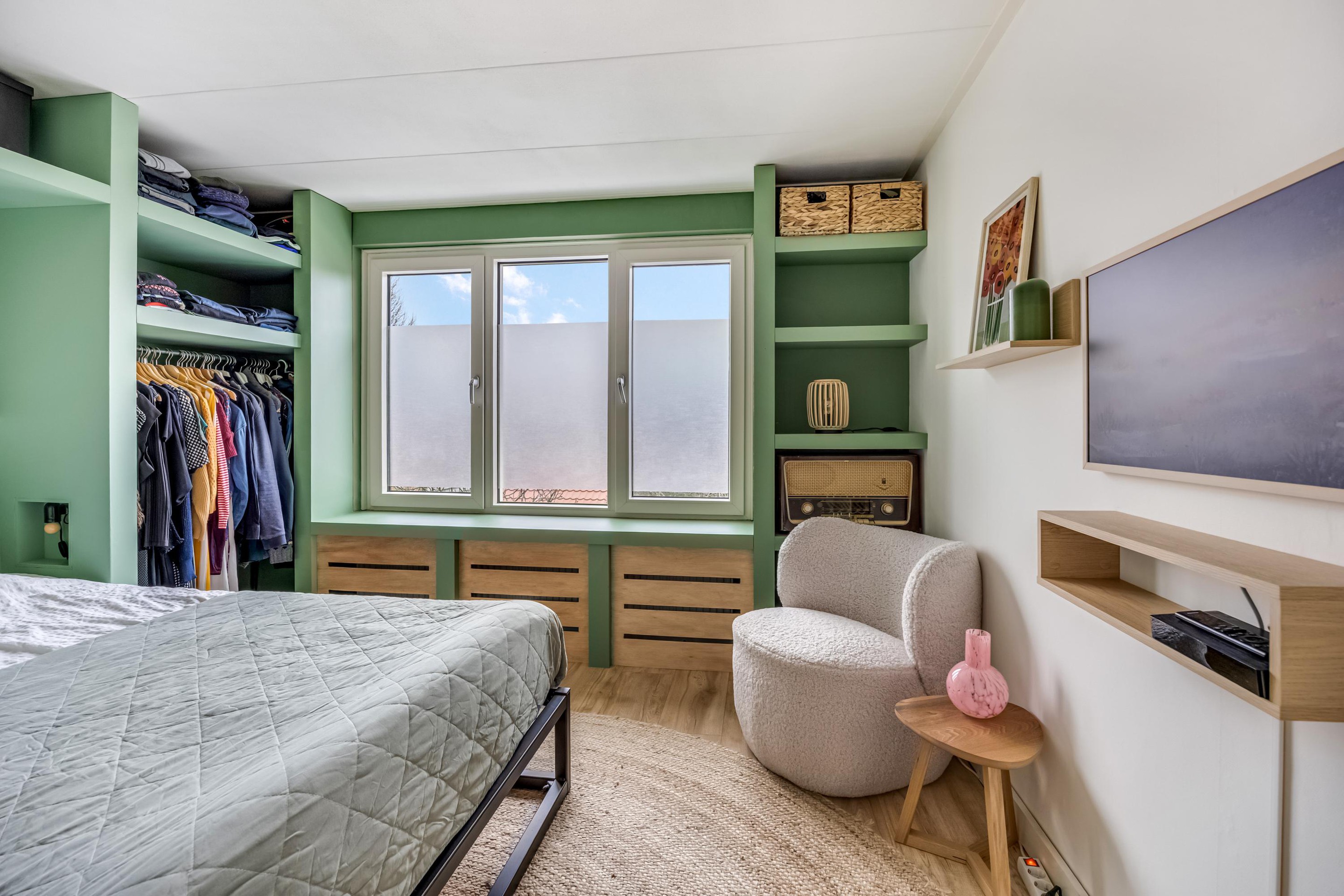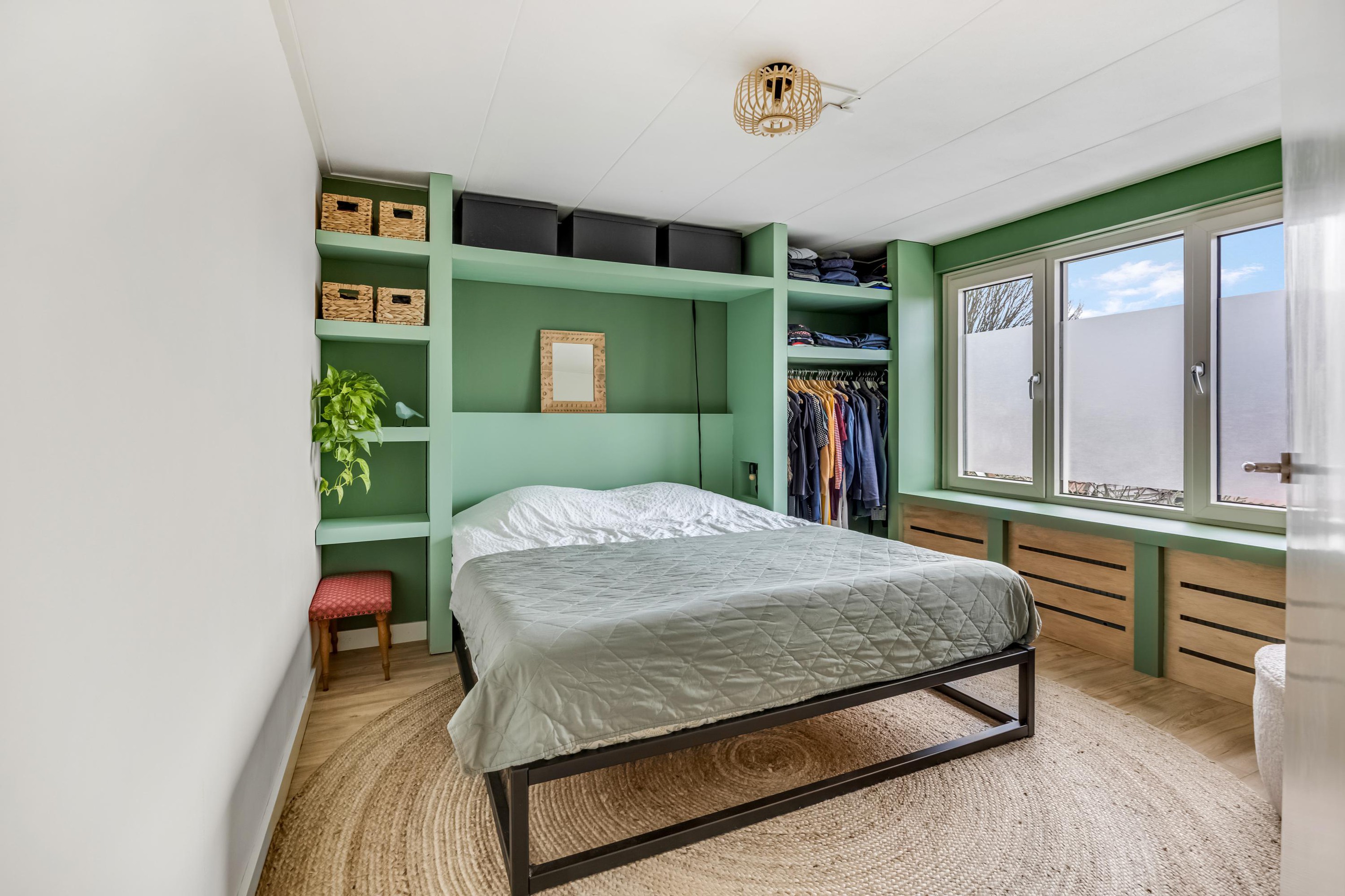 Daarnaast is er een separaat toilet met fonteintje. De ouderslaapkamer beschikt over een vaste kast met leg- en hanggedeelte.