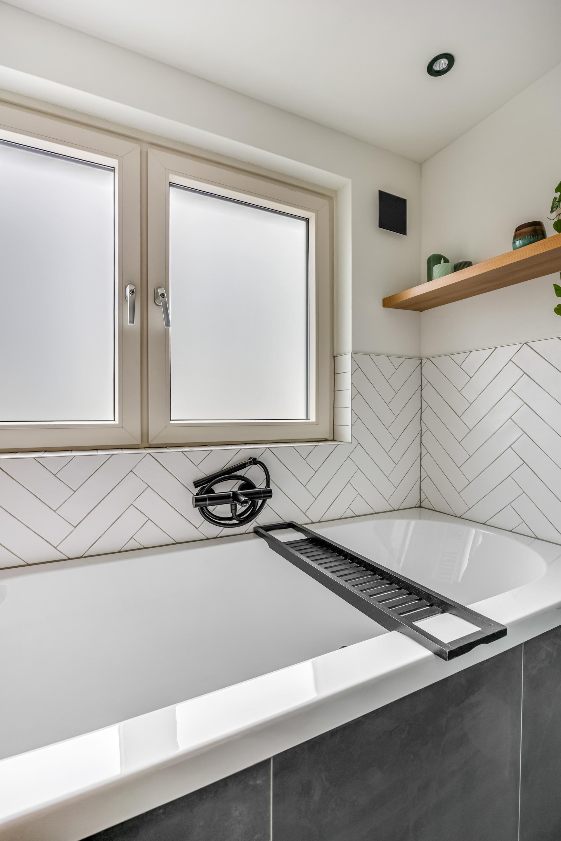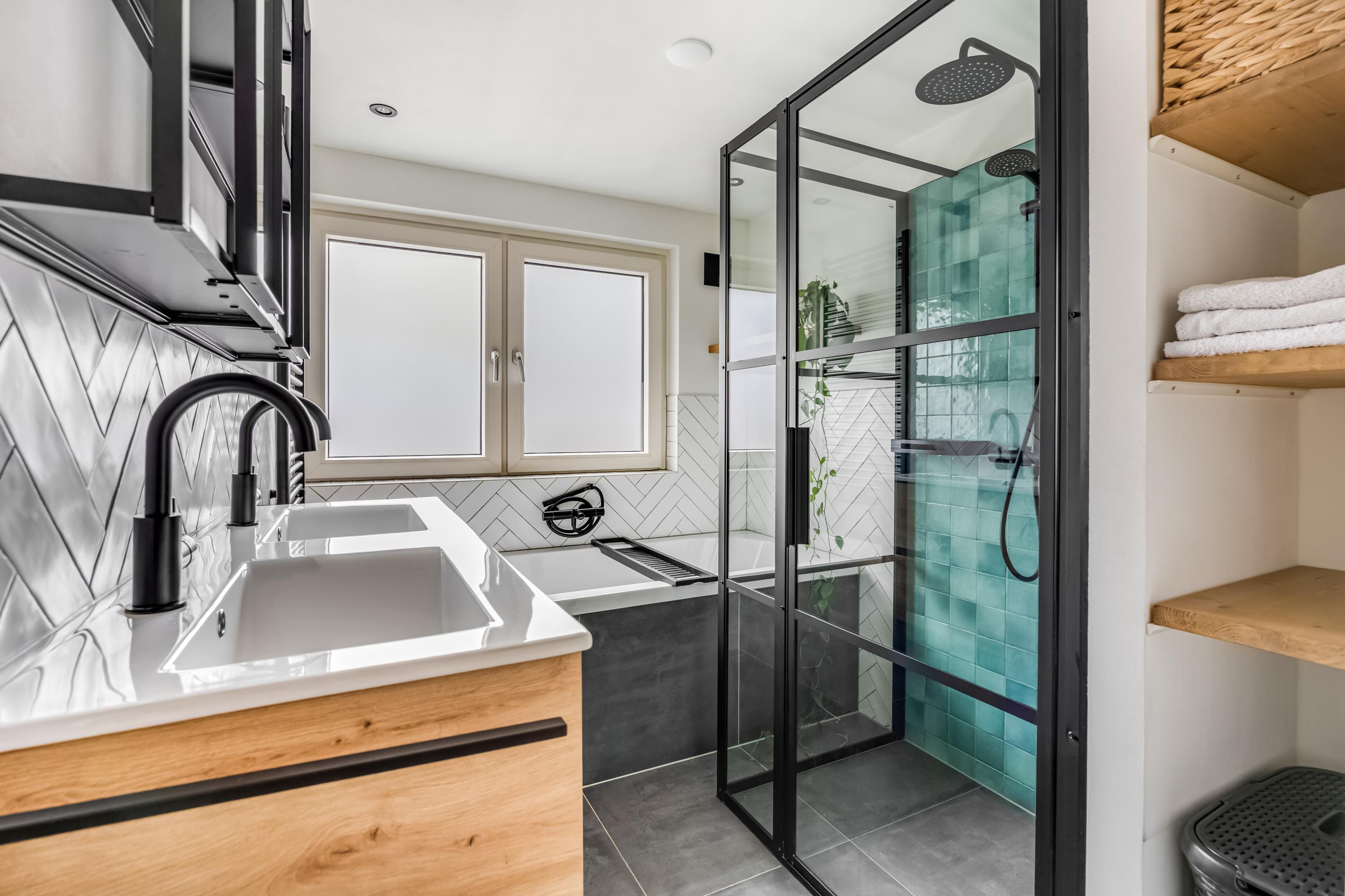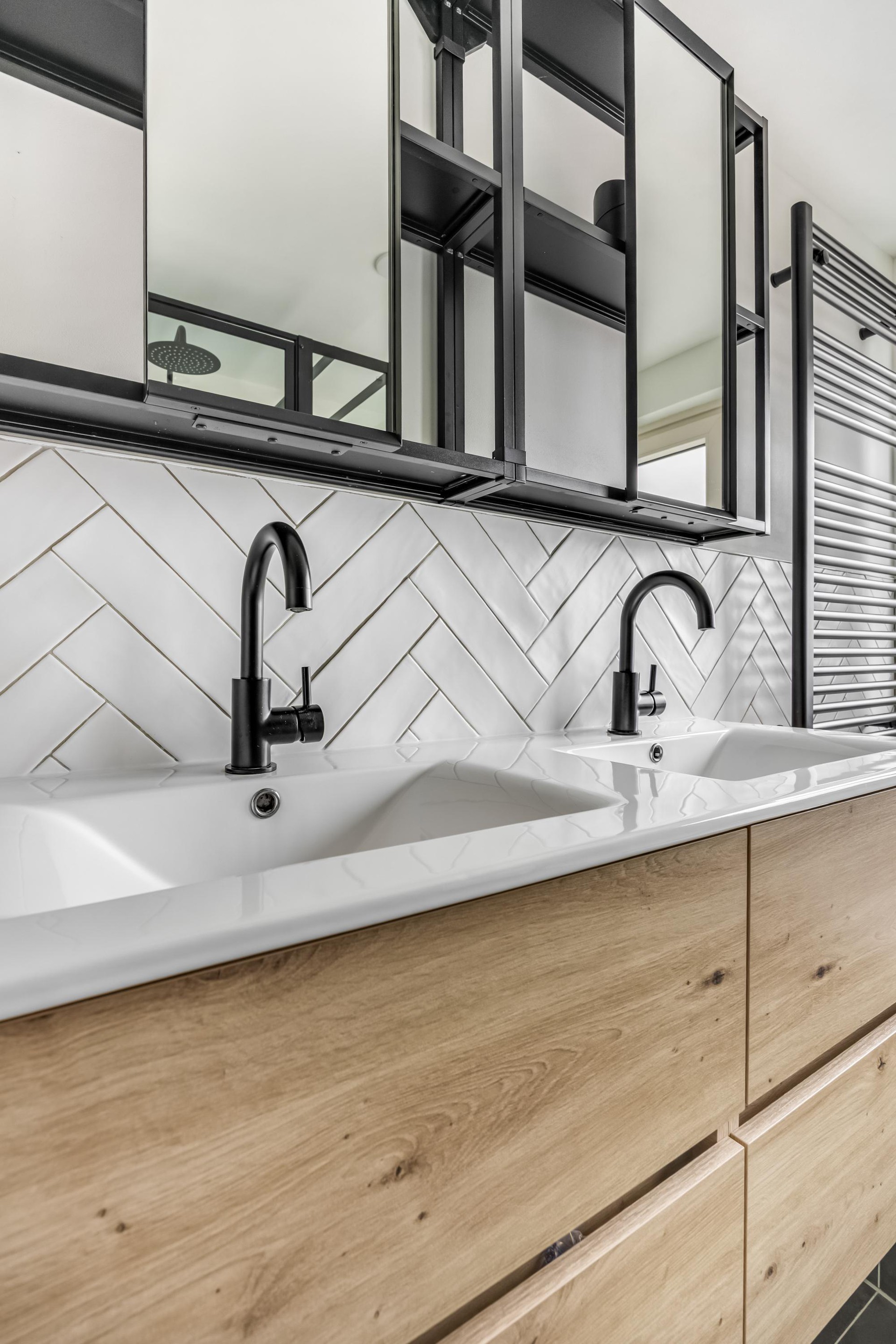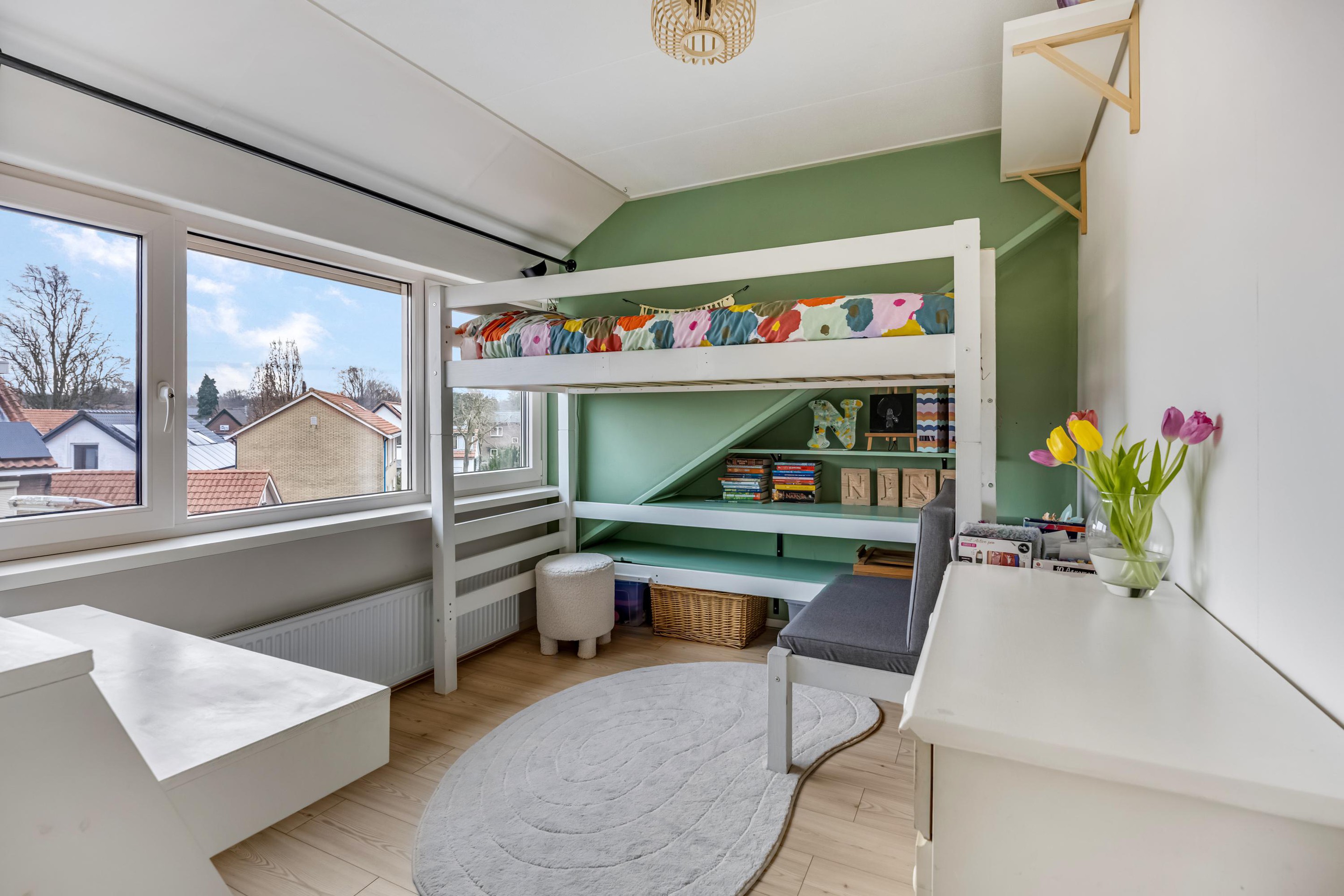 De overloop biedt toegang tot twee ruime slaapkamers en een recent volledig vernieuwde badkamer (2022). Deze moderne badkamer is voorzien van een dubbel wastafelmeubel, ligbad, inloopdouche en elektrische vloerverwarming. Een raam zorgt voor natuurlijk daglicht én goede ventilatie.