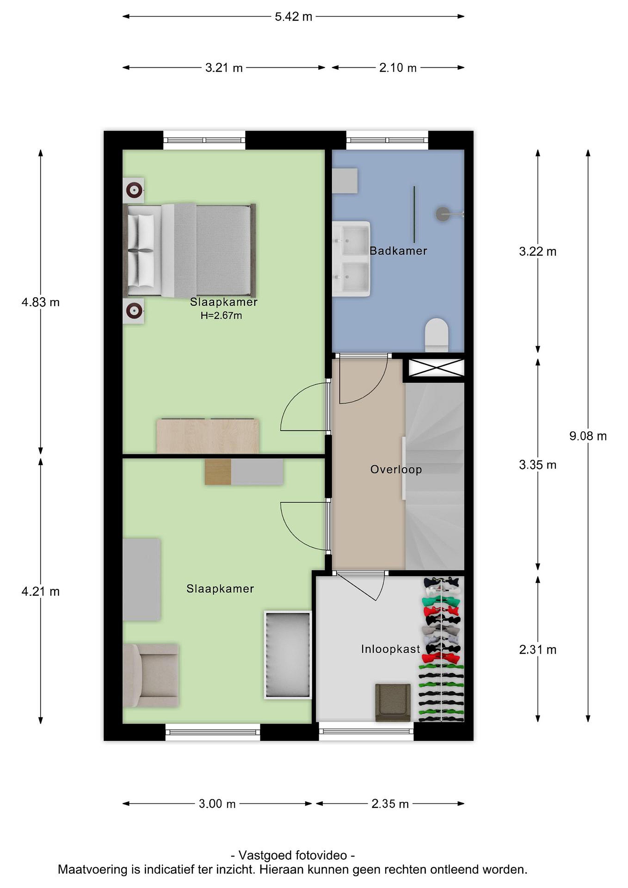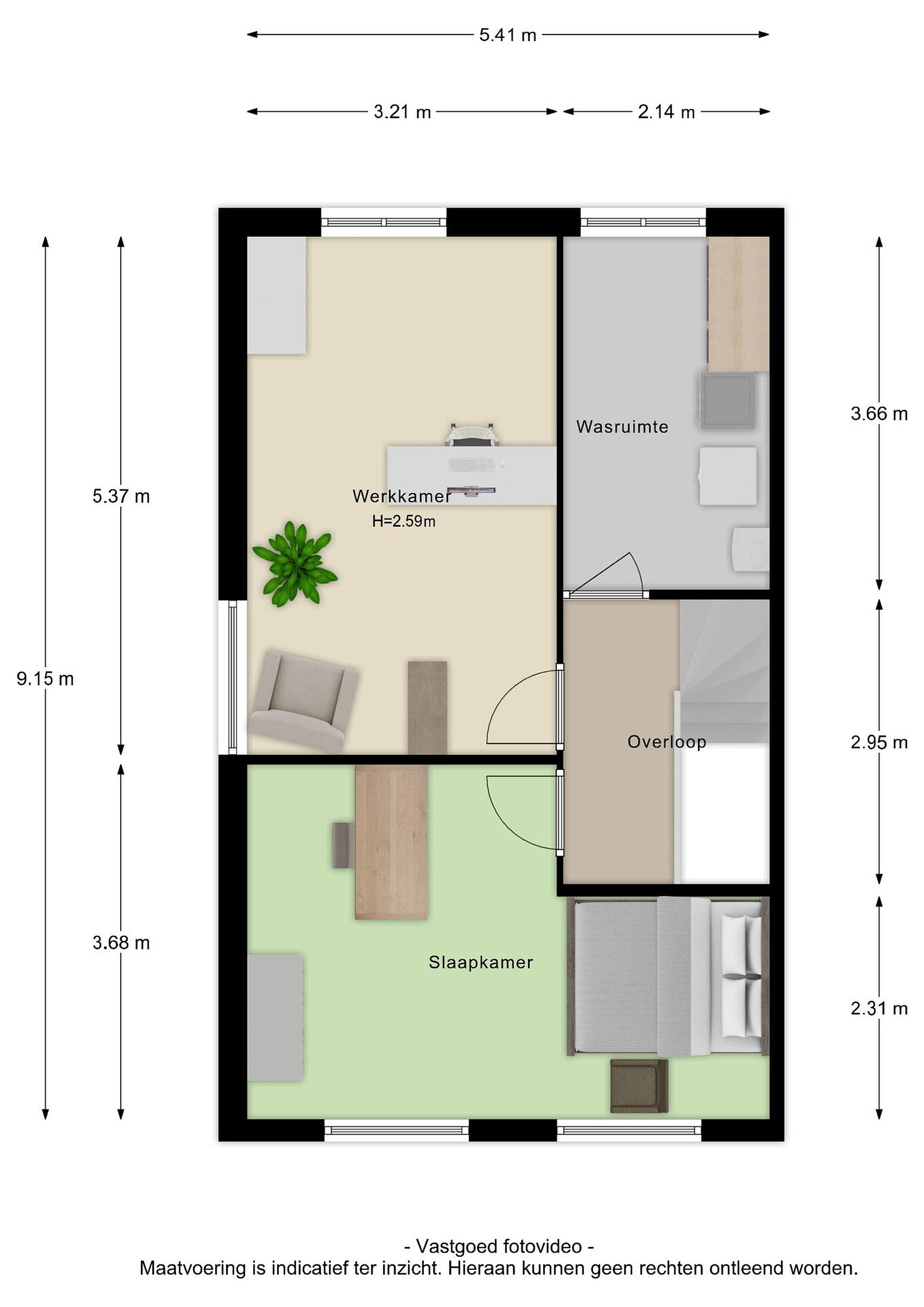 Tweede verdieping Op de tweede verdieping zijn nog twee ruime slaapkamers en een wasruimte. De ene kamer ligt aan de voorzijde en heeft twee ramen met zicht op de omgeving en de Veluwse bossen in de verte.