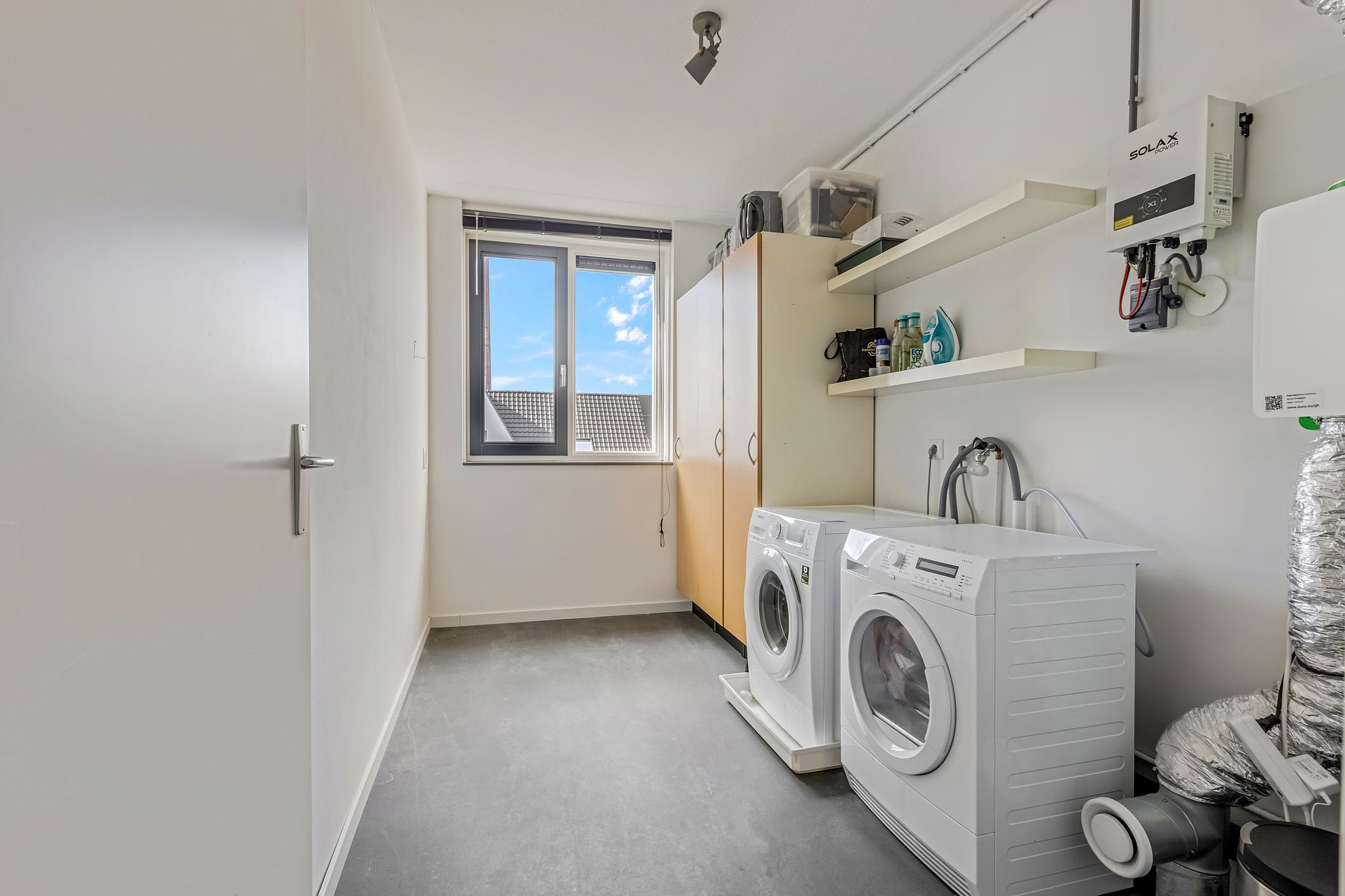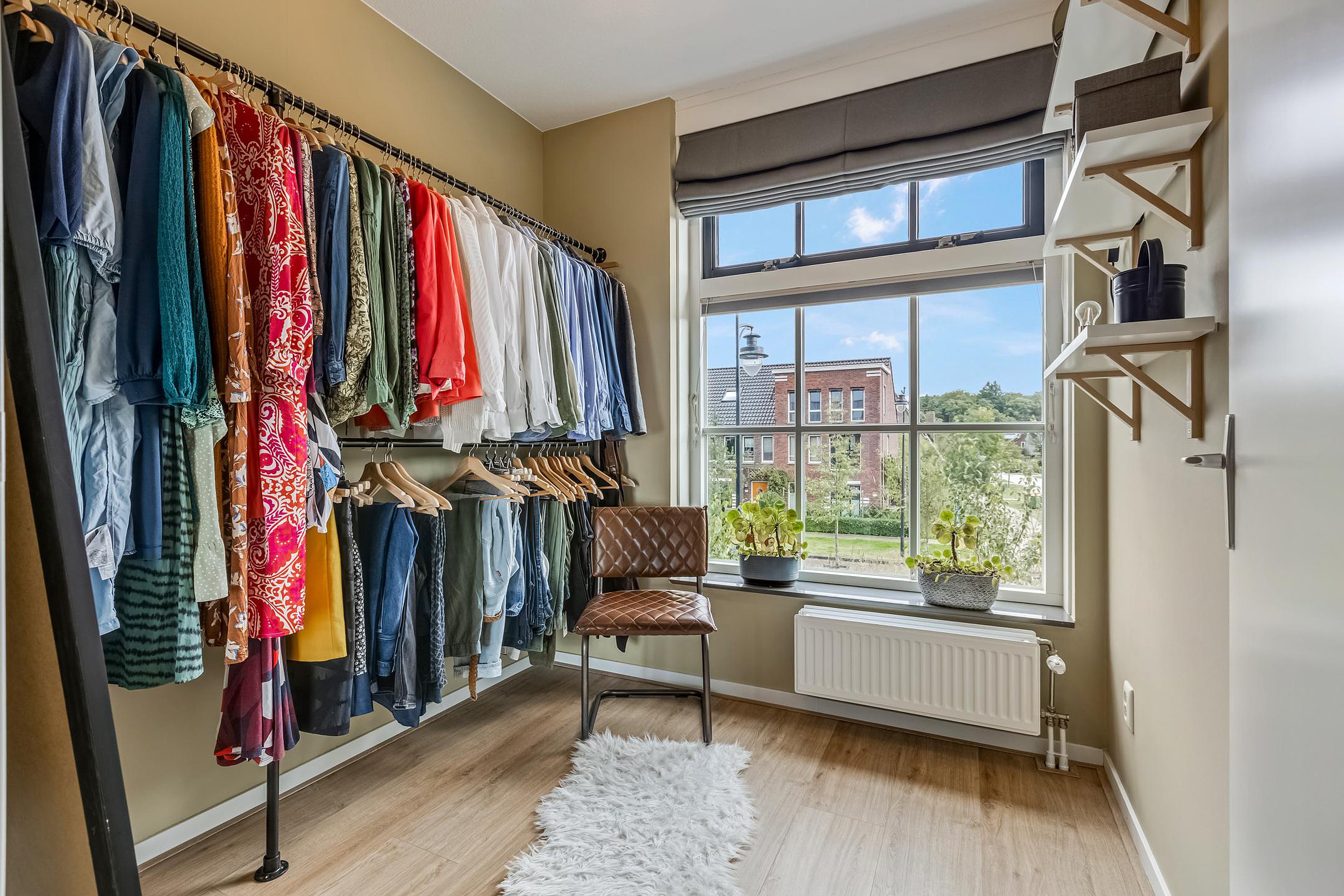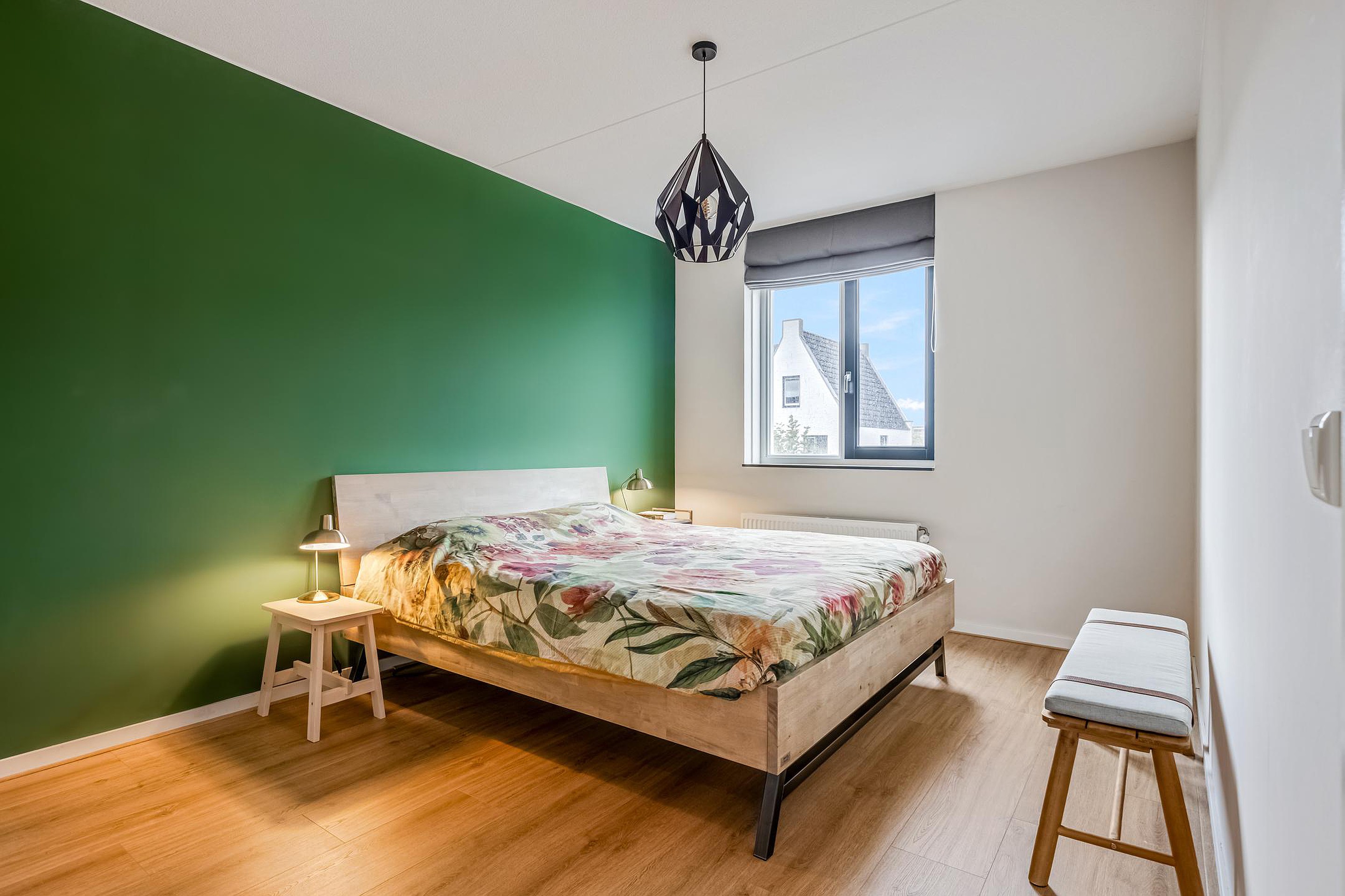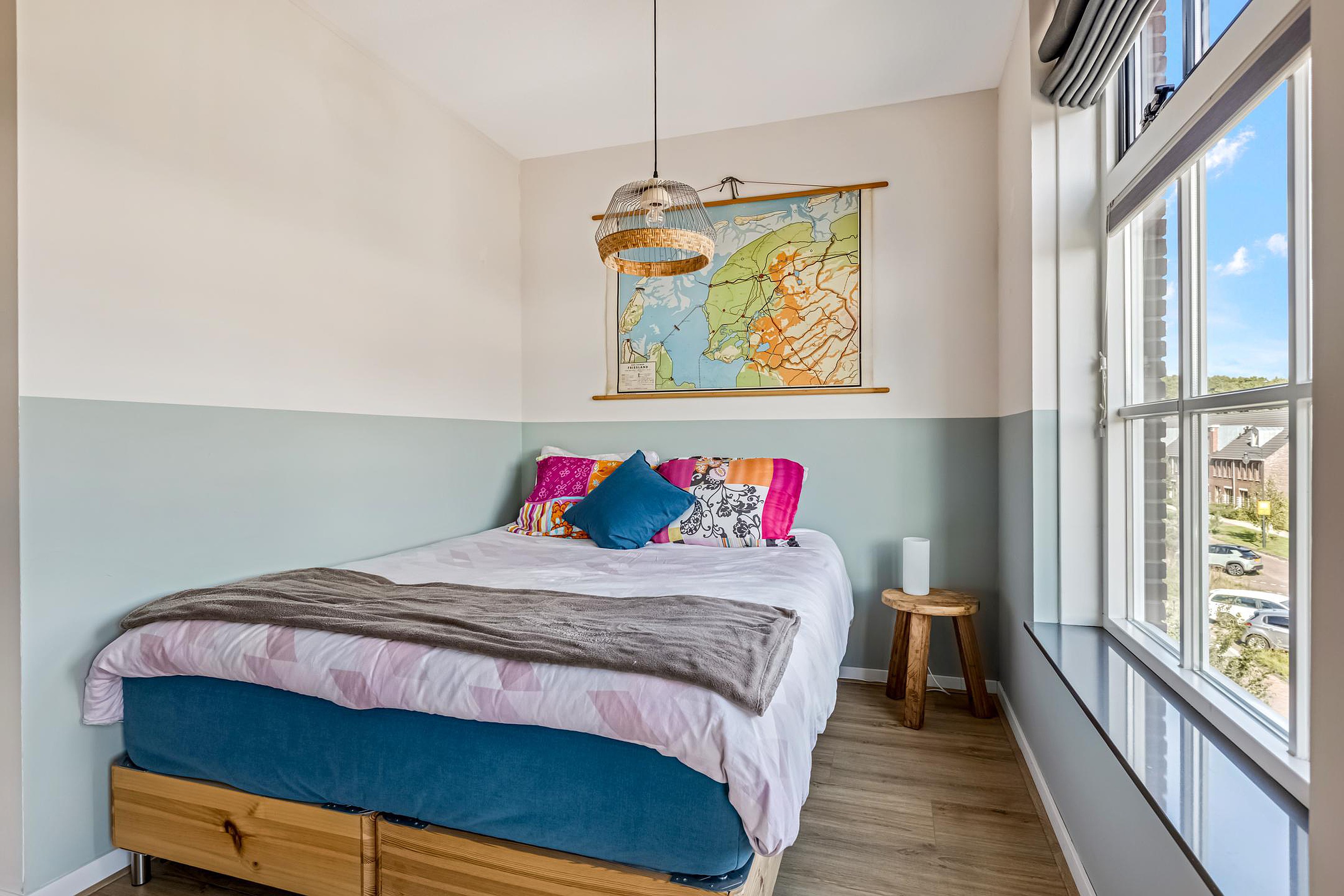 De slaapkamer aan de achterzijde kijkt uit op beide ENKA-schoorstenen en heeft een extra raam in de zijgevel. De wasruimte biedt plek aan wasmachine, droger en de technische installaties. Daarnaast is er volop ruimte voor kasten.