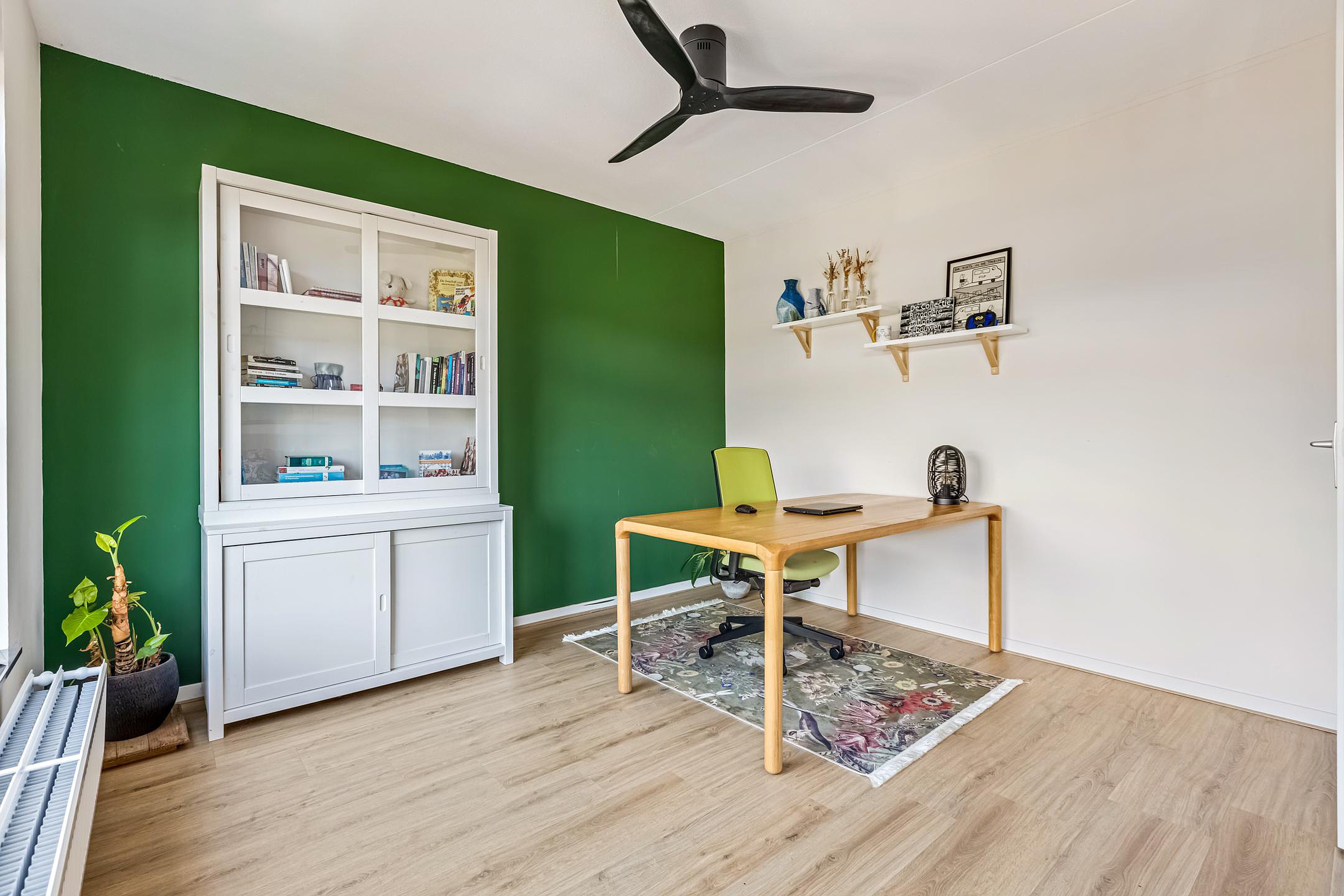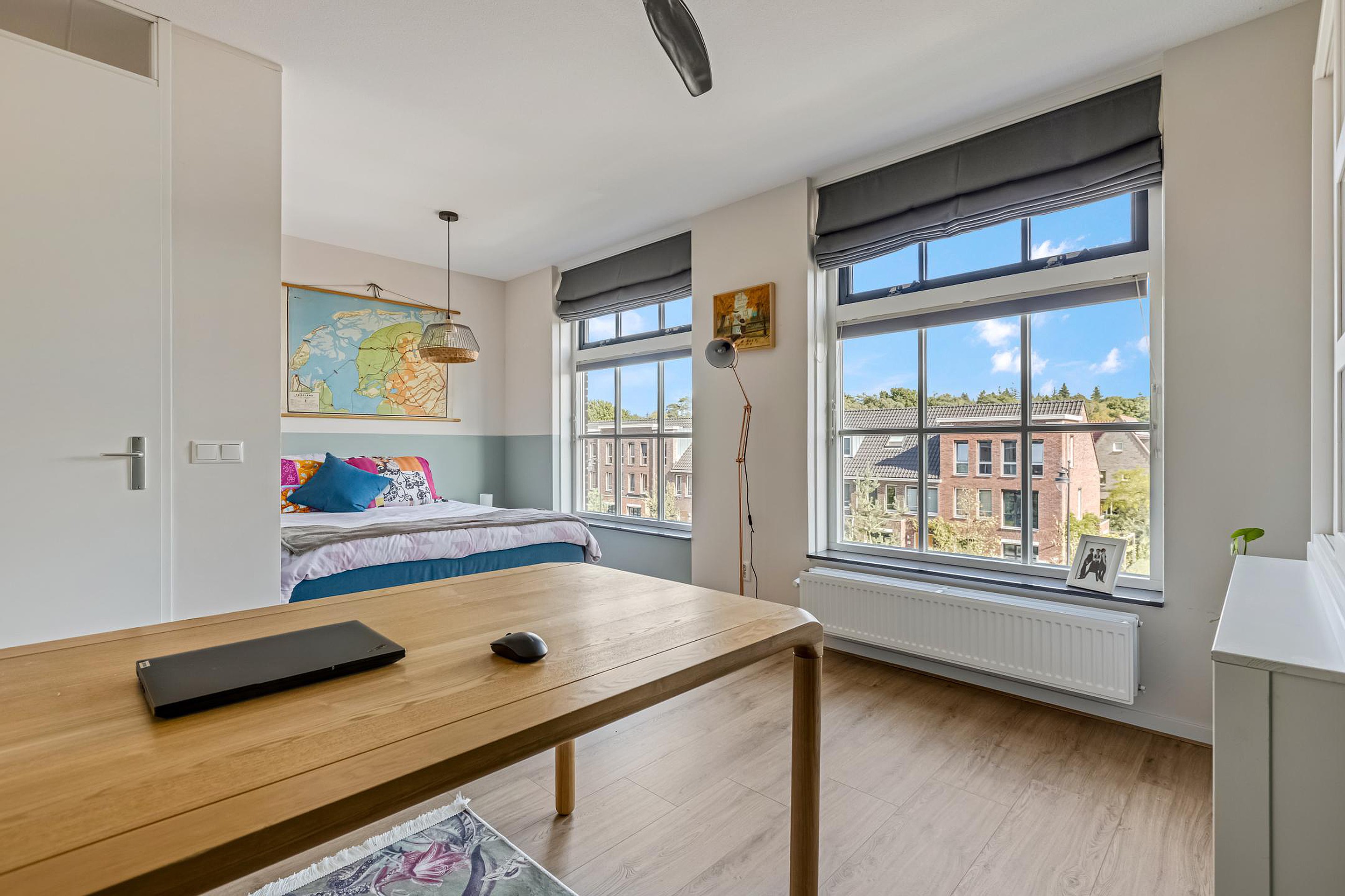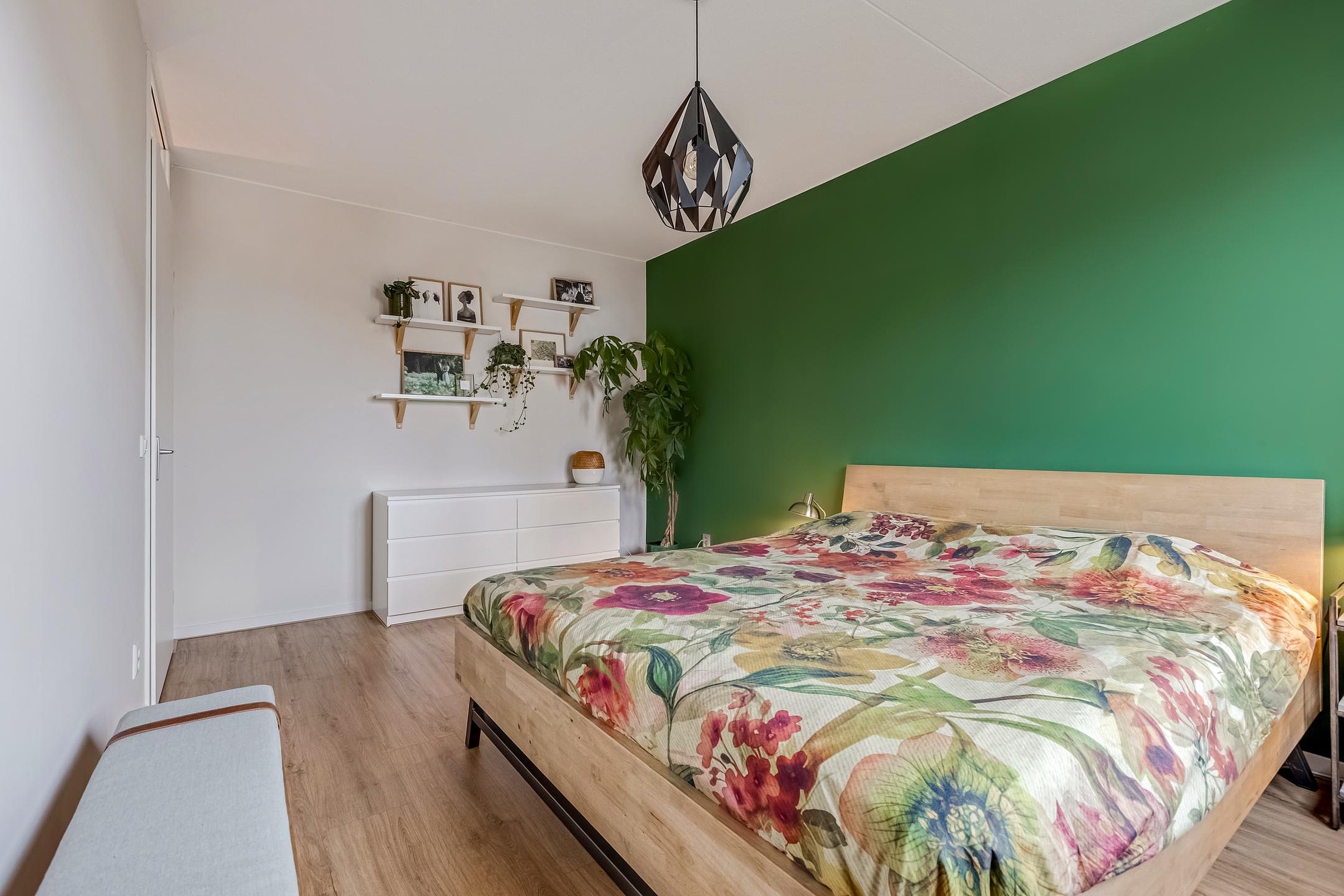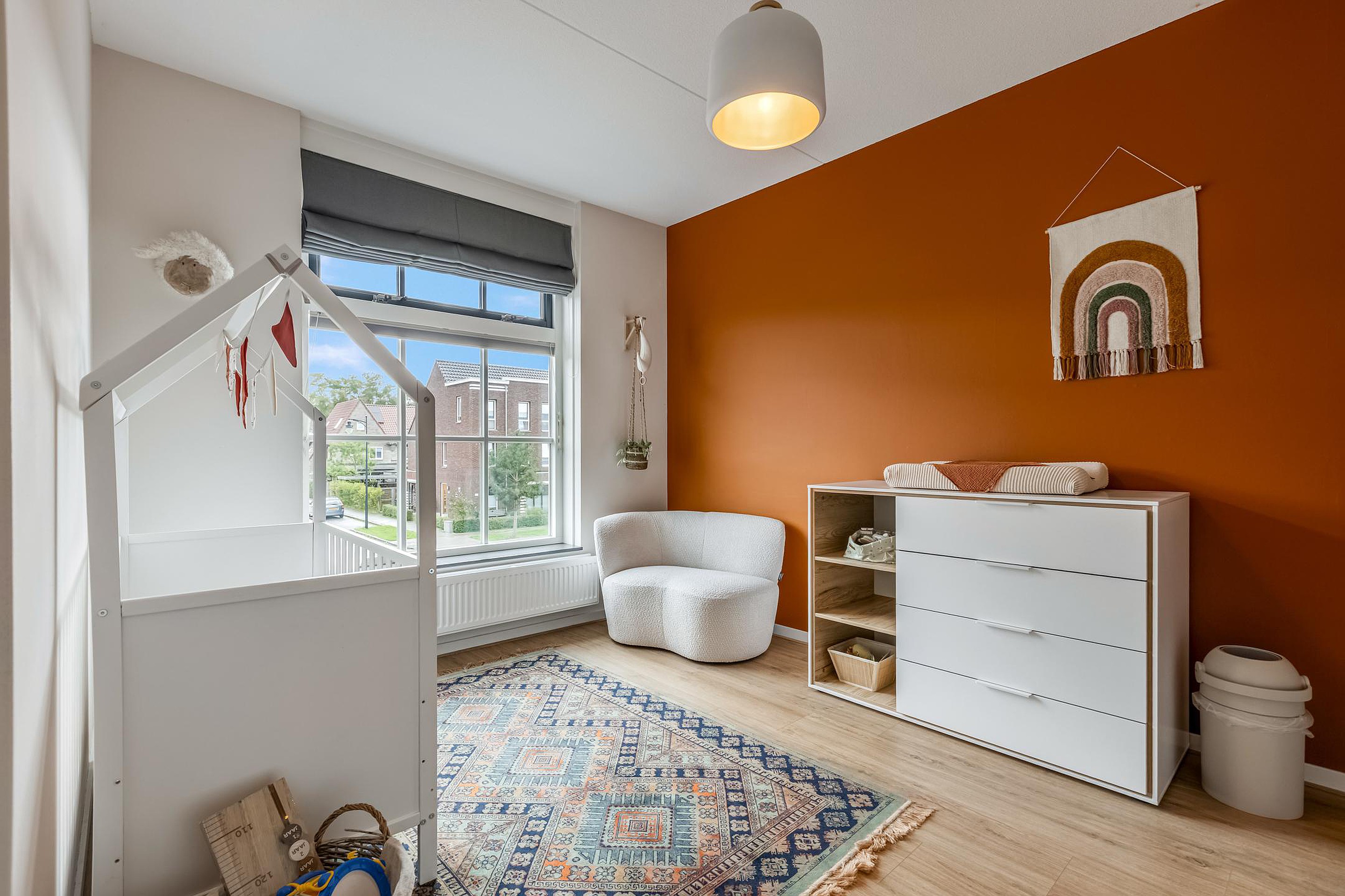 De slaapkamer aan de achterzijde kijkt uit op beide ENKA-schoorstenen en heeft een extra raam in de zijgevel. De wasruimte biedt plek aan wasmachine, droger en de technische installaties. Daarnaast is er volop ruimte voor kasten.