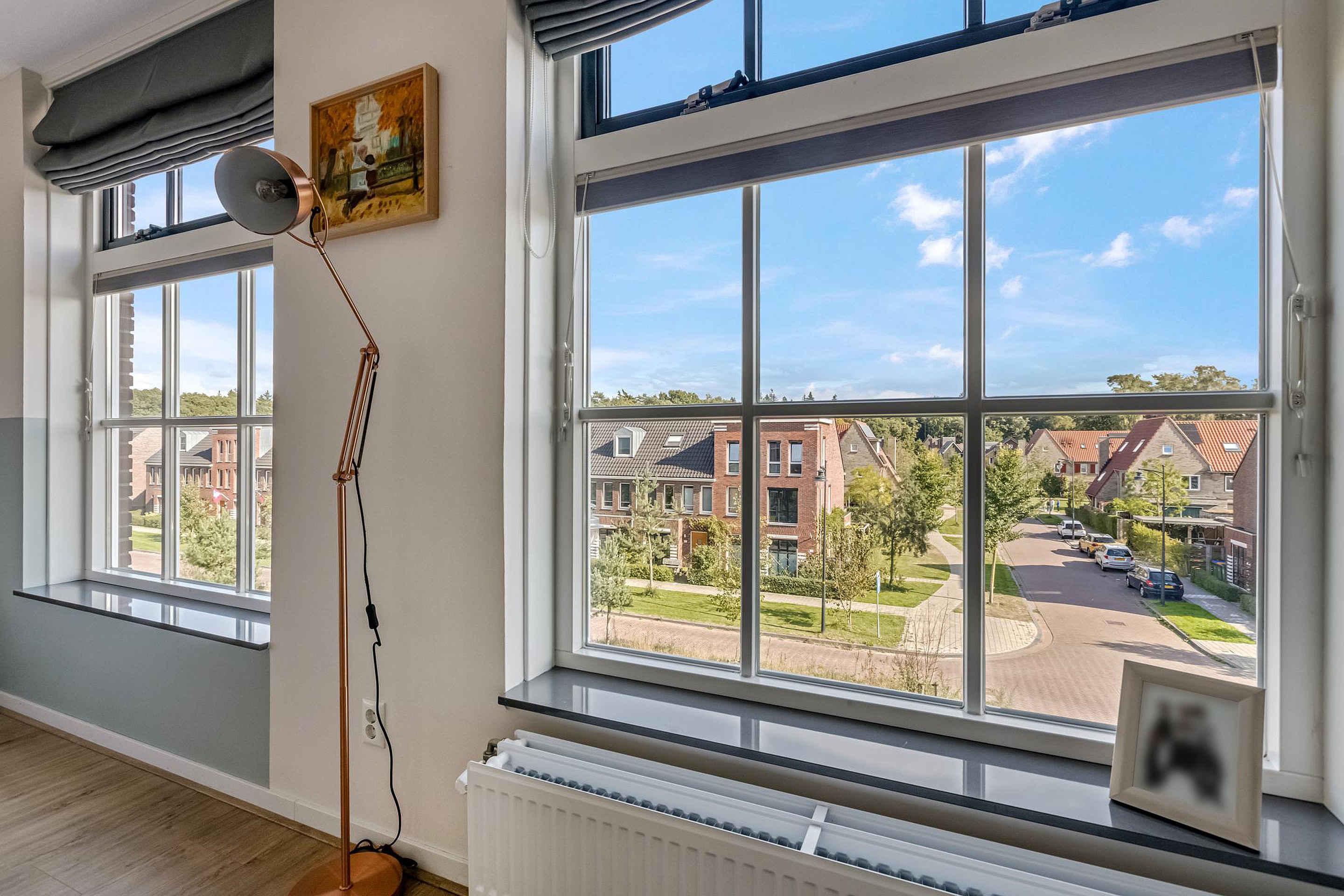 Wat deze woning uniek maakt is het vrije uitzicht naar de bosrand vanuit de keuken en de slaapkamer aan de voorzijde.