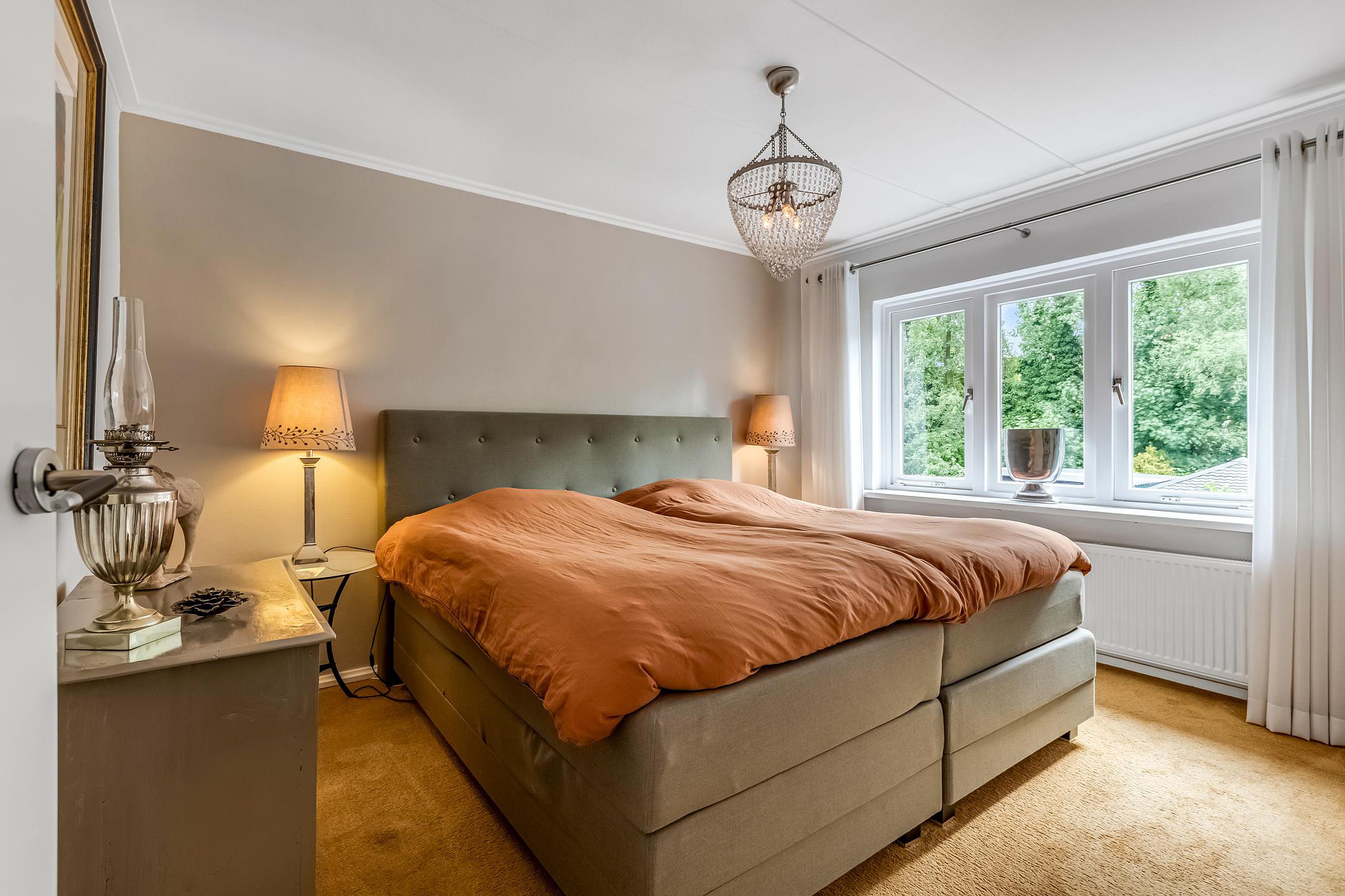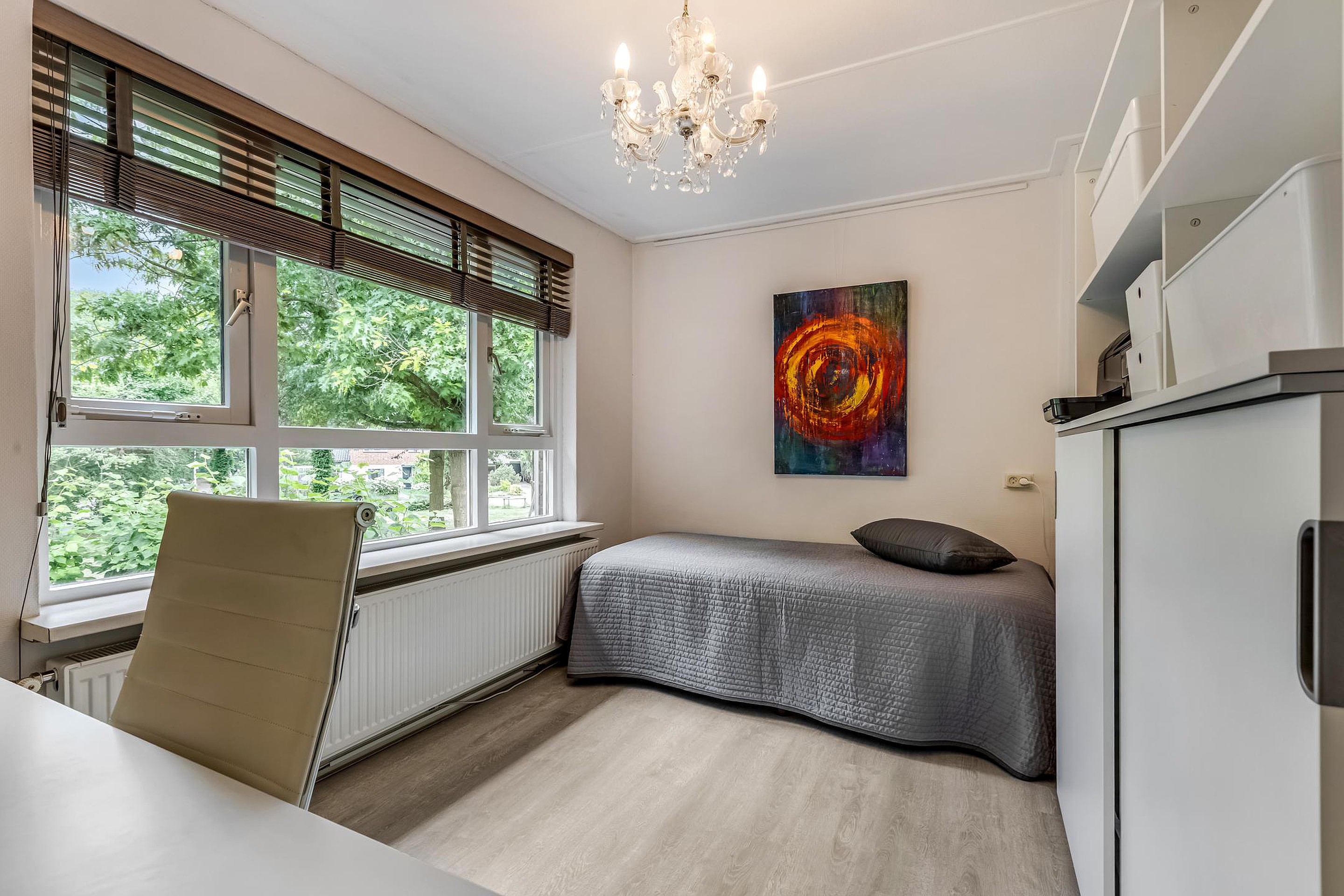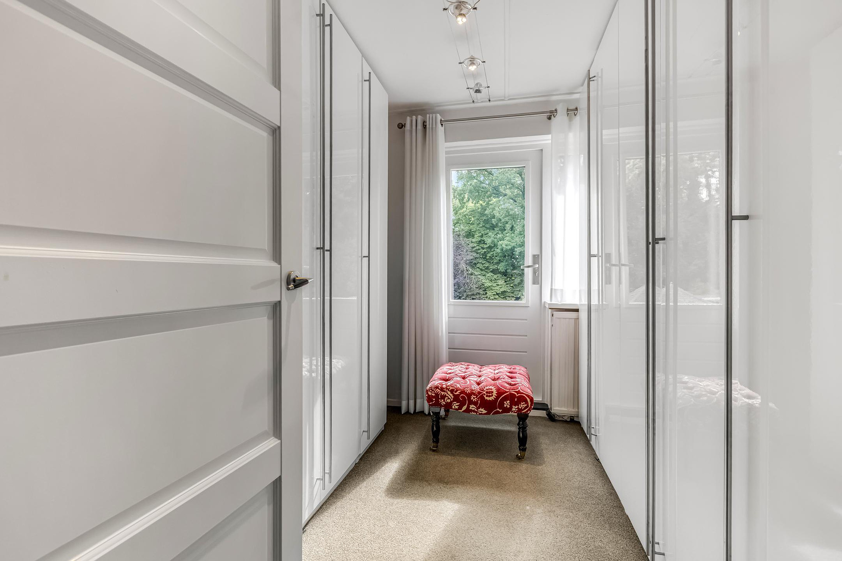 Aan de achterzijde liggen de ouderslaapkamer (ca. 12 m2) en een derde slaapkamer (ca. 5,5 m2), momenteel ingericht als inloopkast. Beide kamers zijn aan de buitenkant voorzien van rolluiken.