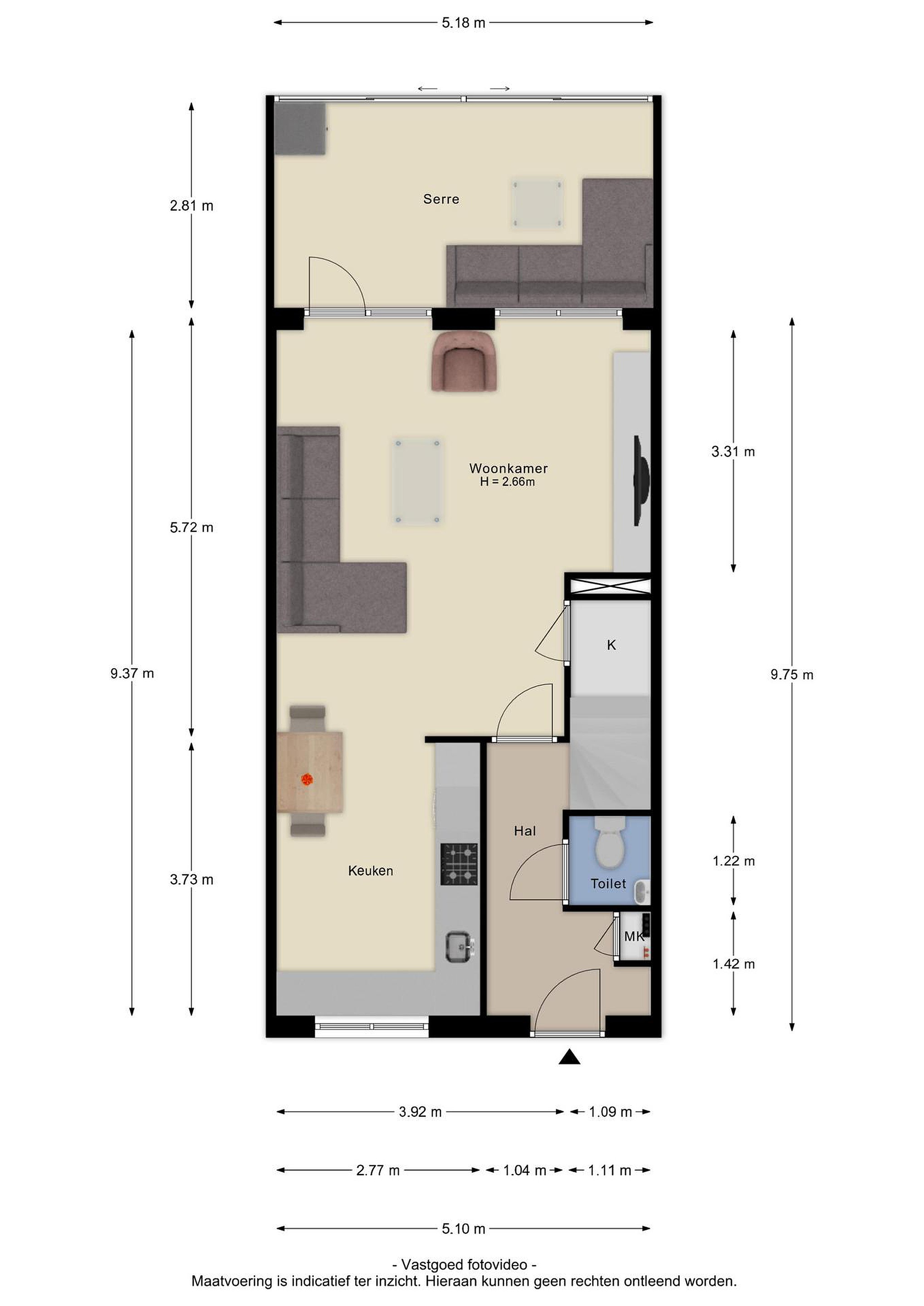 Deze informatie is door ons met de nodige zorgvuldigheid samengesteld. Onzerzijds wordt echter geen enkele aansprakelijkheid aanvaard voor enige onvolledigheid, onjuistheid of anderszins, dan wel de gevolgen daarvan. Alle opgegeven maten en oppervlakten zijn indicatief. Van toepassing zijn de Vastgoed Nederland consumenten voorwaarden.
