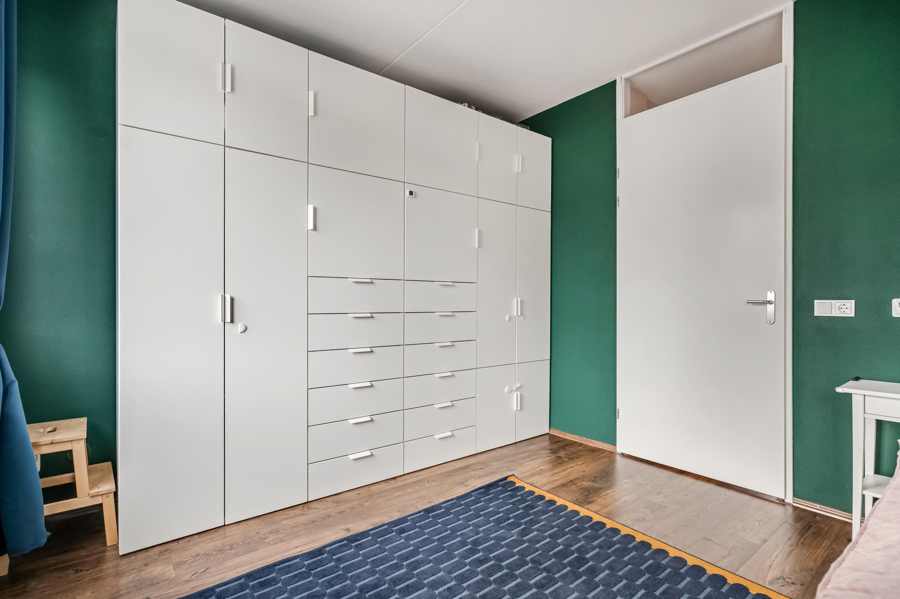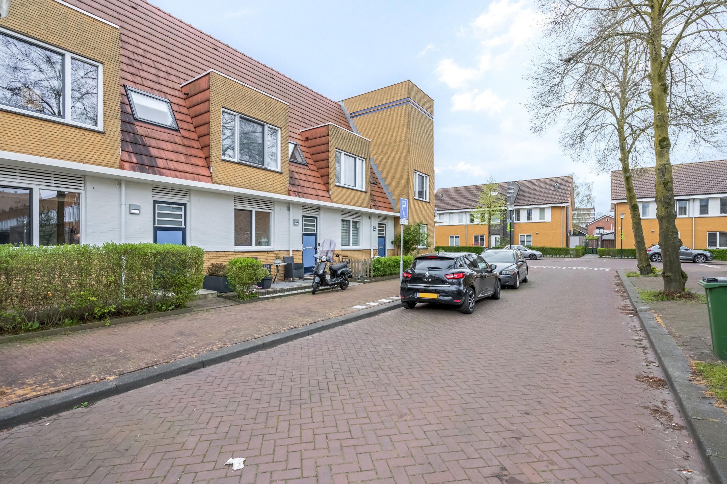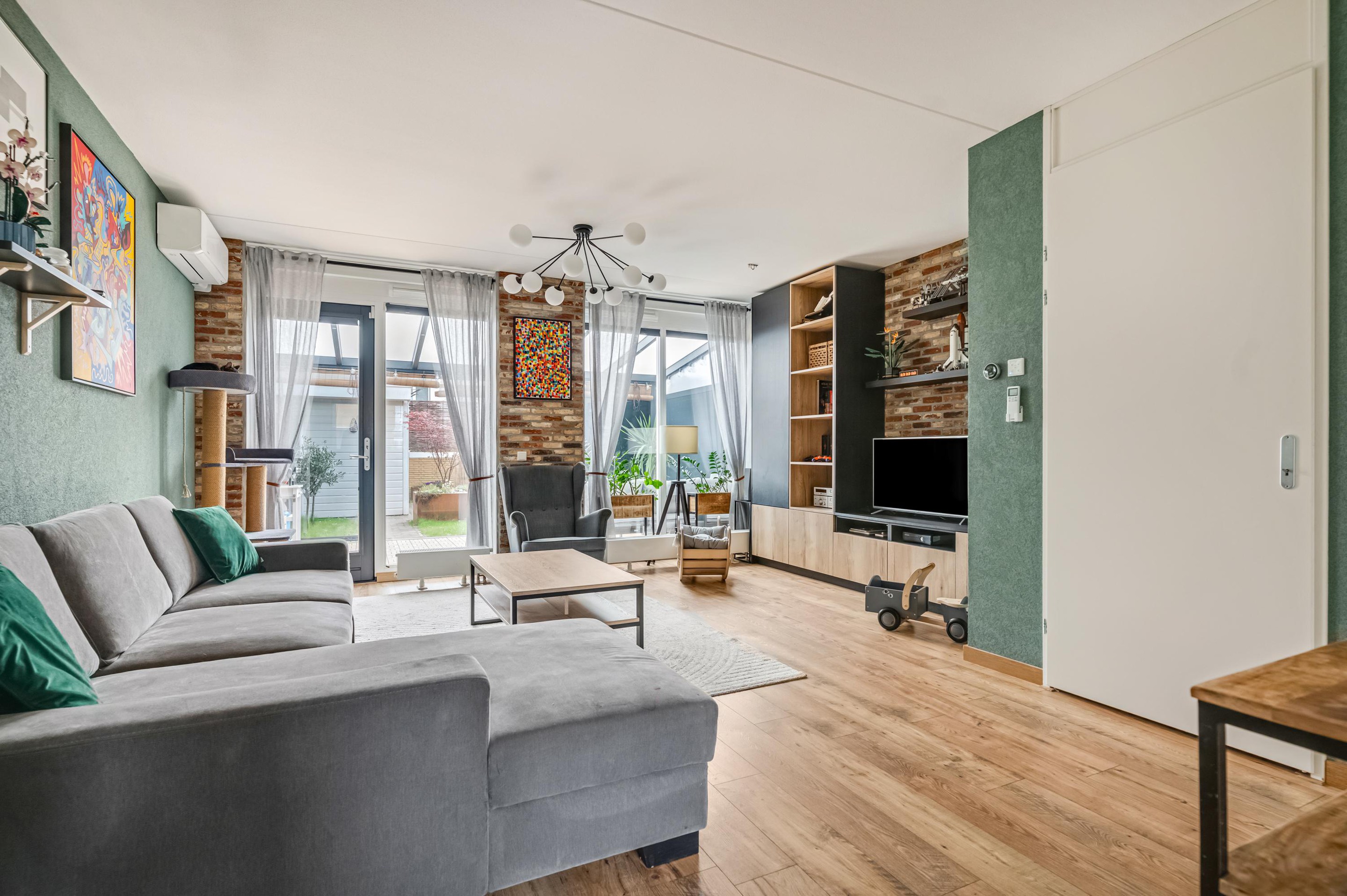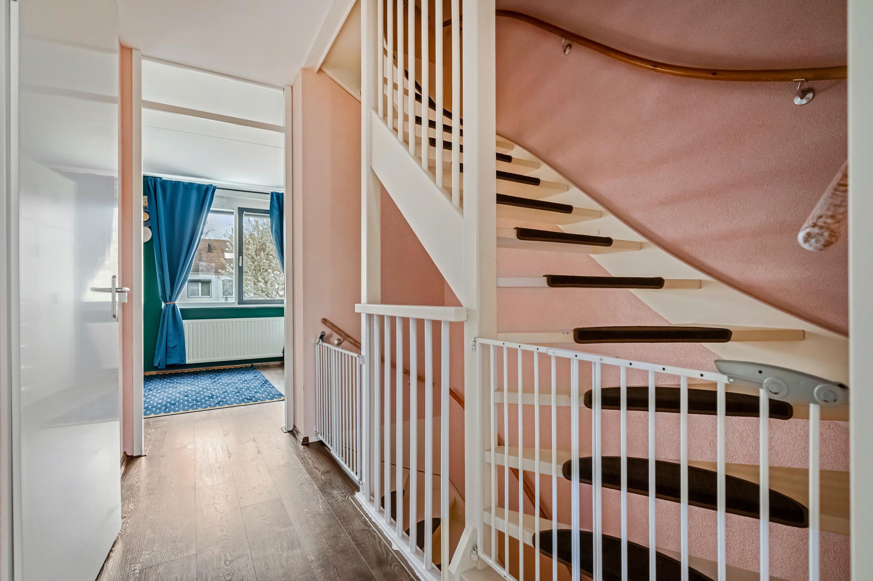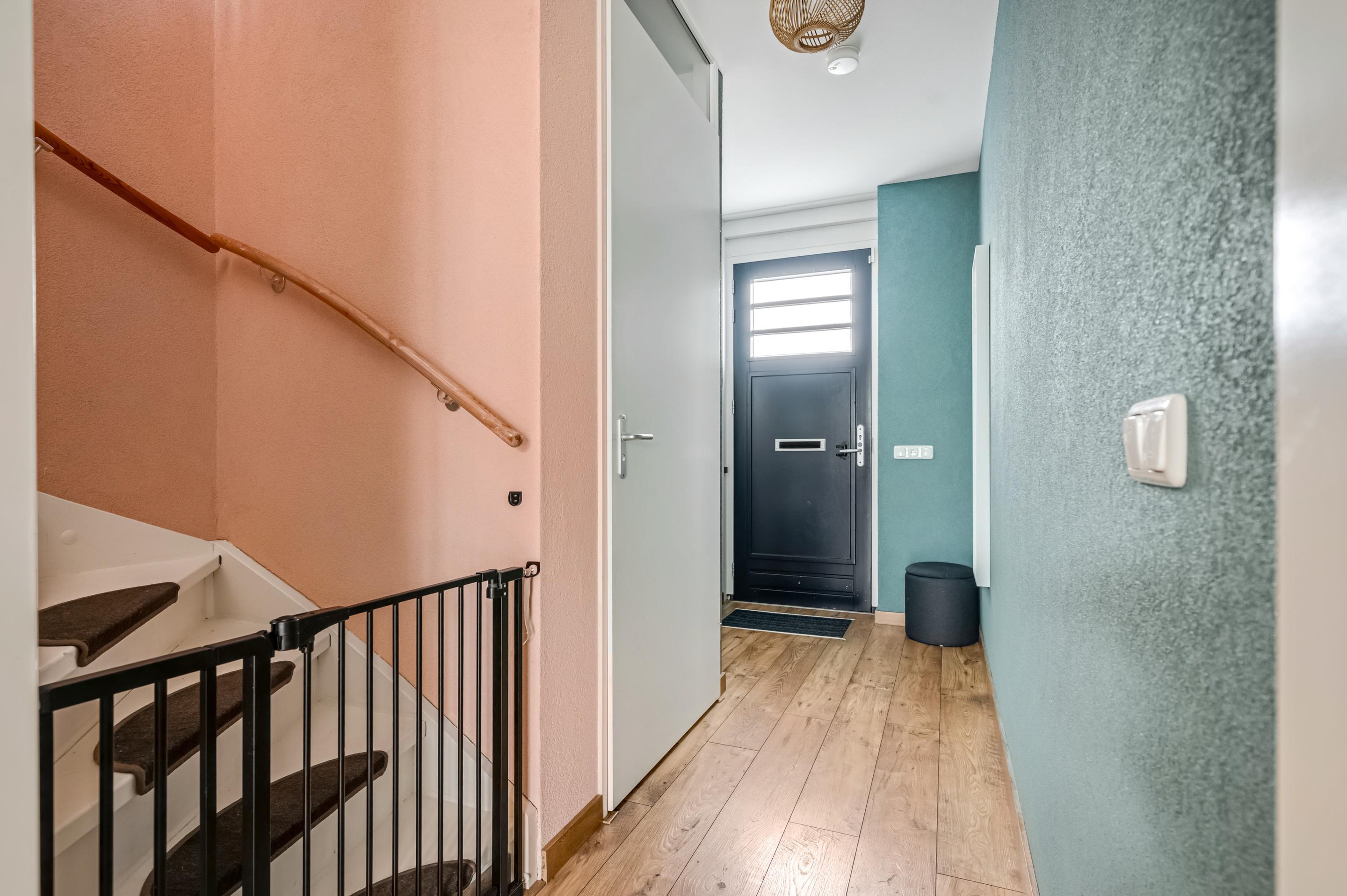 Vanaf het eerste moment voelt het goed. De stijlvolle blauwe voordeur, de strakke lijnen van het Dudok-achtige ontwerp en het groene, rustige straatbeeld zorgen direct voor een warme en uitnodigende sfeer. Dit is zo’n woning waar je je meteen thuis voelt.
