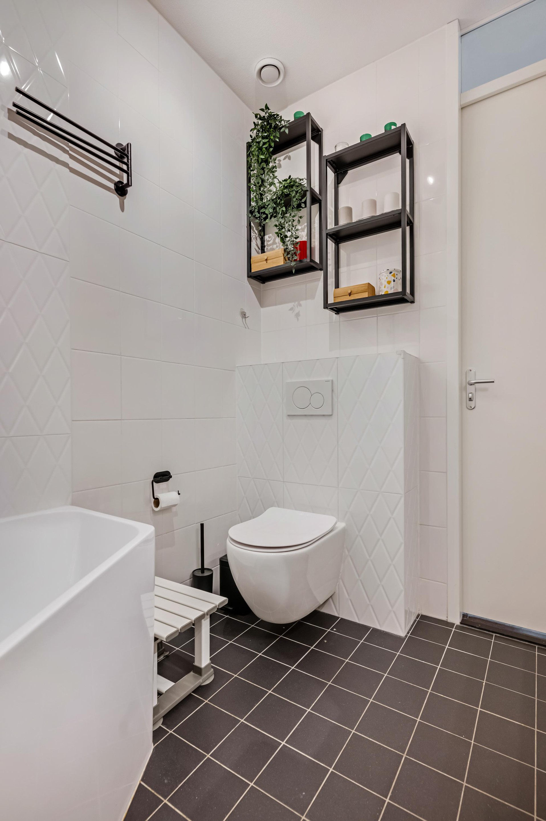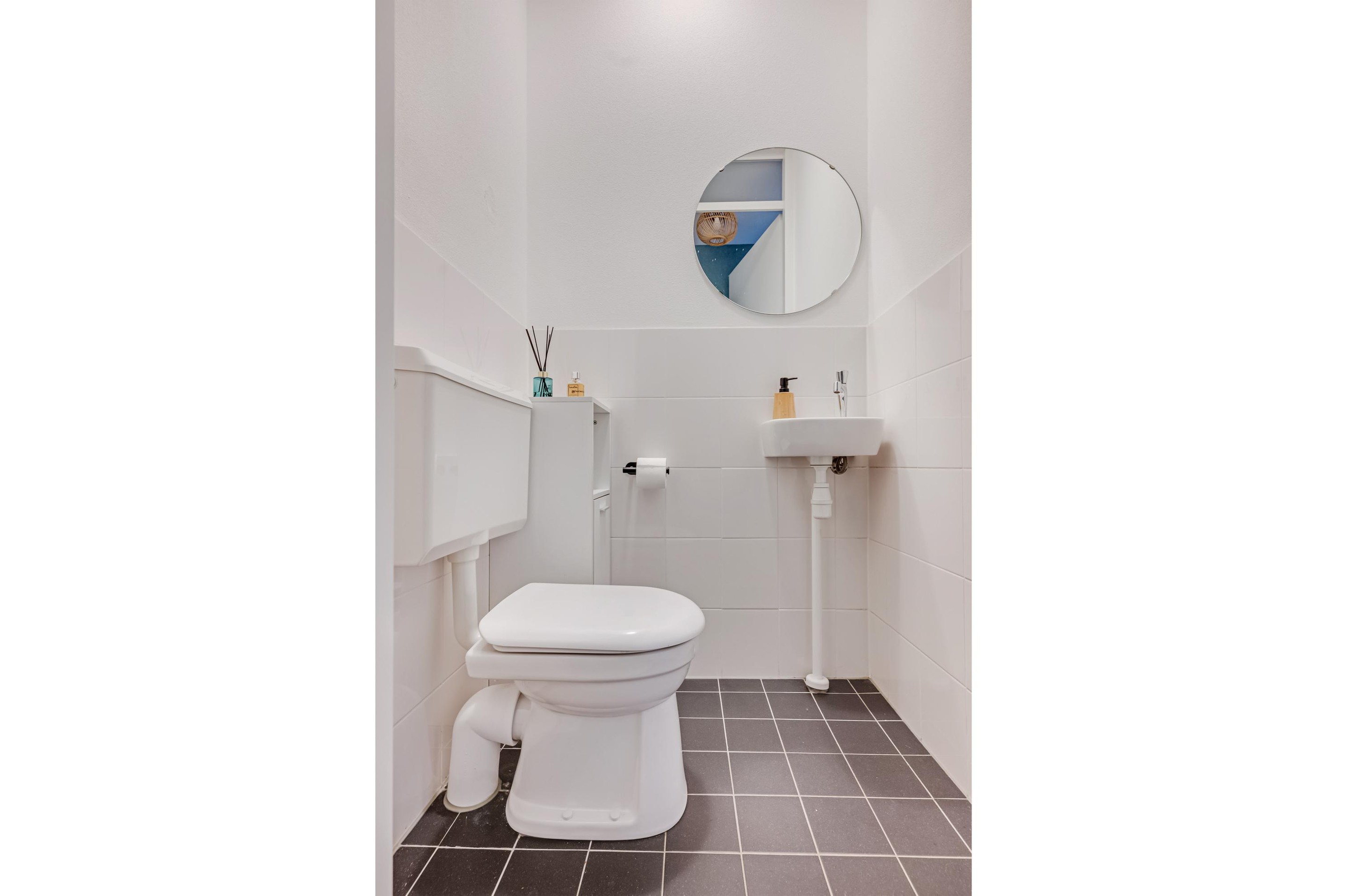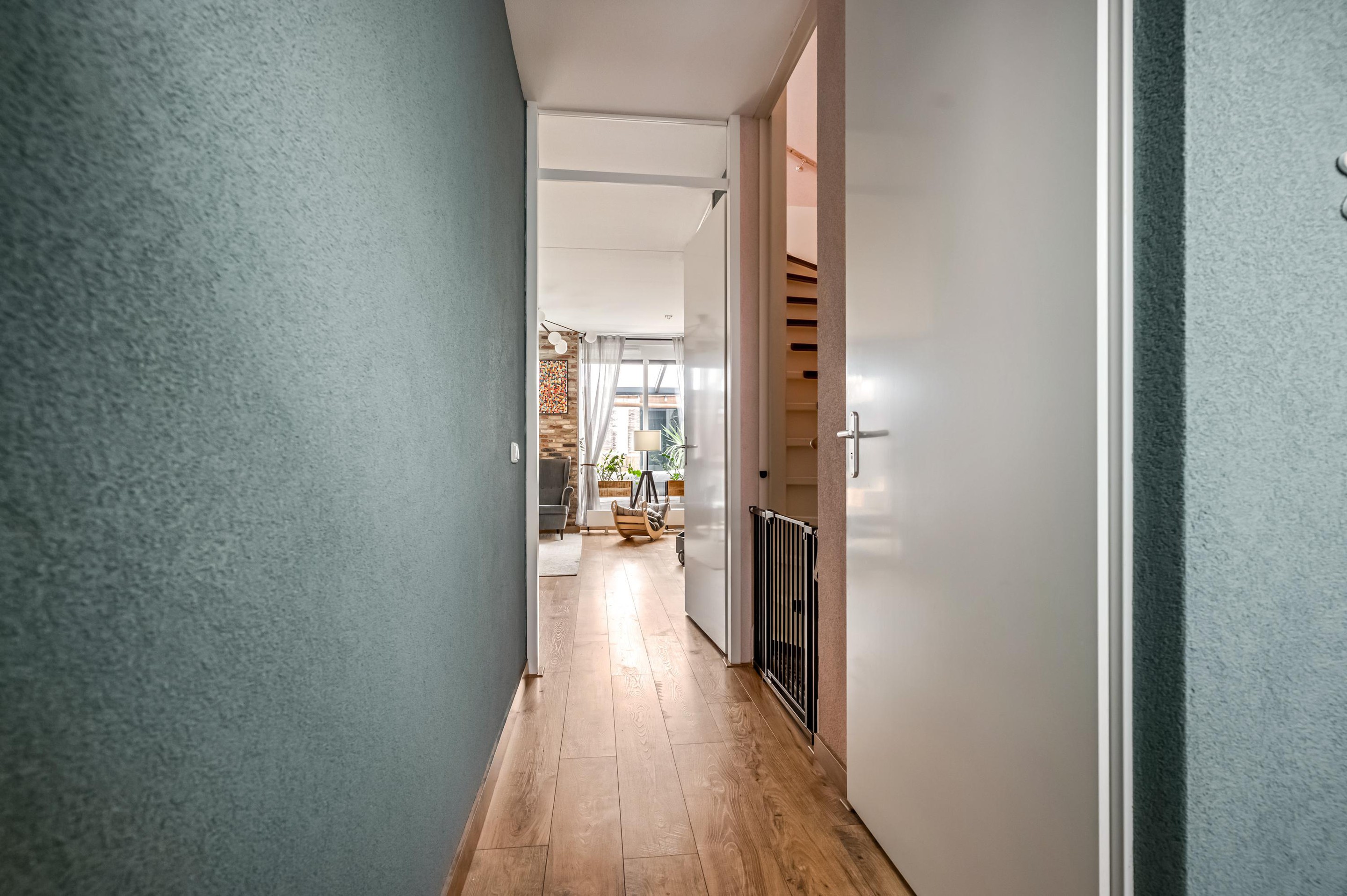 Begane grond Je komt binnen in een verzorgde en uitnodigende hal met garderobe, meterkast en een modern toilet. Direct valt de fraaie afwerking op: alles is keurig onderhouden en straalt comfort en warmte uit. De stijlvolle laminaatvloer, het kleurgebruik en het natuurlijke licht zorgen voor een fijne eerste indruk.