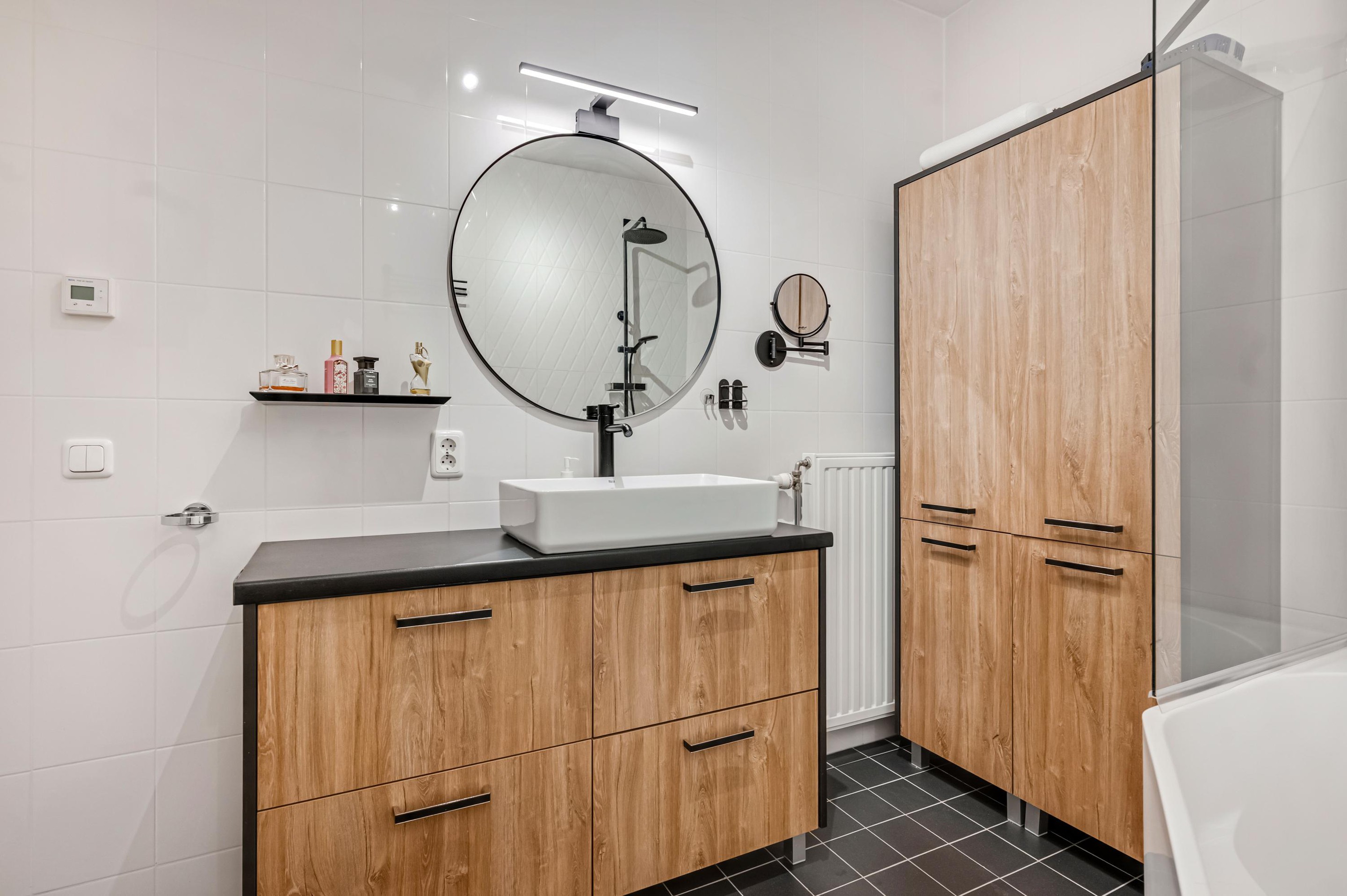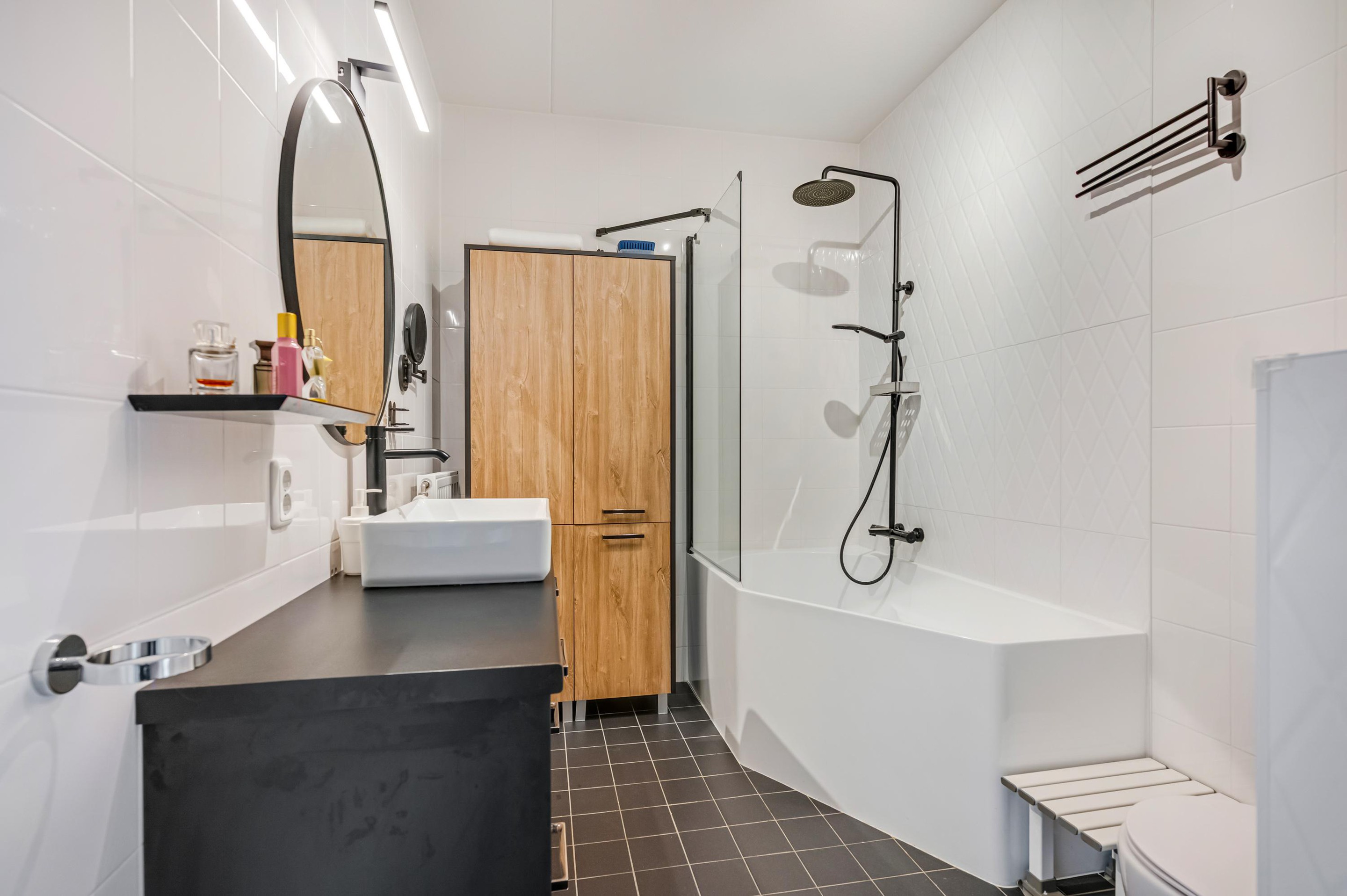 Eerste verdieping De eerste verdieping is praktisch ingedeeld. Via de overloop bereik je twee ruime slaapkamers, beide licht en netjes afgewerkt. Daarnaast is er een derde, kleinere kamer die ideaal is als babykamer, werkruimte of inloopkast.De hoofdslaapkamer is extra royaal en voorzien van airconditioning. Dankzij de rechte wanden zijn alle kamers efficiënt in te richten. De badkamer is fris en compleet, met een bad-/douchecombinatie, wastafelmeubel met spiegel en een tweede toilet. De lichte afwerking zorgt voor een ruimtelijk en verzorgd gevoel.