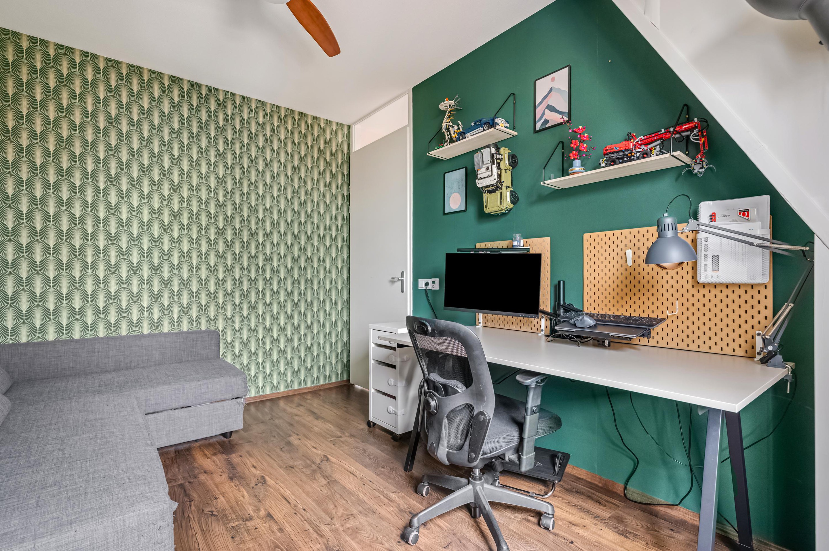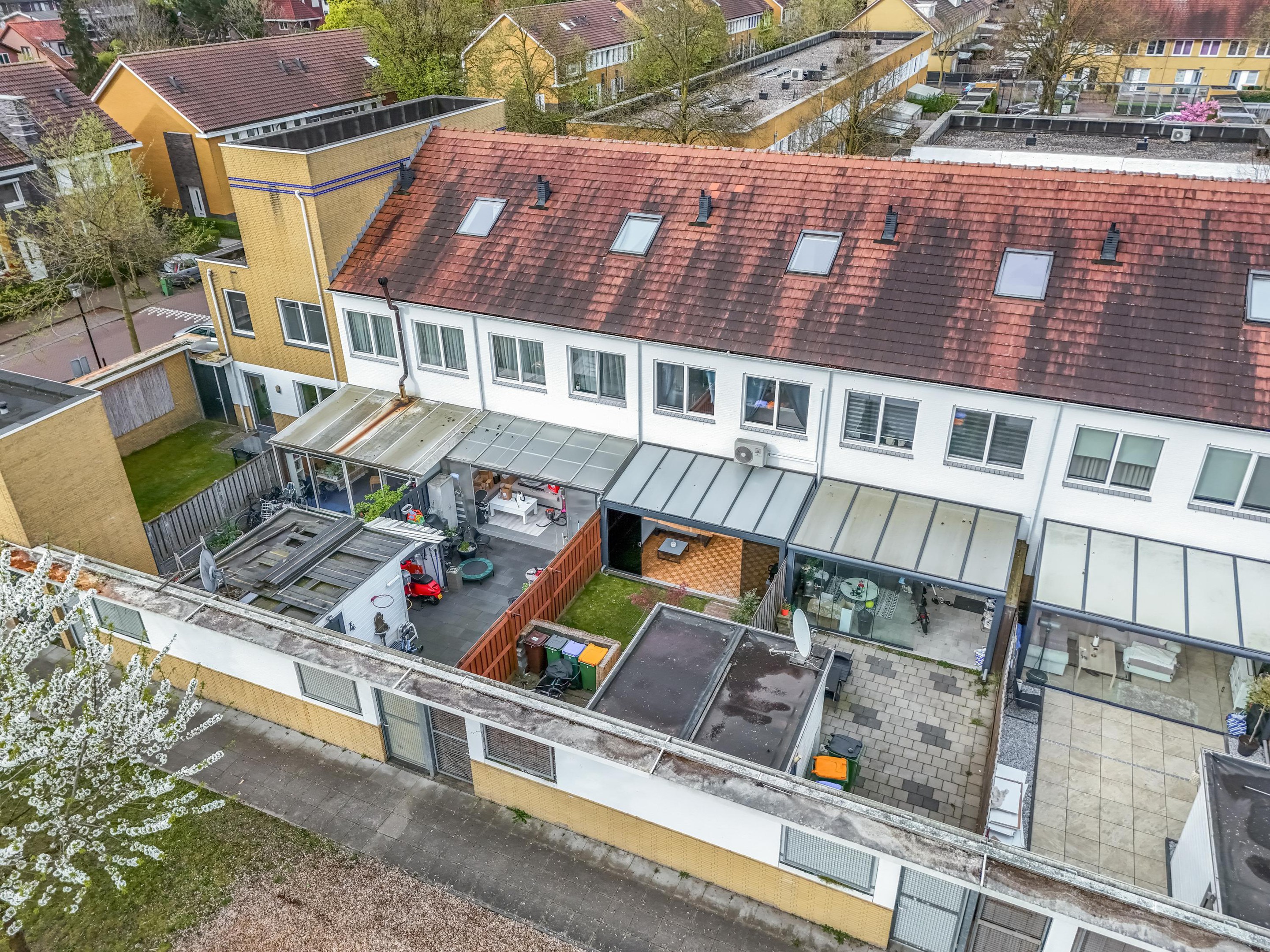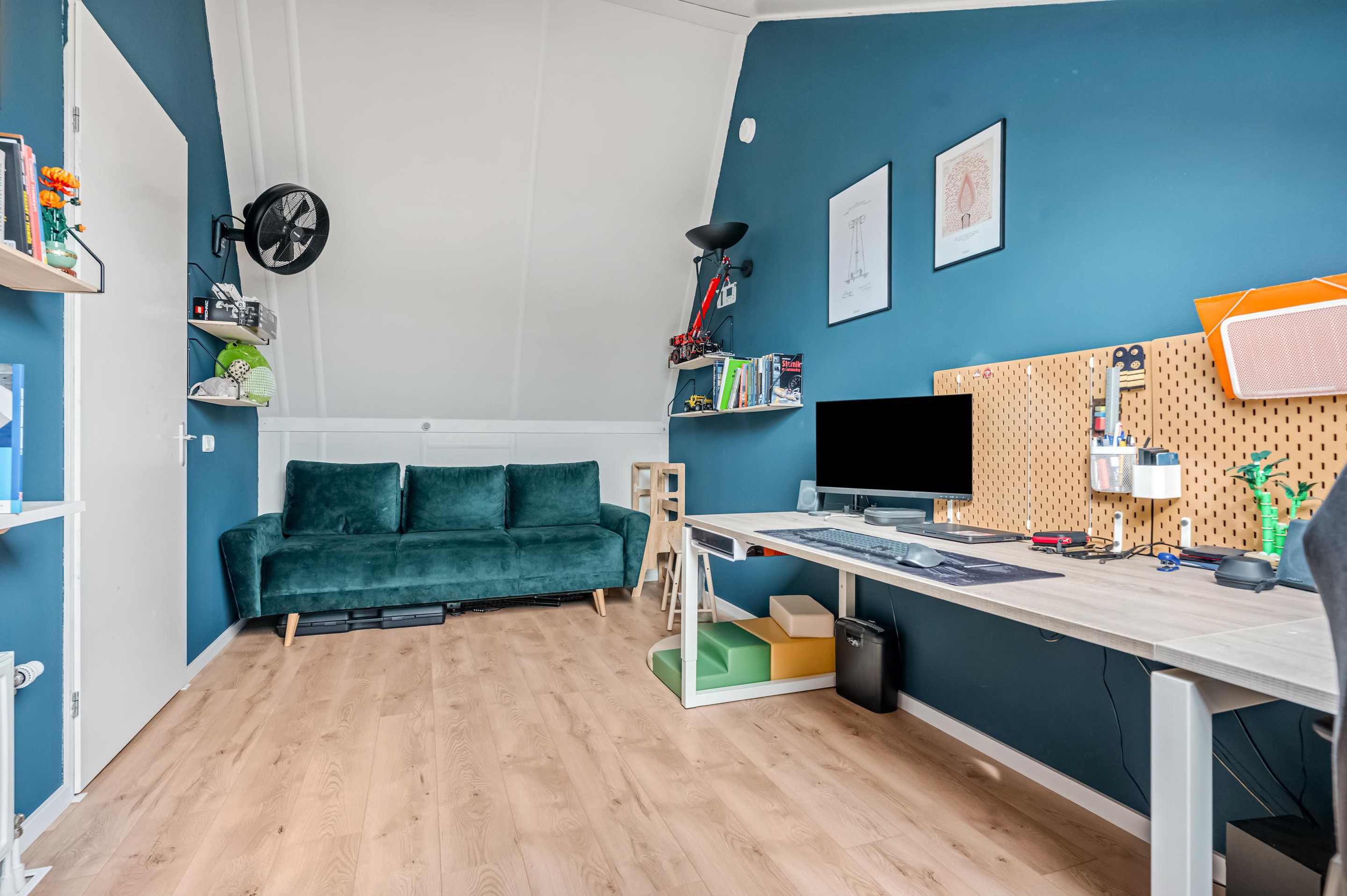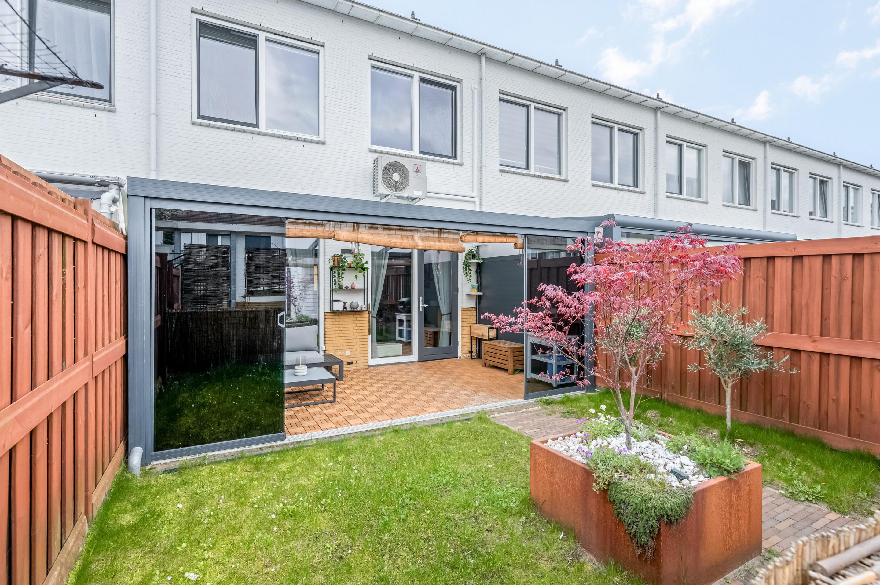 Achterin de tuin staat een houten berging, ideaal voor fietsen en opslag. Via de achterom bereik je direct de speeltuin: praktisch en perfect voor gezinnen.