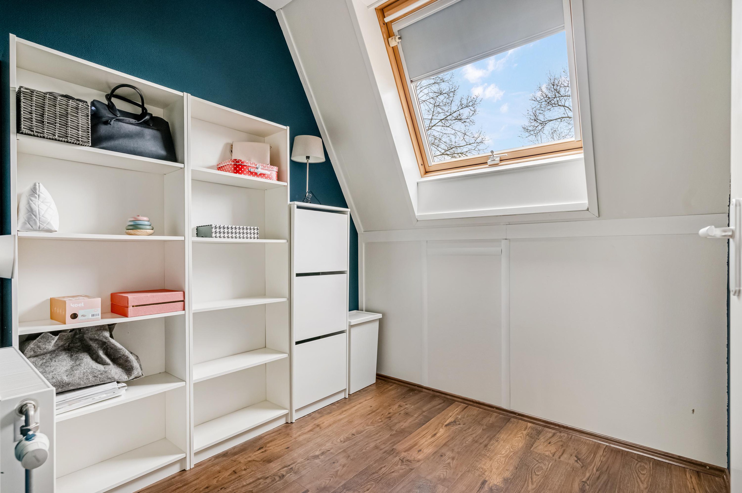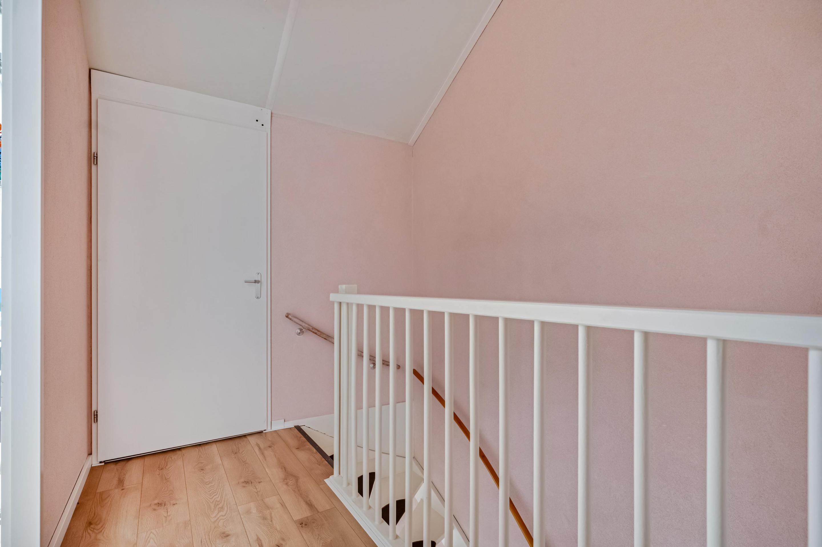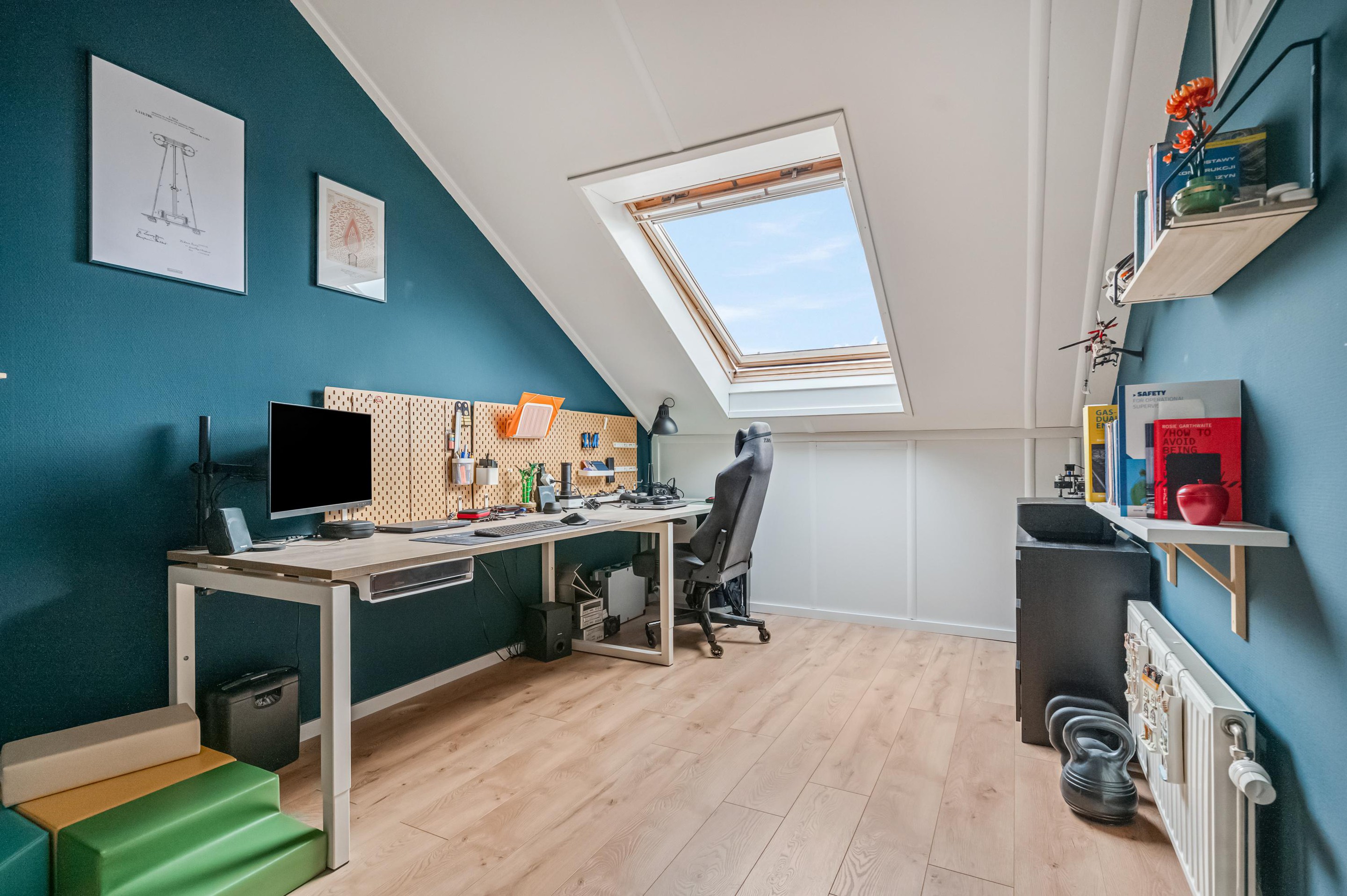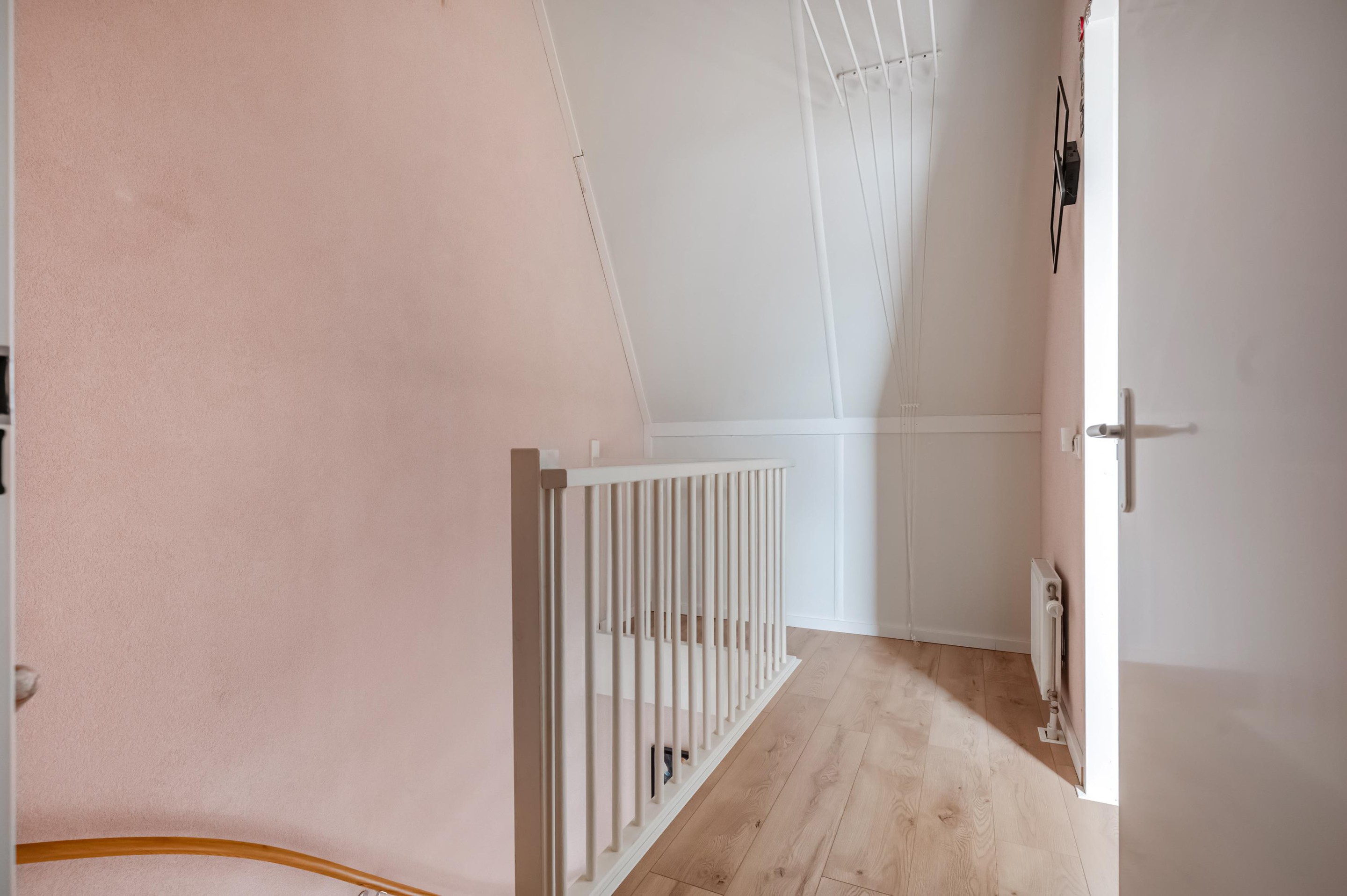 Tweede verdieping Overloop met toegang tot de technische ruimte. Tevens is hier een ruime vierde slaapkamer gerealiseerd met een dakraam.