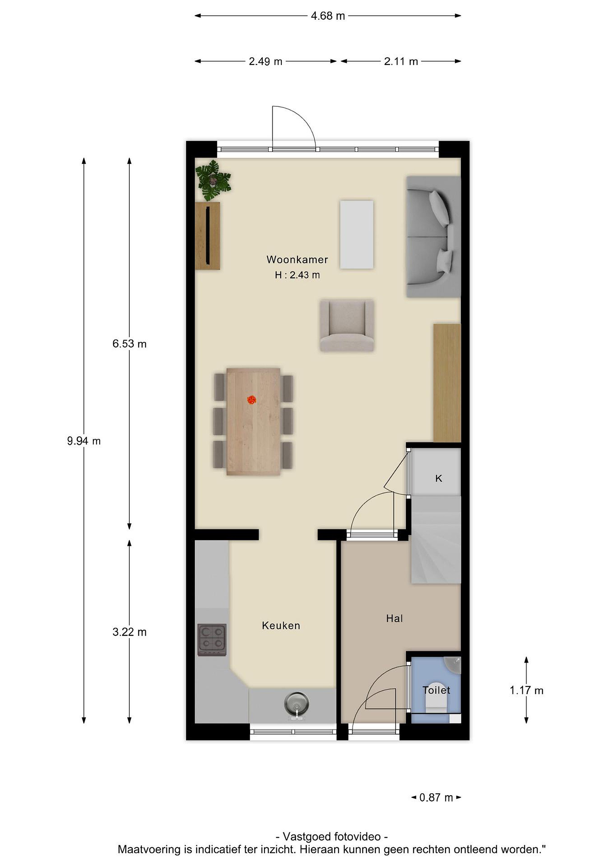 Deze informatie is door ons met de nodige zorgvuldigheid samengesteld. Onzerzijds wordt echter geen enkele aansprakelijkheid aanvaard voor enige onvolledigheid, onjuistheid of anderszins, dan wel de gevolgen daarvan. Alle opgegeven maten en oppervlakten zijn indicatief. Van toepassing zijn de Vastgoed Nederland consumenten voorwaarden.