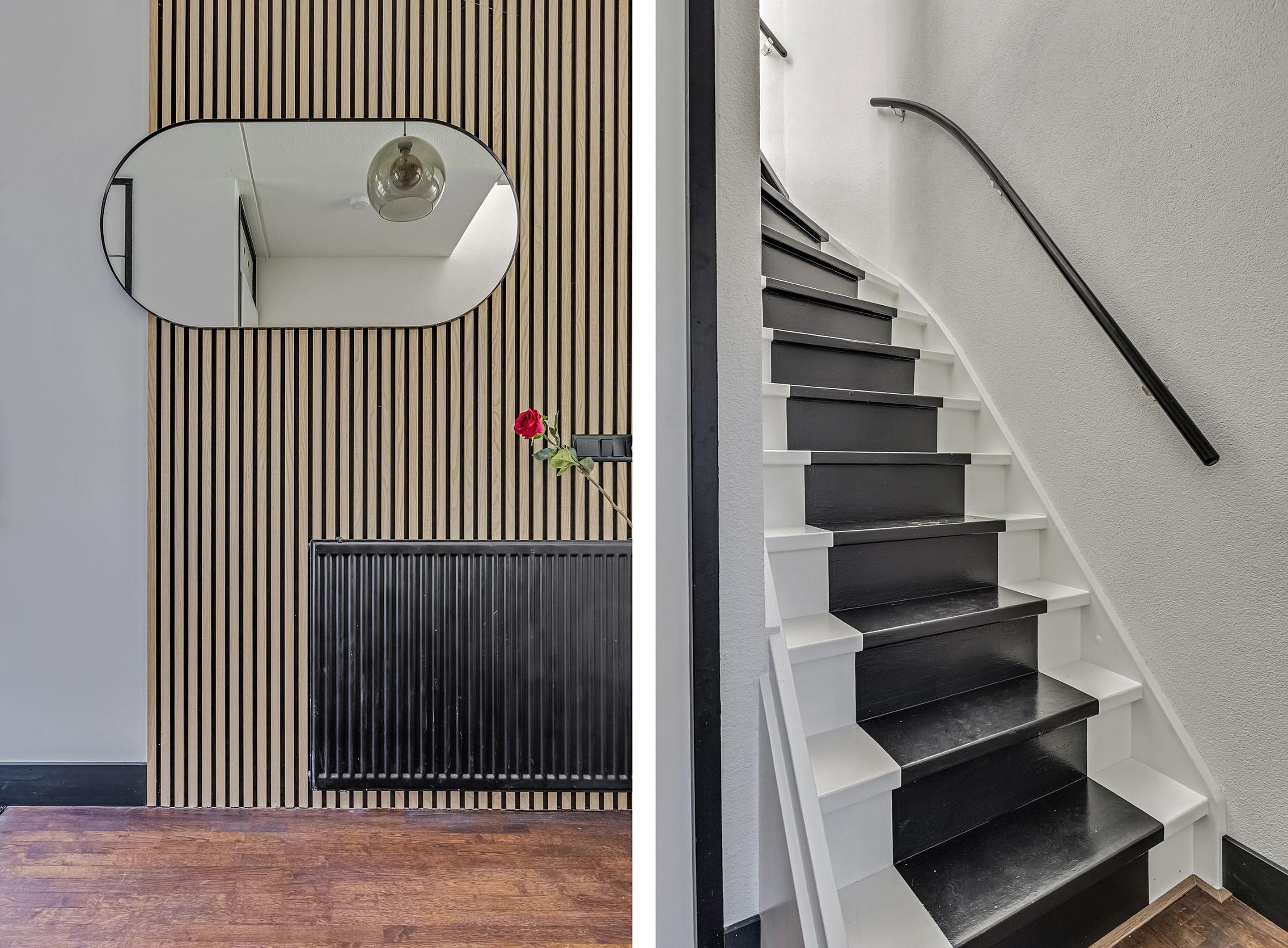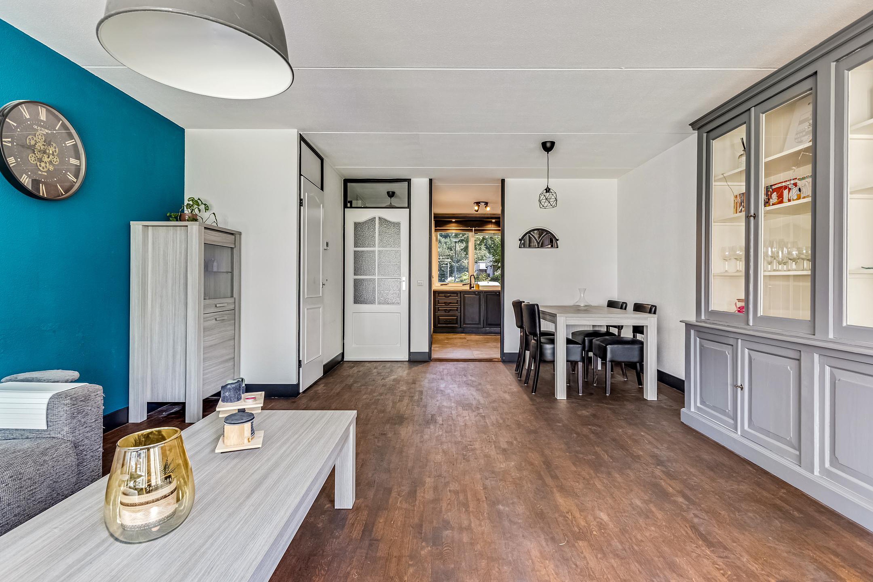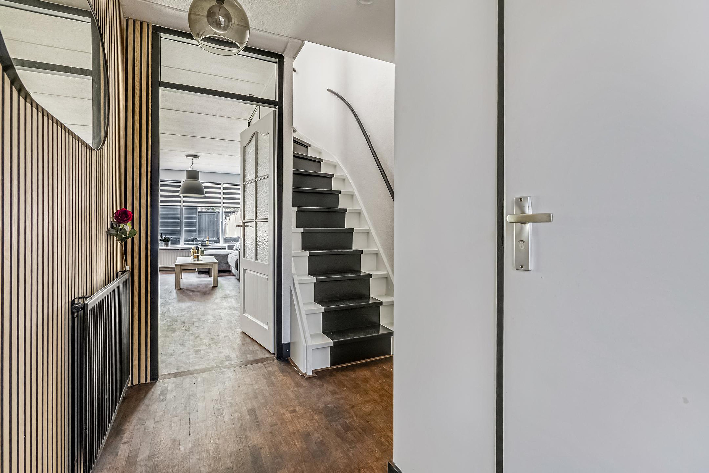 Begane grond Entree, hal met sfeervol houten wandpaneel , toiletruimte (2025)met zwevend toilet, fonteintje en ventilatie, meterkast en trapopgang naar de 1e verdieping. De halfopen ruime keuken is aan de voorkant van de woning gelegen en heeft recent een update gehad qua blad, gootsteen, tegels en wand. De keuken is voorzien van een 4 zones inductiekookplaat (ca 2022), afzuigkap, koel/vriescombinatie (ca 2020), combi-magnetron, vaatwasser (ca. 2021) en voldoende opbergruimte. Royale woonkamer met handige trapkast en een deur naar de achtertuin.