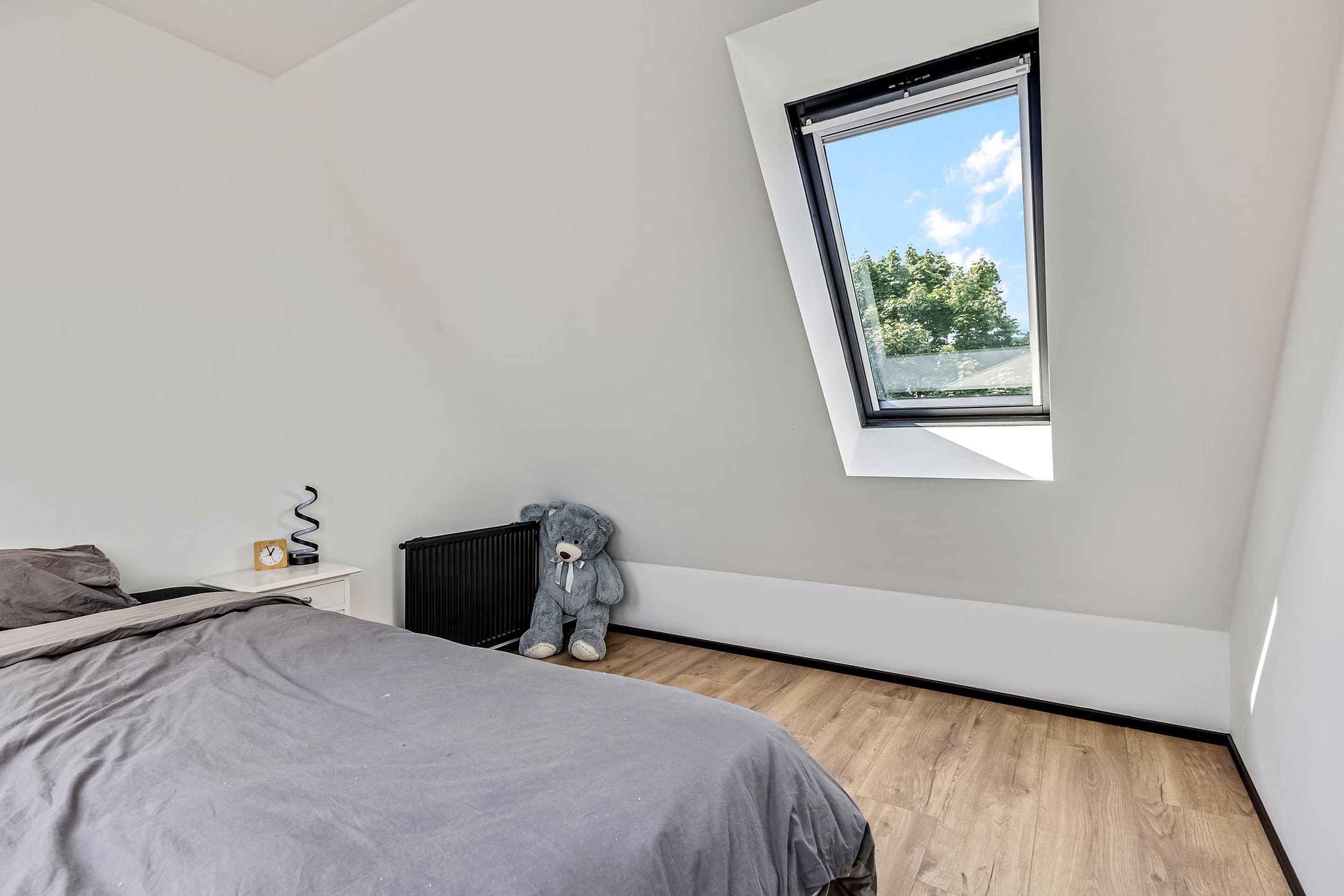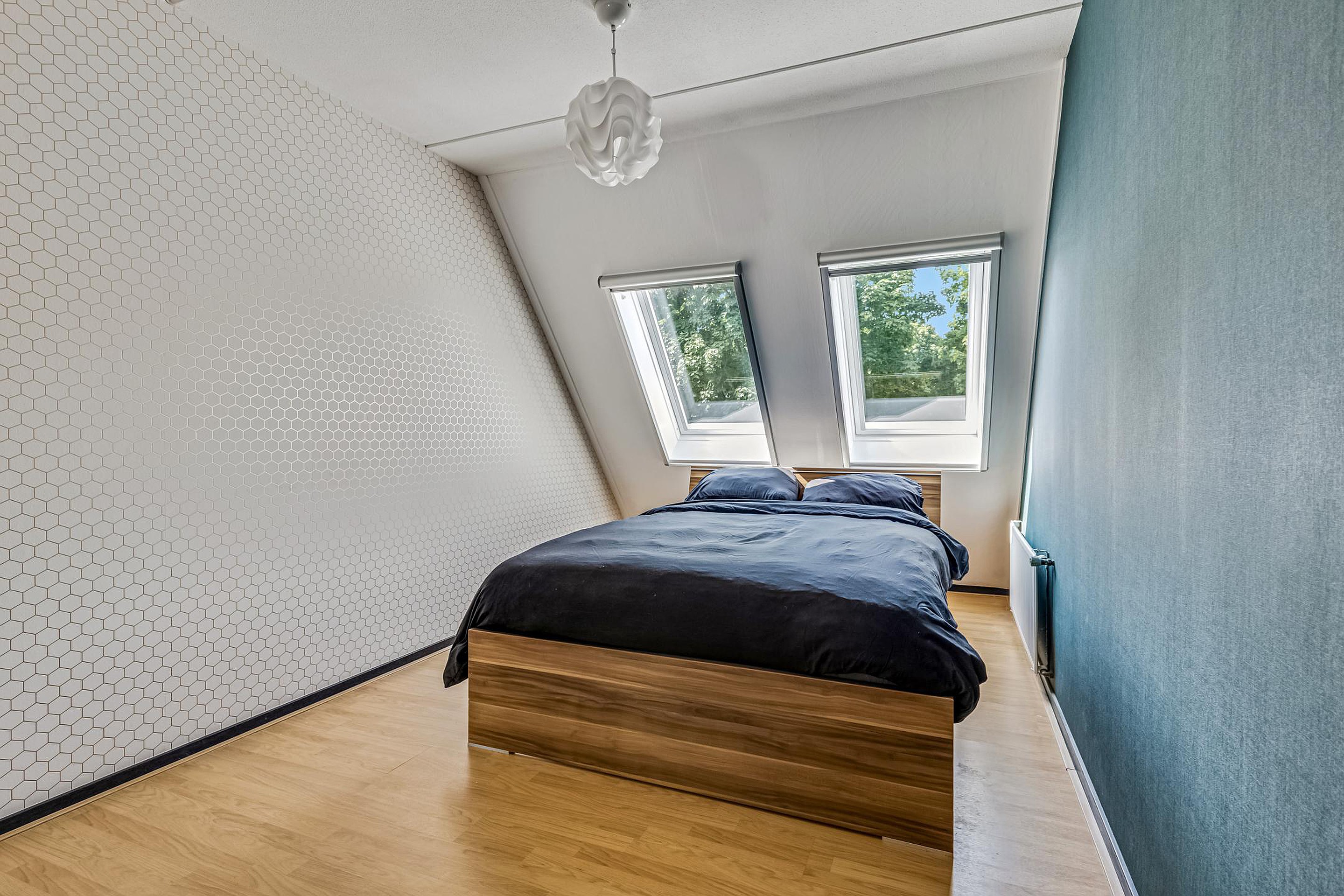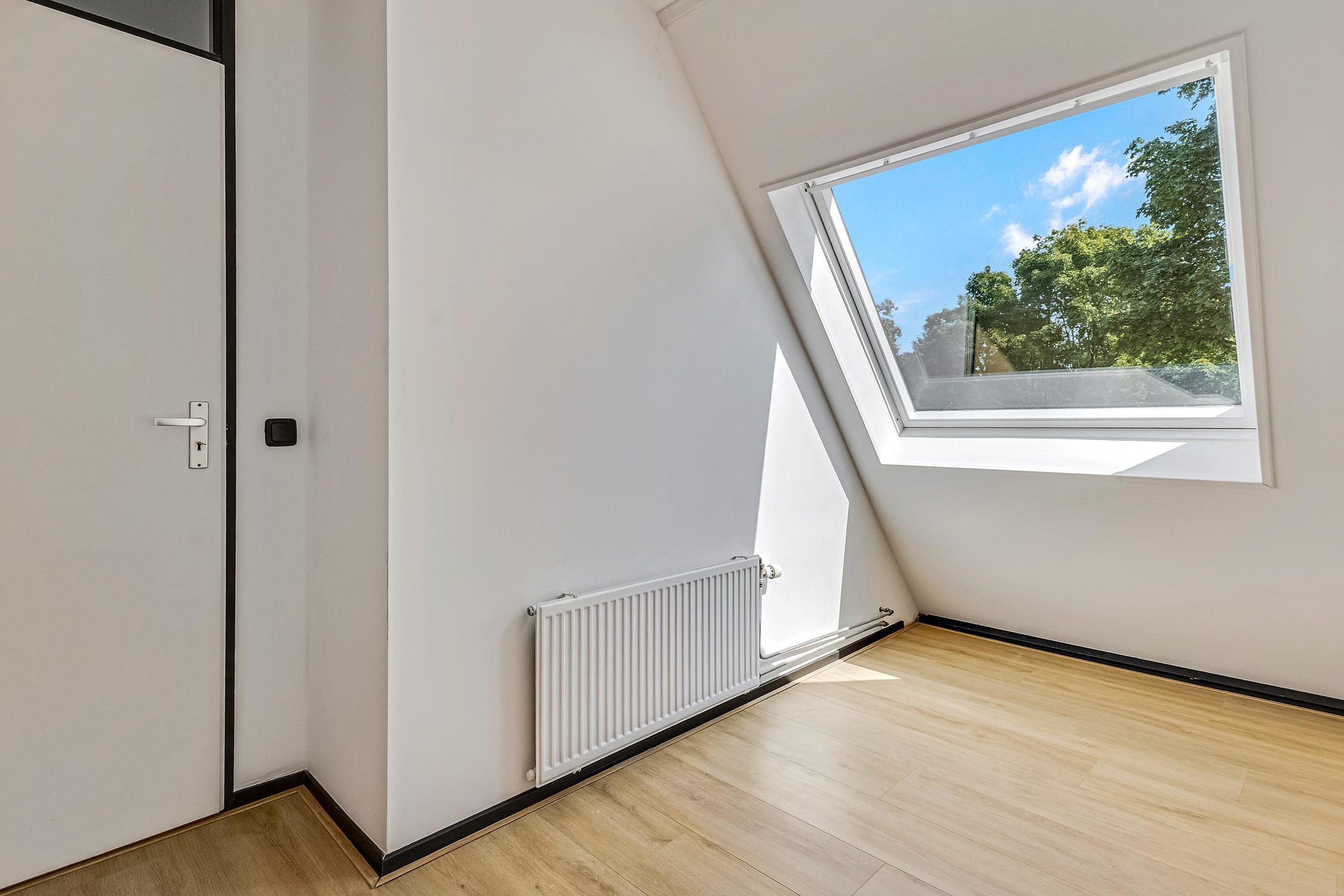 Vierde slaapkamer met dakraam. Deze kamer kan als slaapkamer dienen maar bijvoorbeeld ook als werk- of hobbykamer. De zolder is tevens in 2025 geheel na geïsoleerd.