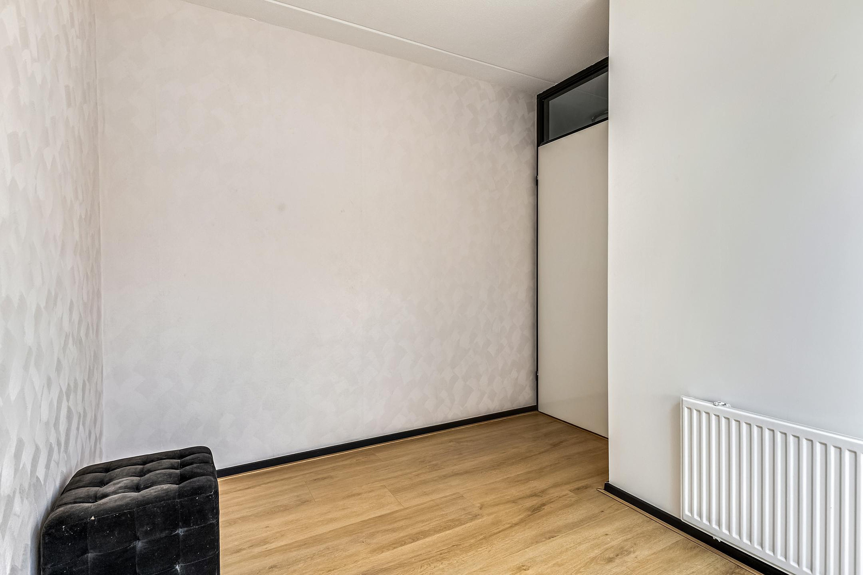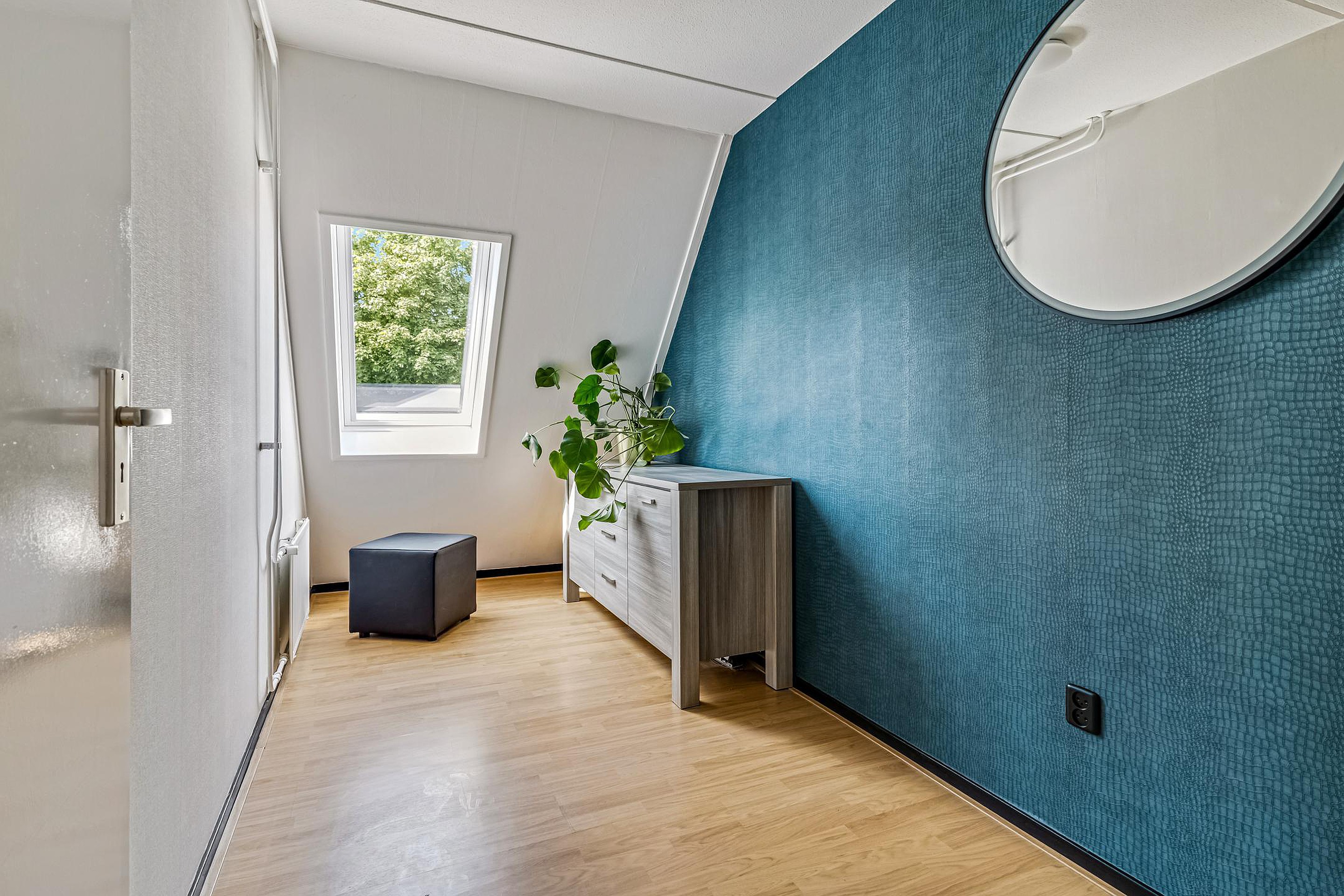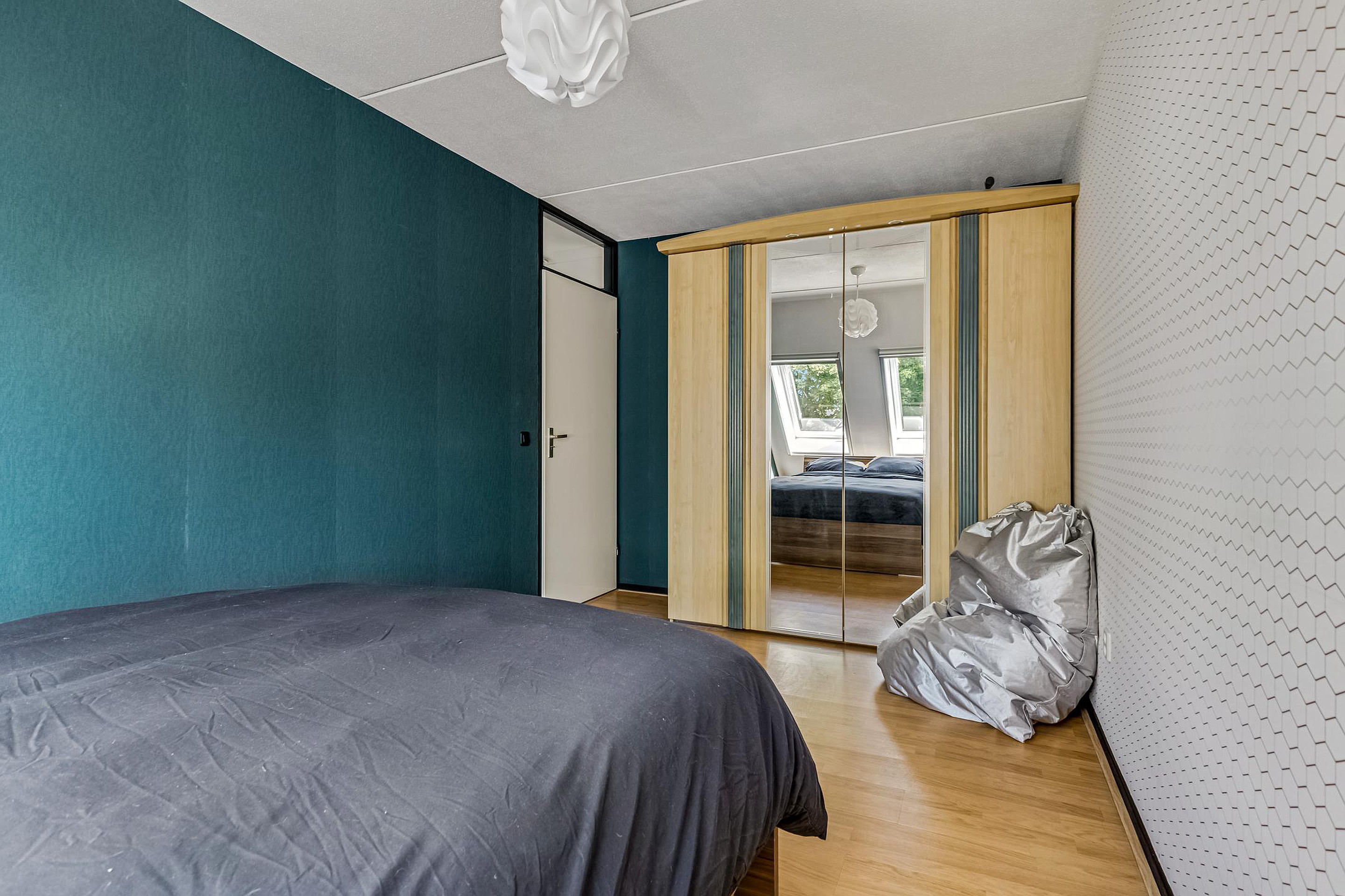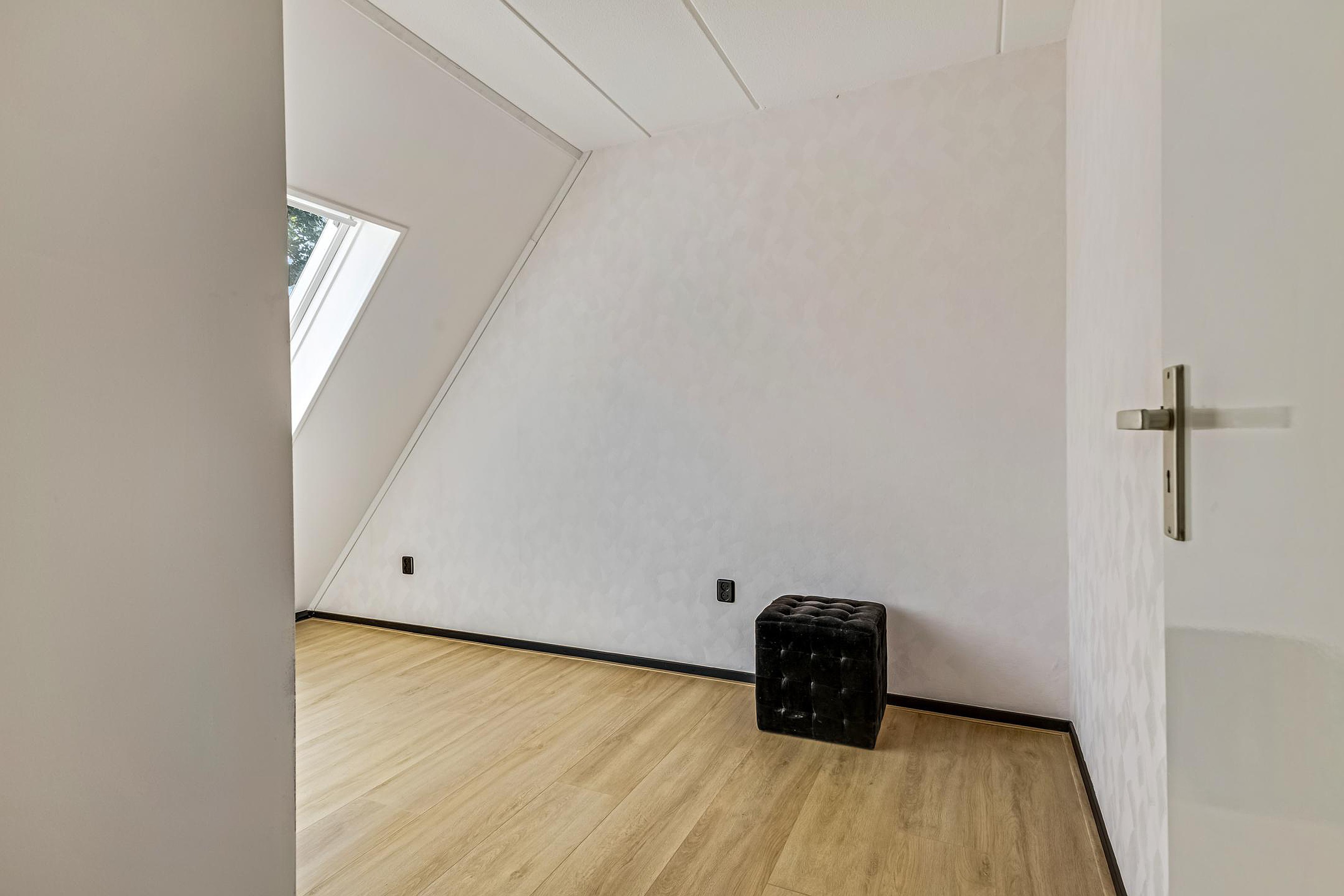 Vierde slaapkamer met dakraam. Deze kamer kan als slaapkamer dienen maar bijvoorbeeld ook als werk- of hobbykamer. De zolder is tevens in 2025 geheel na geïsoleerd.