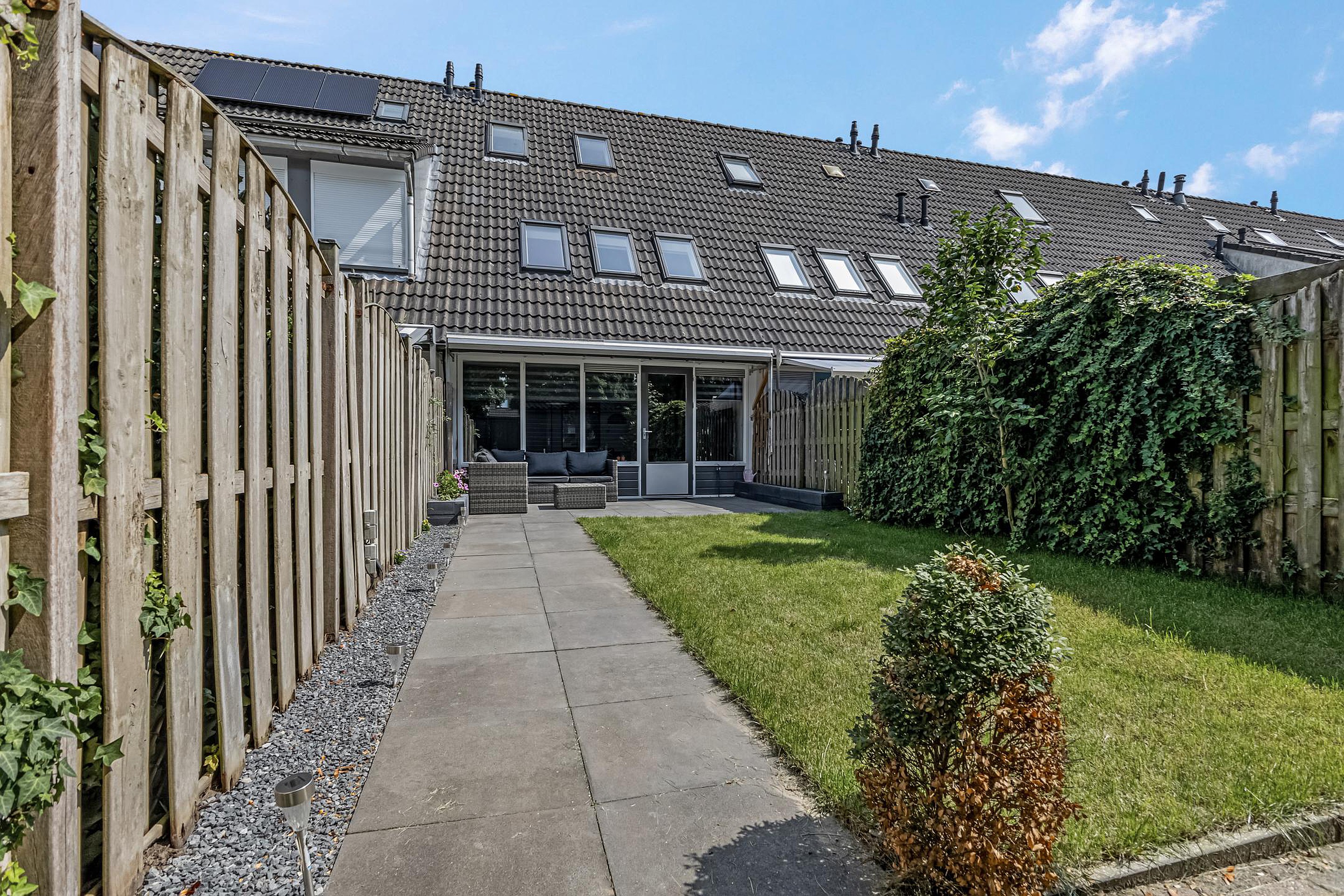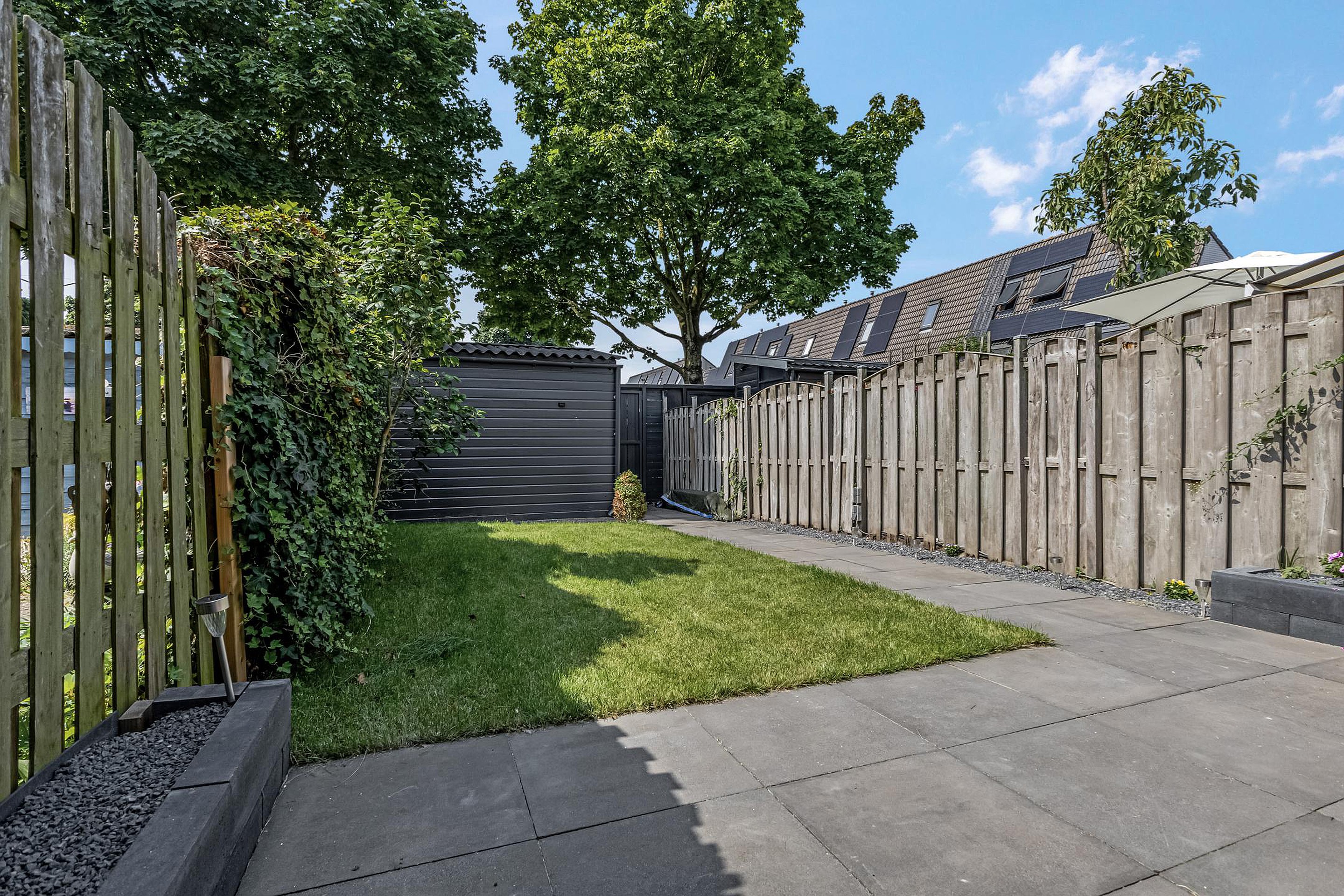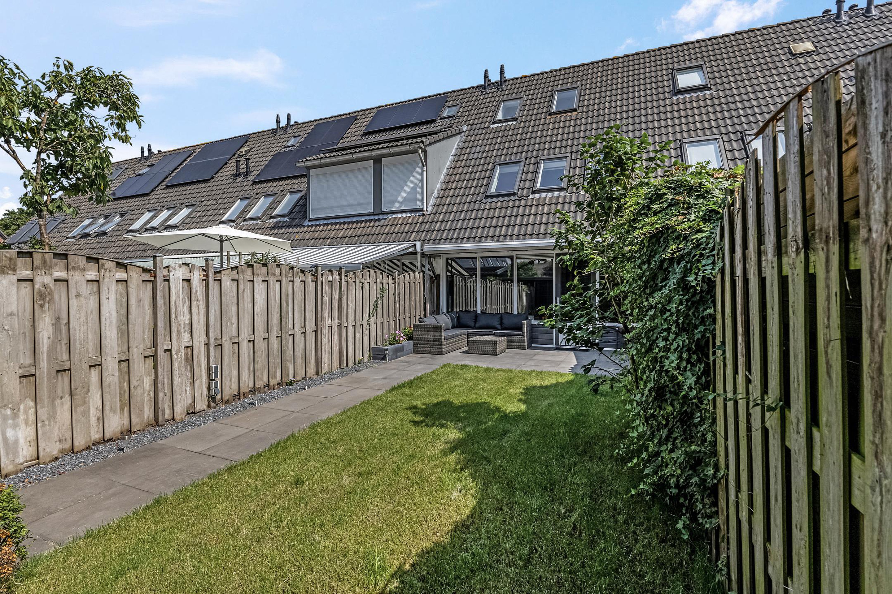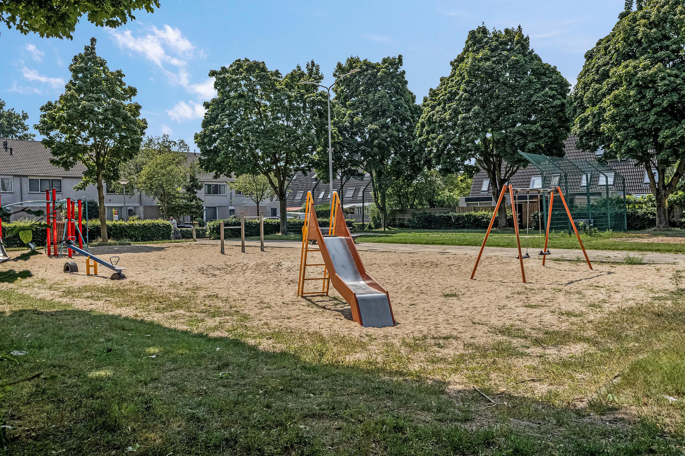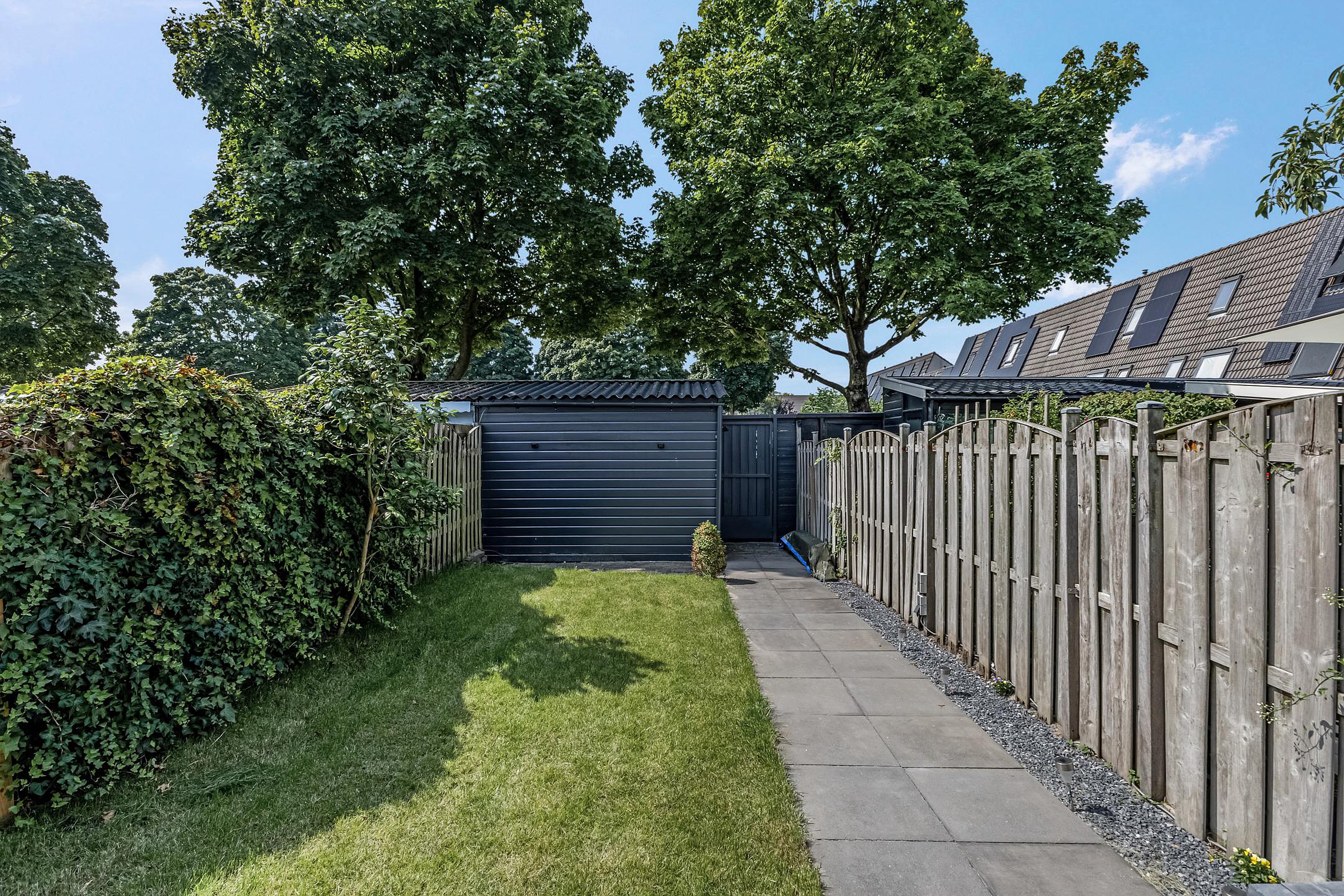 Tuin De achtertuin biedt veel privacy en is voorzien van een achterom. Achter de woning is een groot speelveld met speeltuin gelegen.