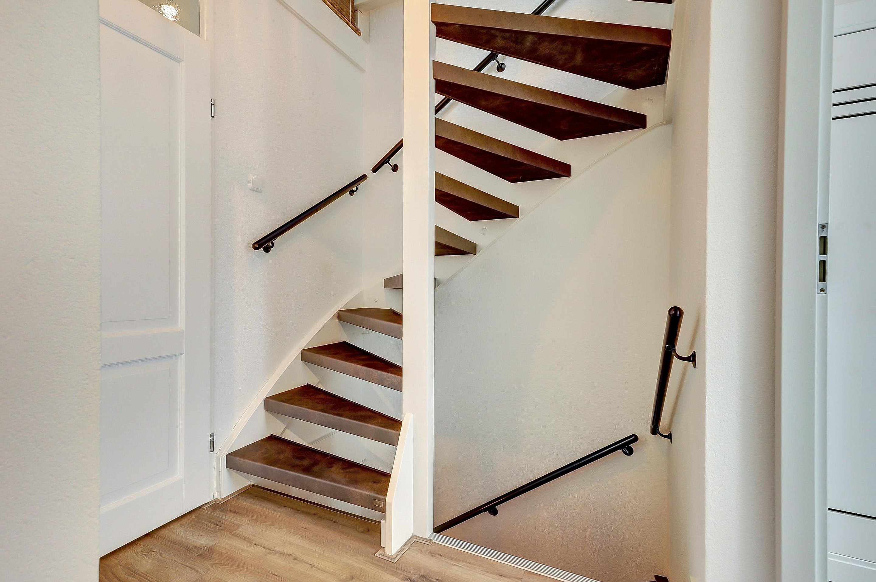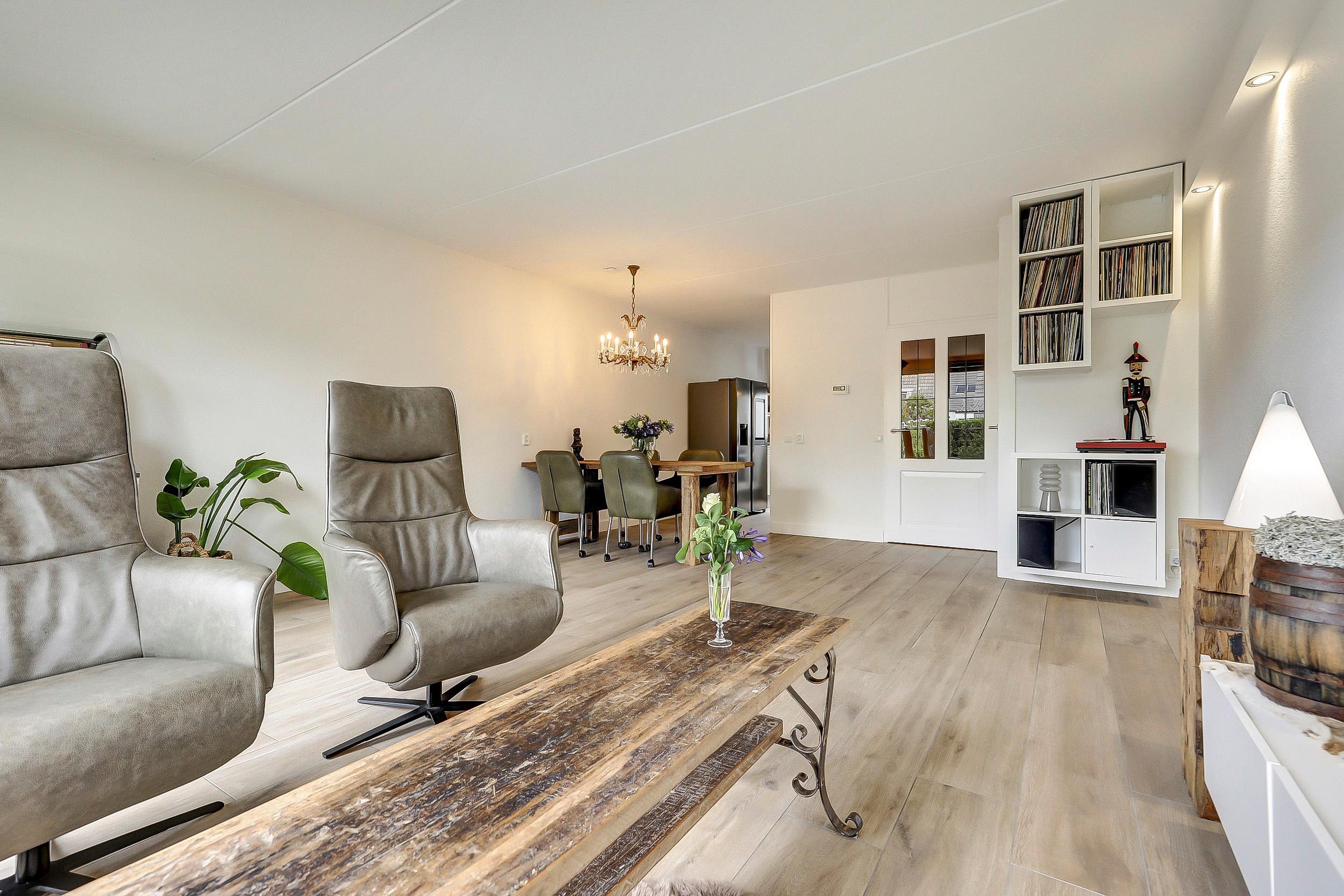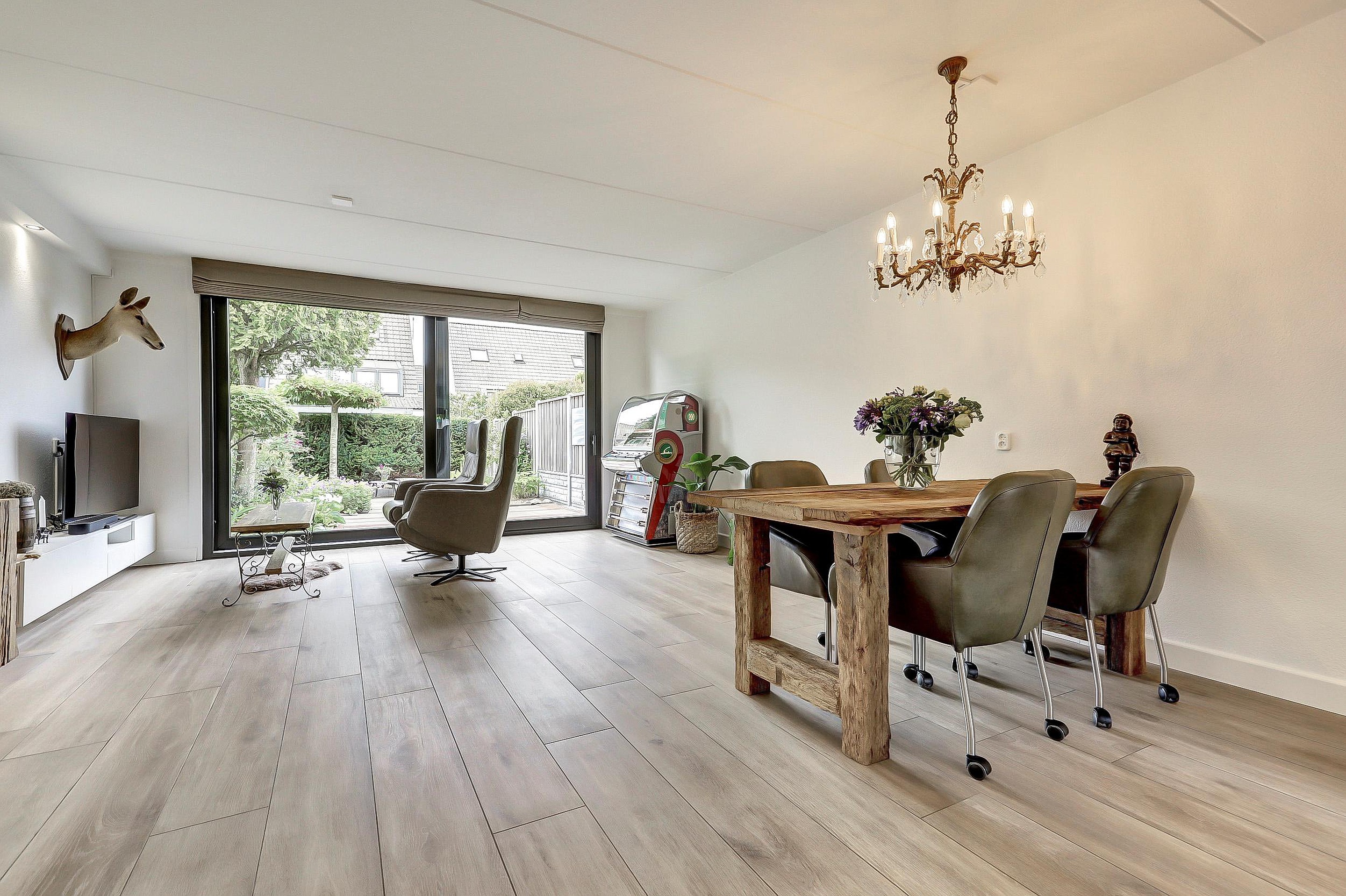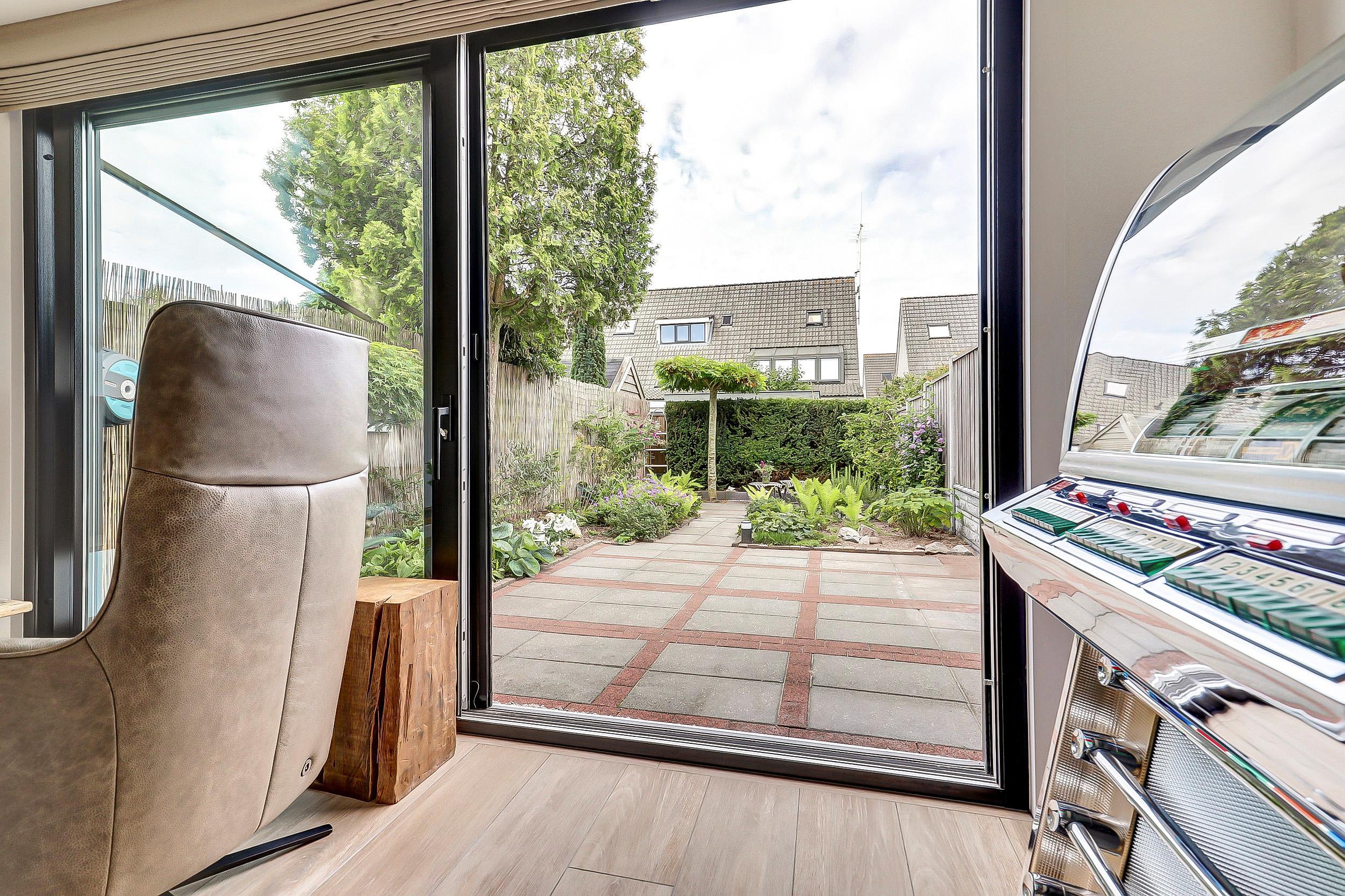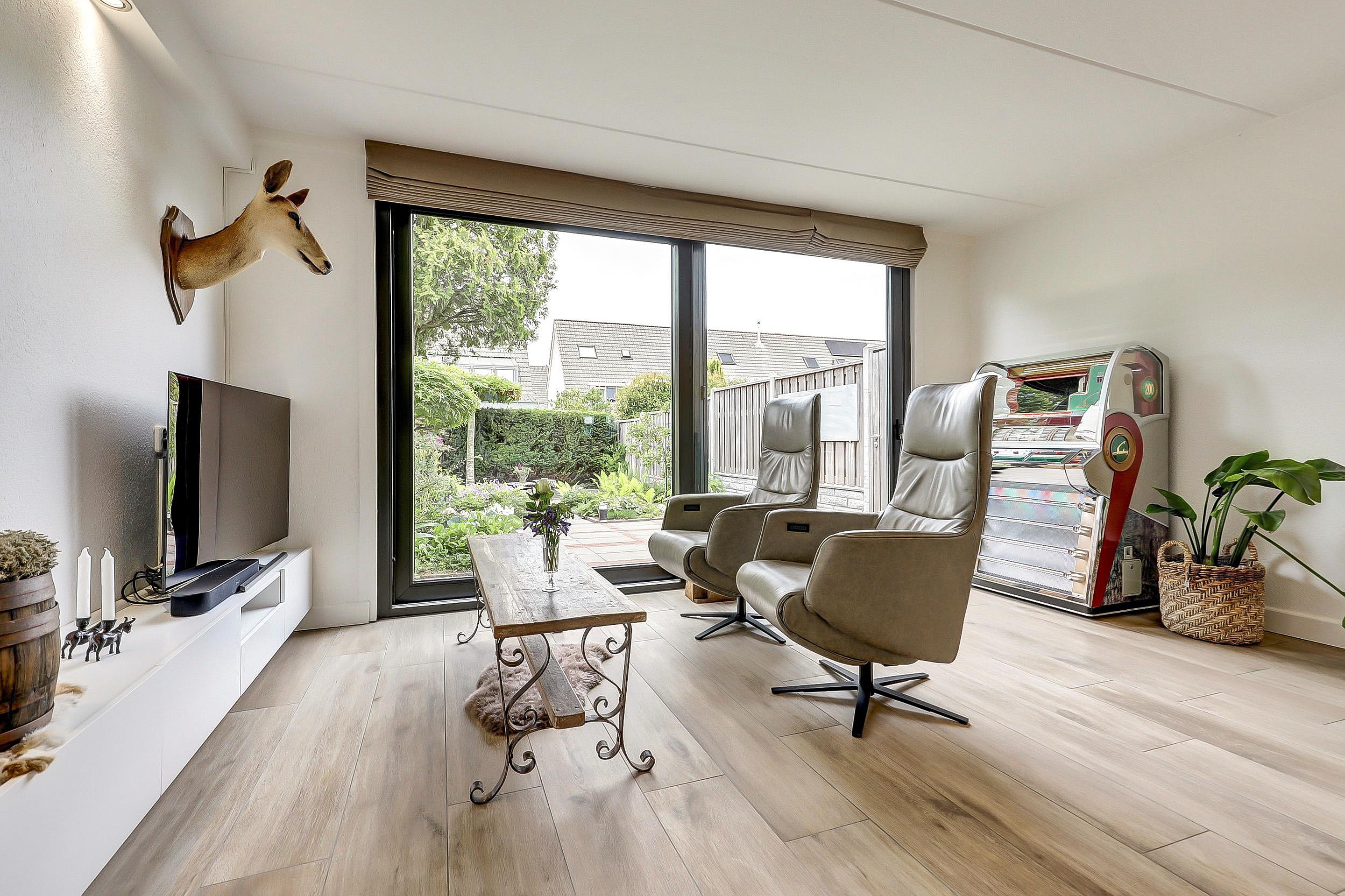 Via de ruime hal met modern (zwevend) toilet, meterkast, trapopgang en toegang tot de inpandige berging, loopt u door naar de sfeervolle woonkamer. De royale living is voorzien van een fraaie stenenvloer met vloerverwarming, een handige trapkast en een kunststof schuifpui richting de zonnige achtertuin.