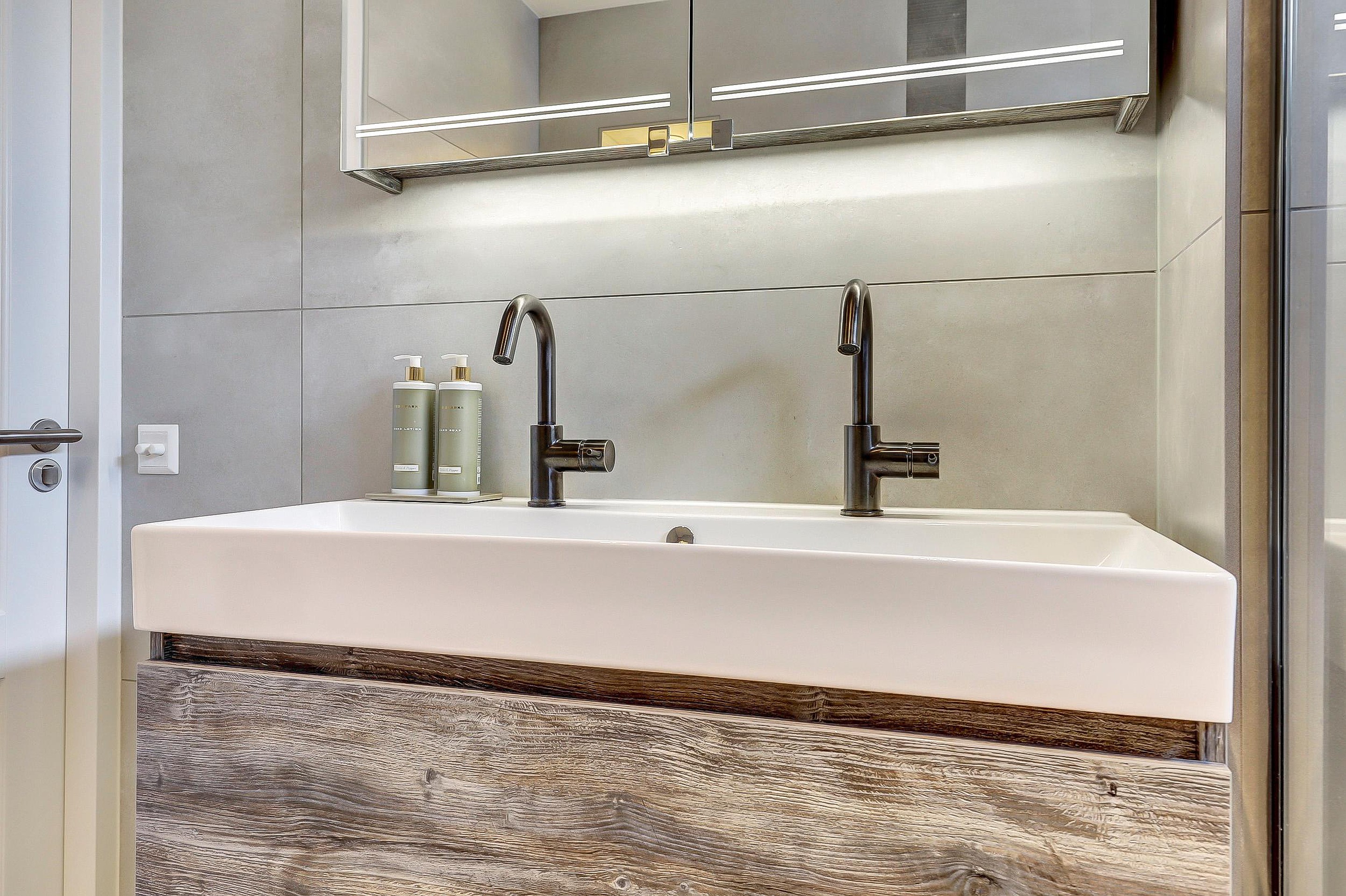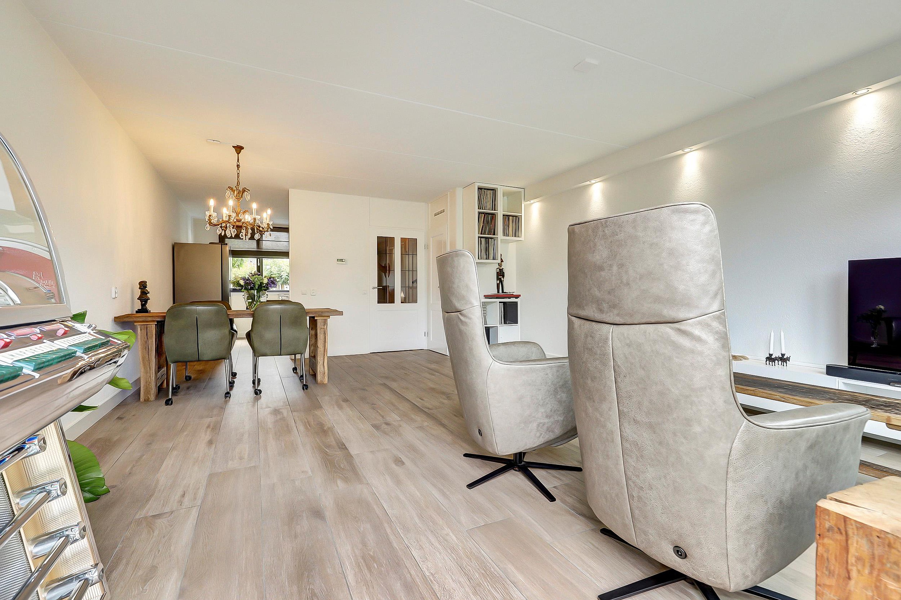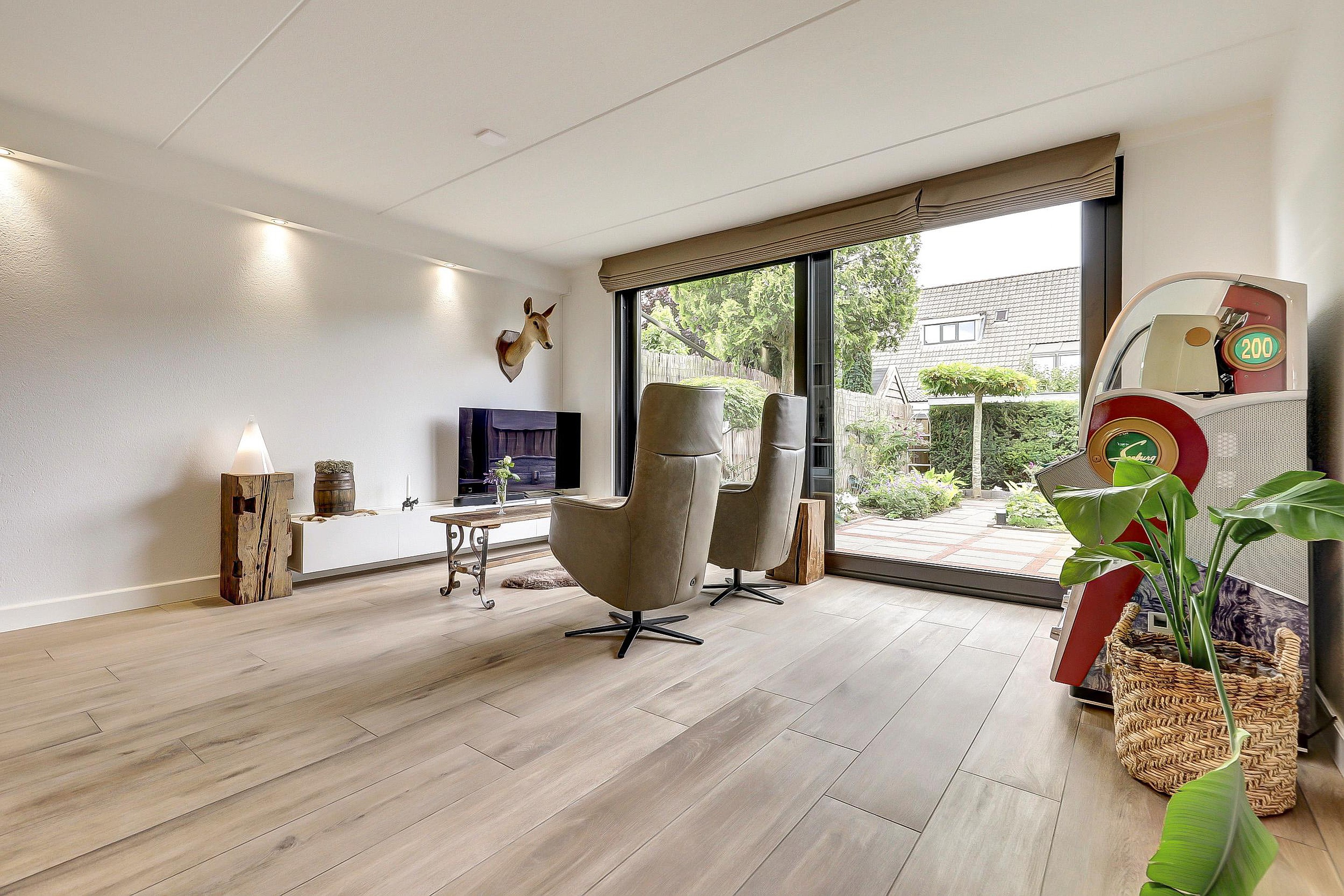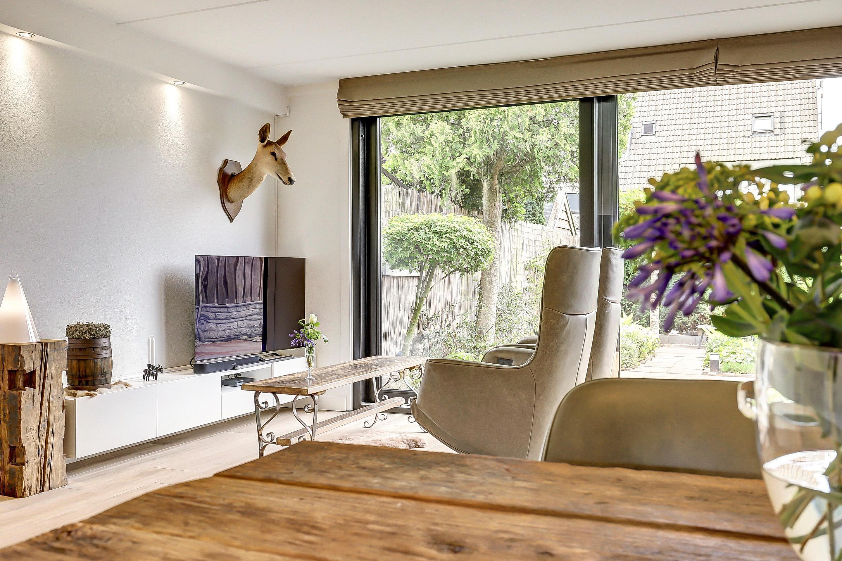 De halfopen keuken bevindt zich aan de voorzijde en is een echte blikvanger! Hier kookt u met plezier dankzij de moderne opstelling, voorzien van een keramische kookplaat, afzuigkap, luxe (stoom)oven, vaatwasser, (losse) Amerikaanse koelkast en een natuurstenen werkblad.