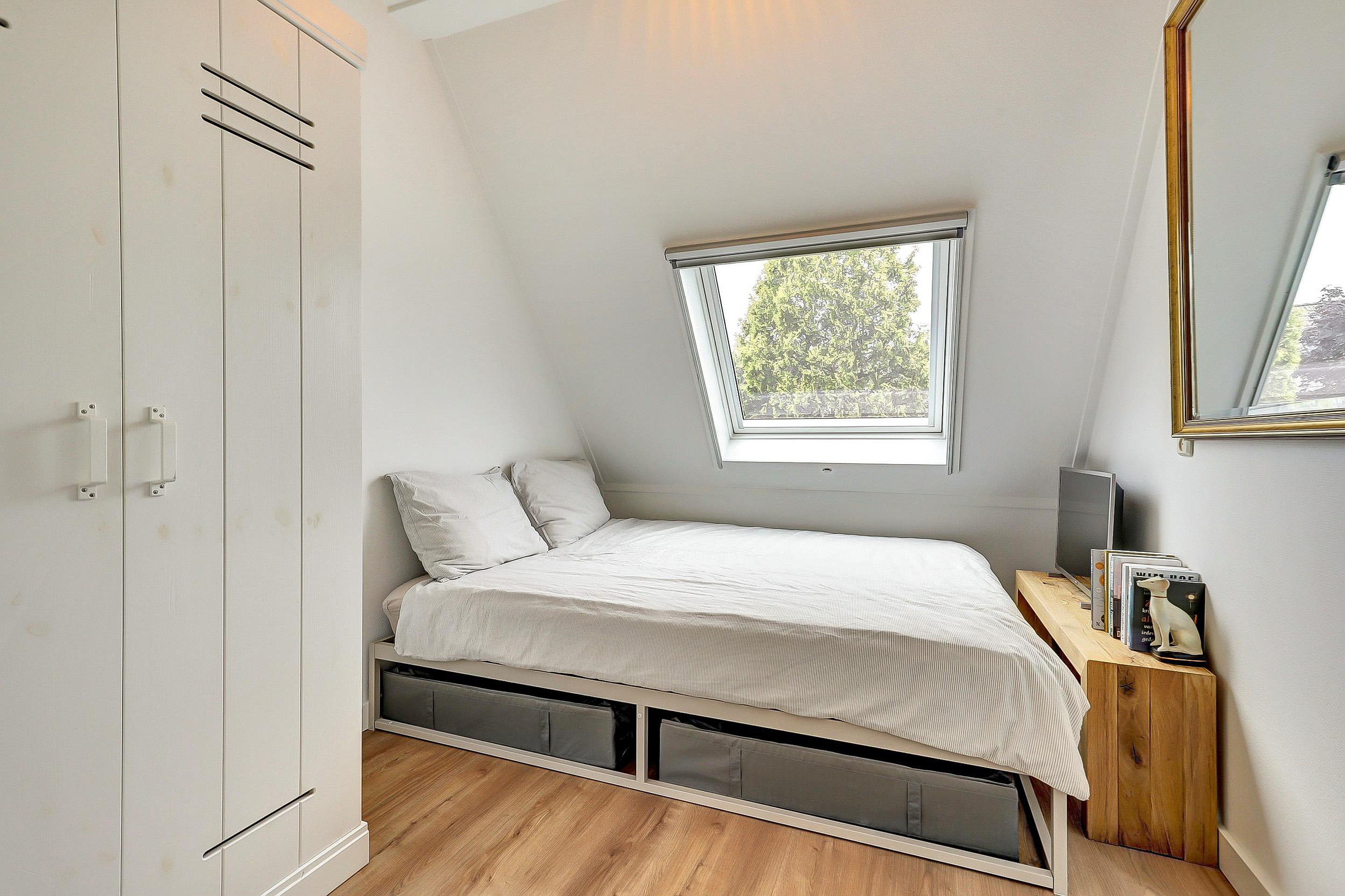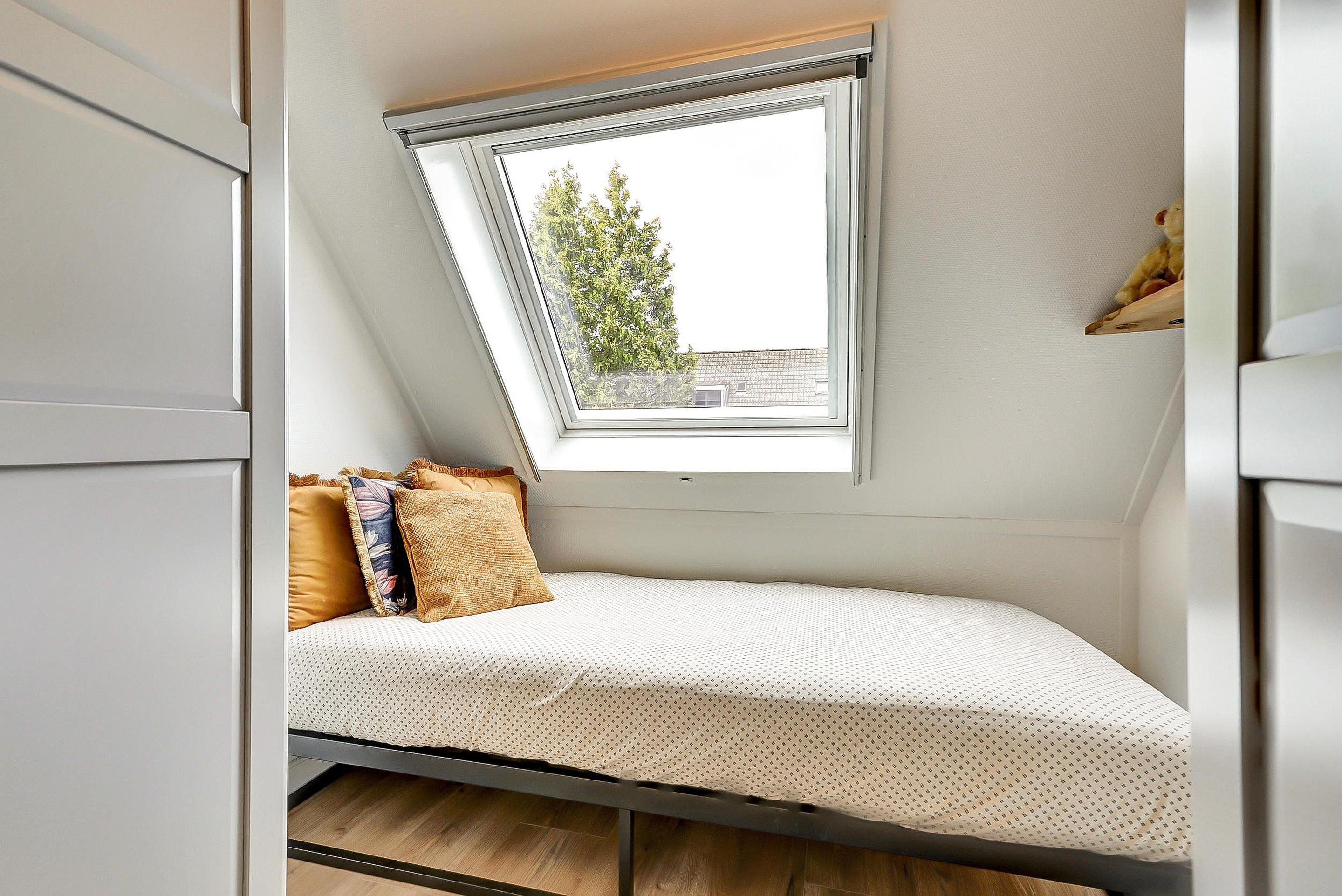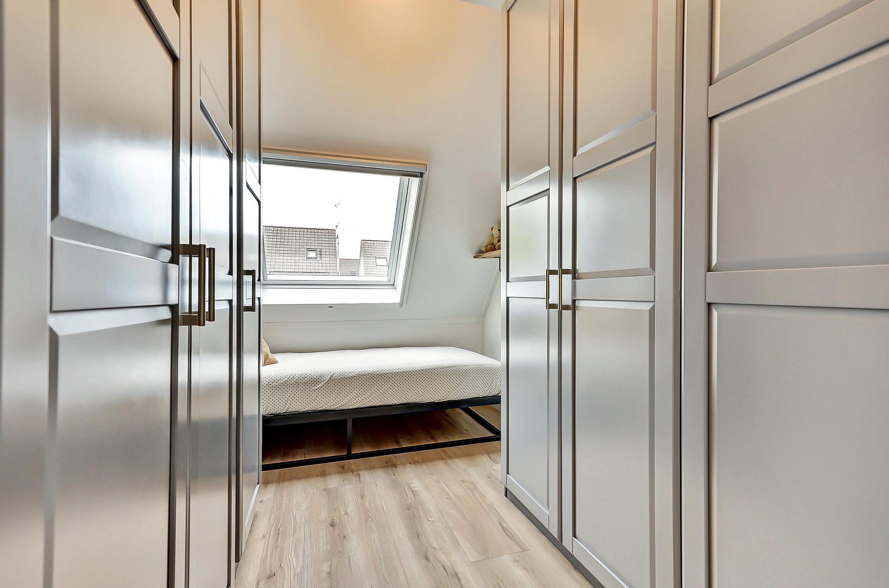 De overloop geeft toegang tot drie slaapkamers en een moderne badkamer. Twee slaapkamers liggen aan de achterzijde en zijn voorzien van dakramen, de derde slaapkamer bevindt zich aan de voorzijde. De badkamer is in 2022 vernieuwd en beschikt over een inloopdouche, dubbele wastafel met meubel, tweede toilet, vloerverwarming én een raam voor natuurlijk licht en ventilatie.
