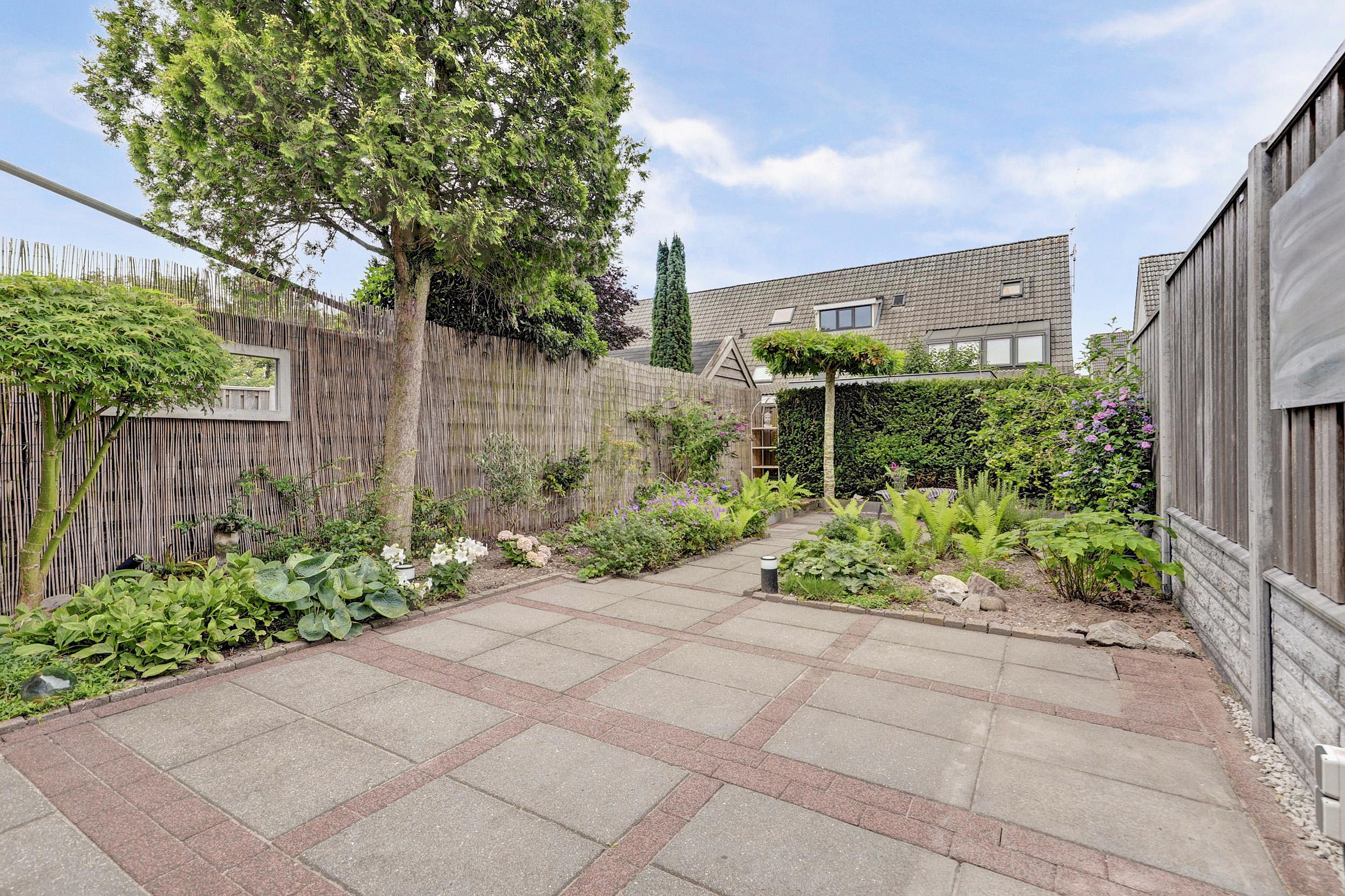 De achtertuin ligt op het zuidwesten, waardoor u vrijwel de hele dag kunt genieten van de zon. De tuin is netjes aangelegd, beschikt over een poort aan de rechterzijde en meet ca. 5,2 bij 10,5 meter. De schutting is in 2022 geplaatst.