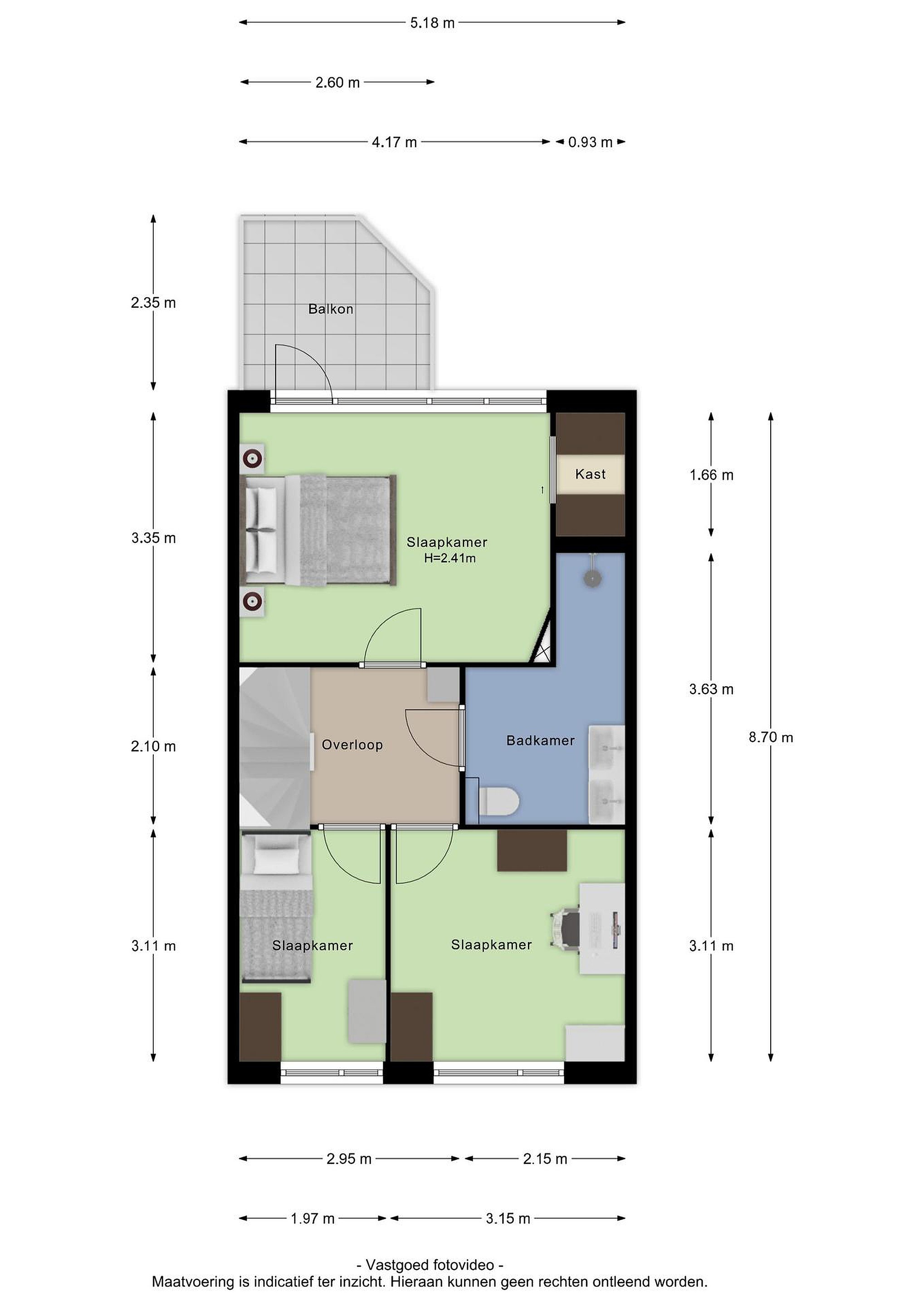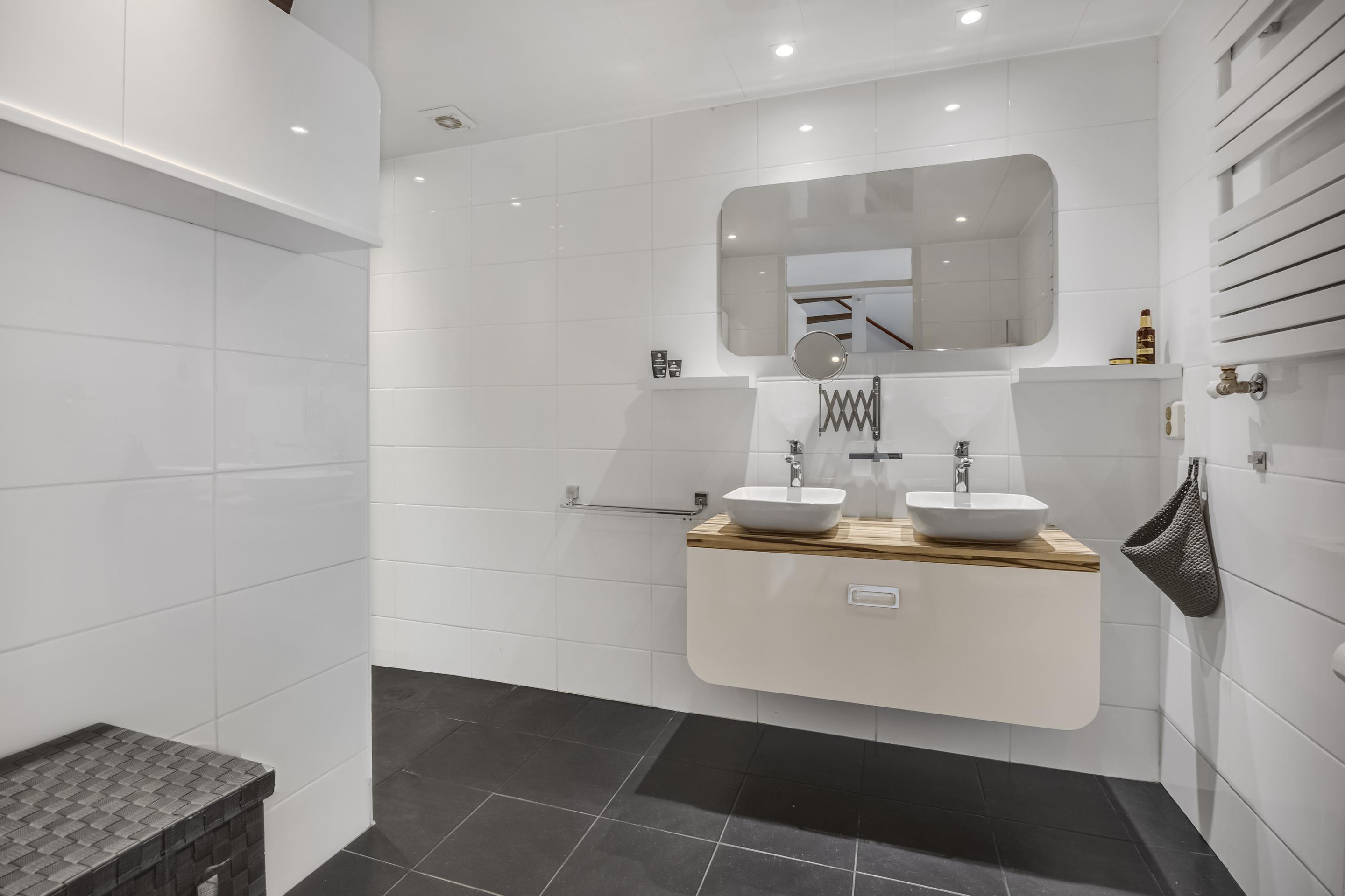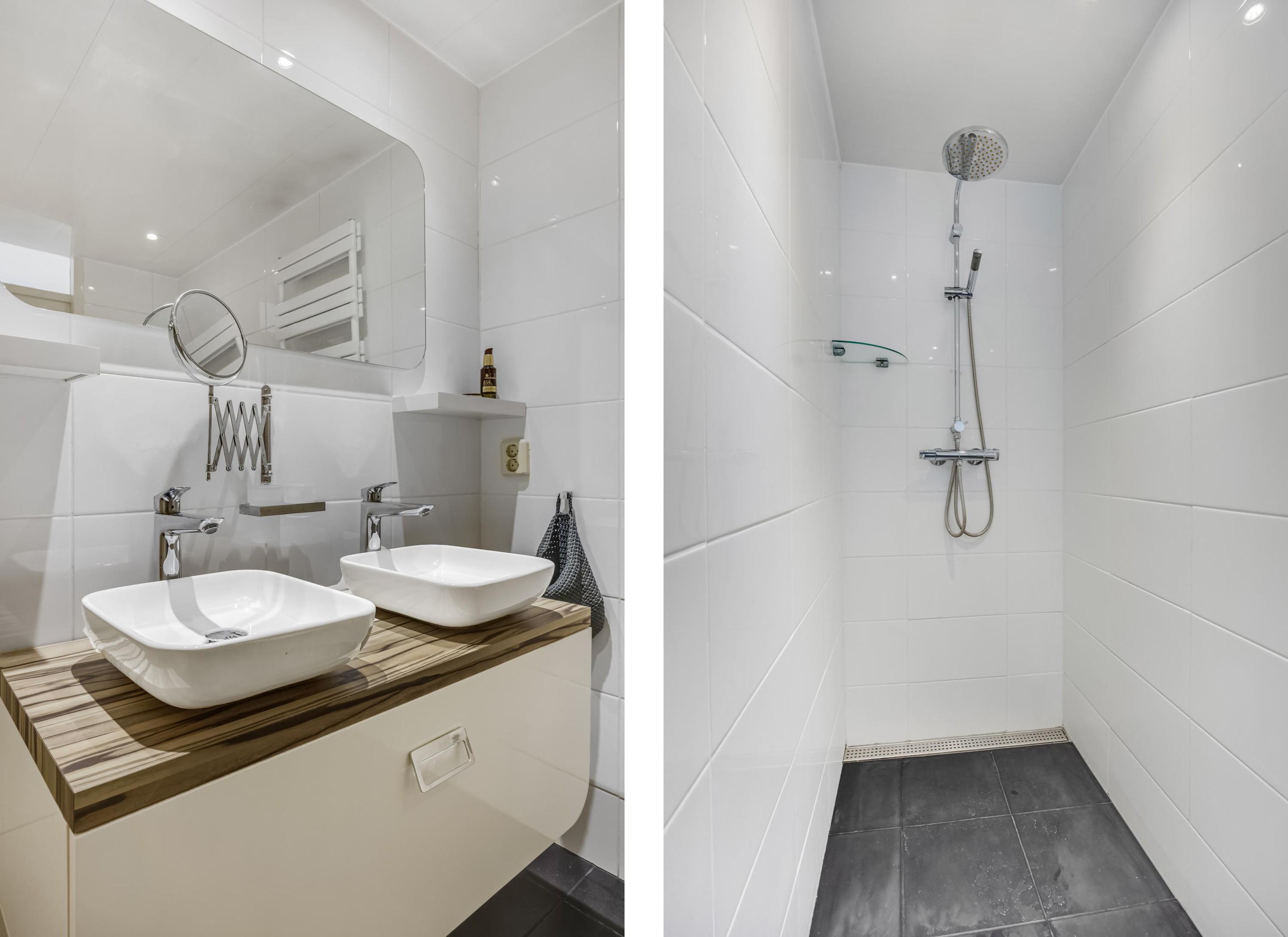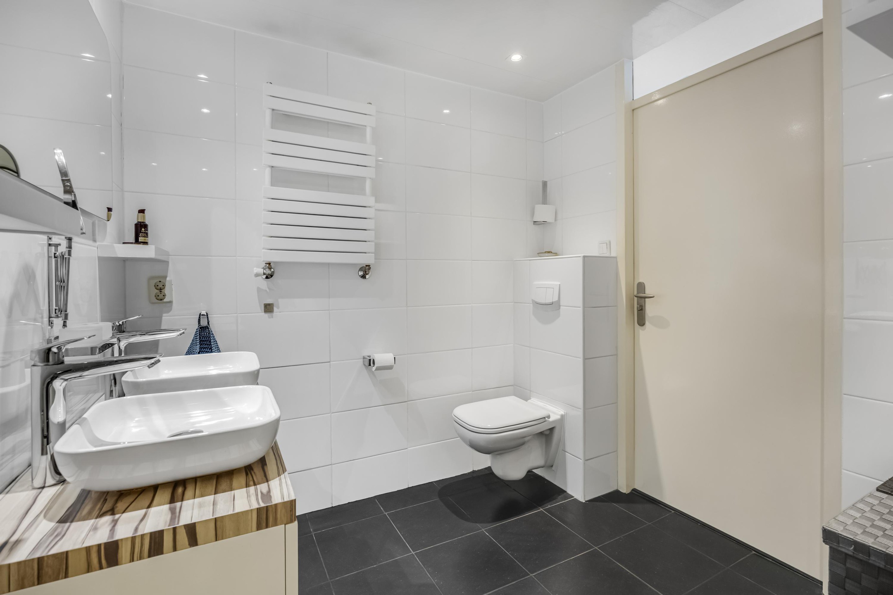 Eerste verdieping Op de eerste verdieping vind je drie comfortabele slaapkamers. De ruime slaapkamer aan de achterzijde biedt toegang tot een balkon en heeft een ingebouwde garderobekast. Aan de voorzijde liggen nog twee goed bemeten kamers. De badkamer is praktisch ingericht met een wandcloset, inloopdouche, handdoekradiator, een dubbel wastafelmeubel met grote spiegel en inbouwspots.