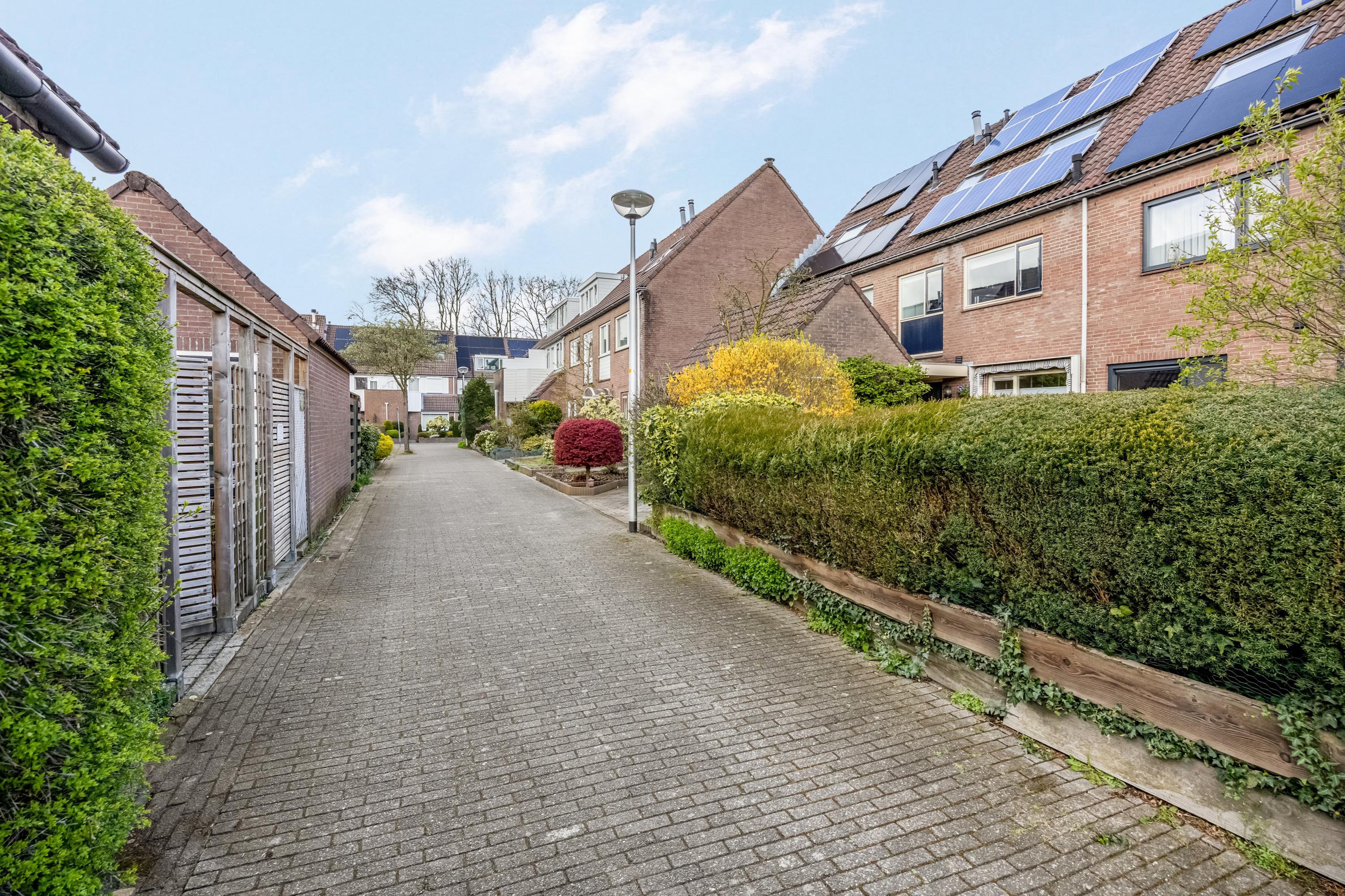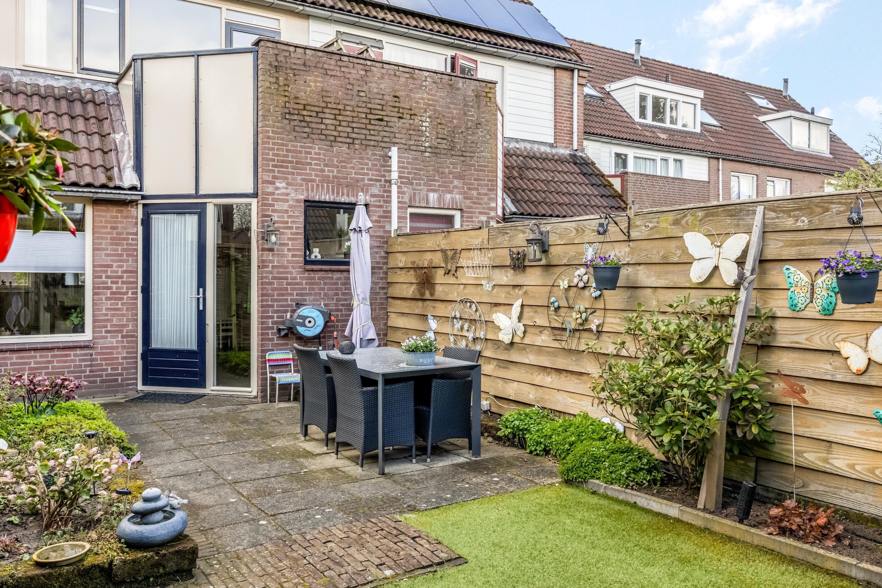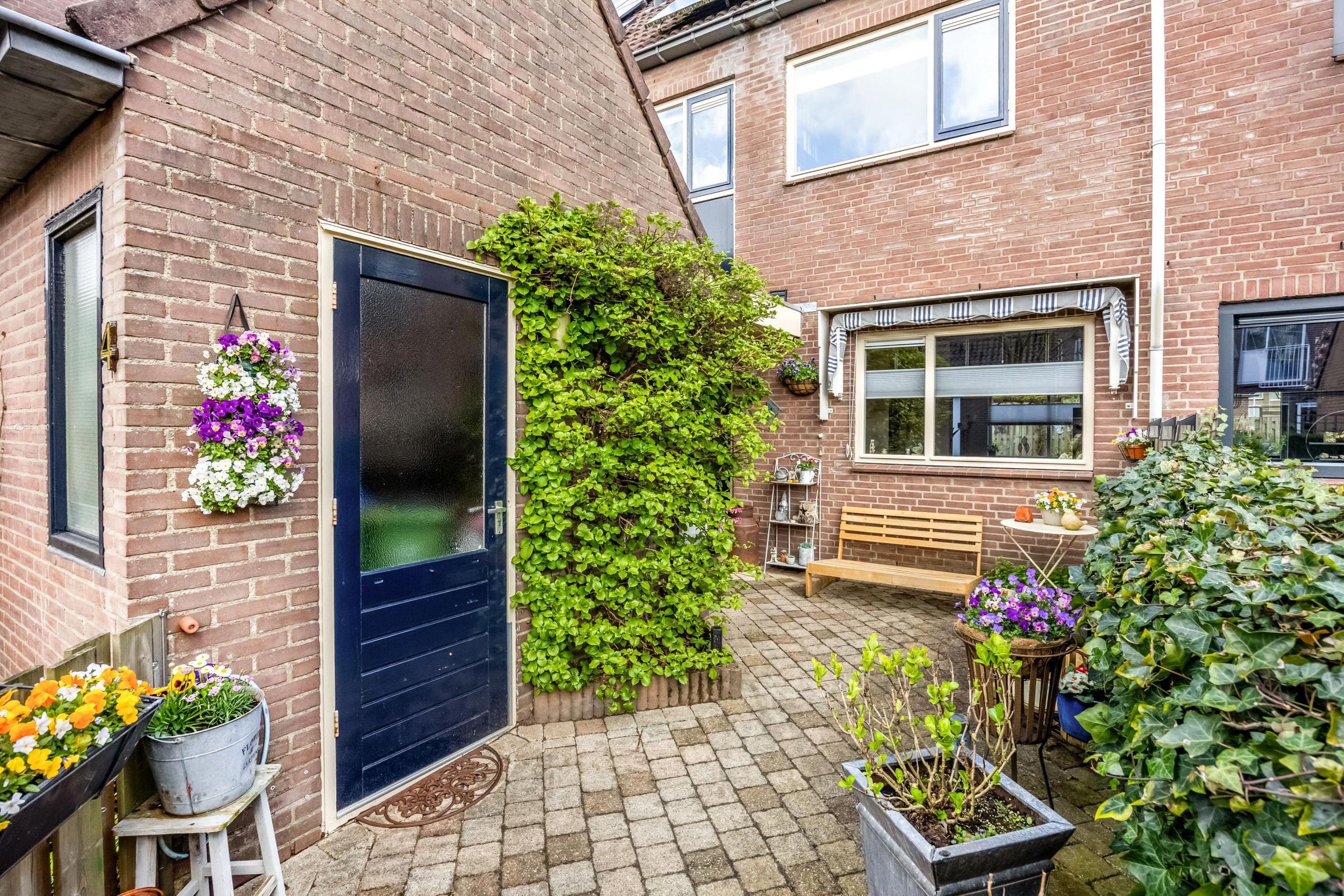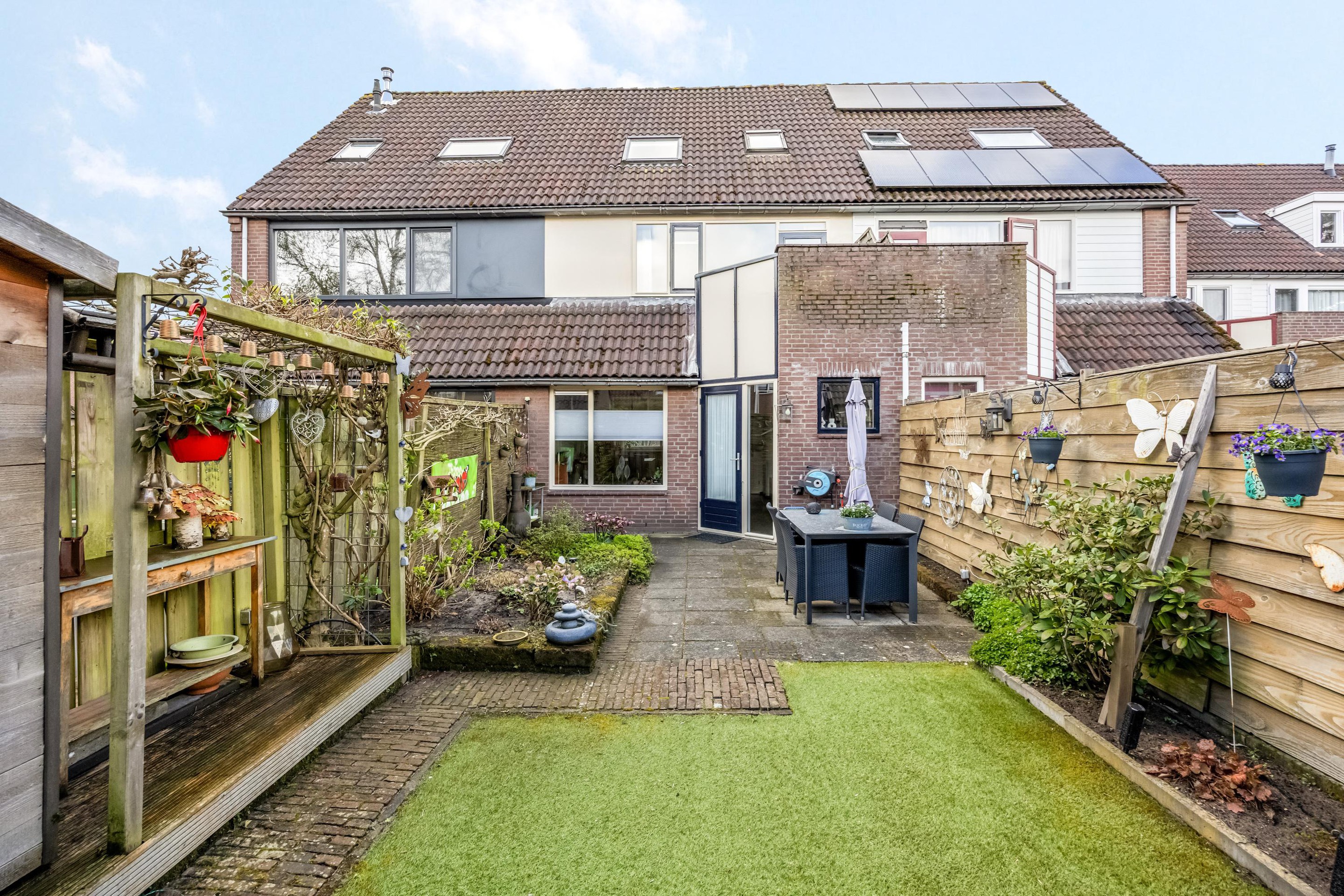 De fraai aangelegde voortuin zorgt voor extra privacy en een groene, rustige uitstraling. De diepe achtertuin, gelegen op het oosten, is verzorgd ingericht met een mooie mix van groen en bestrating. Hier geniet je van zon, rust en ruimte. Via de achterom bereik je eenvoudig de steeg.