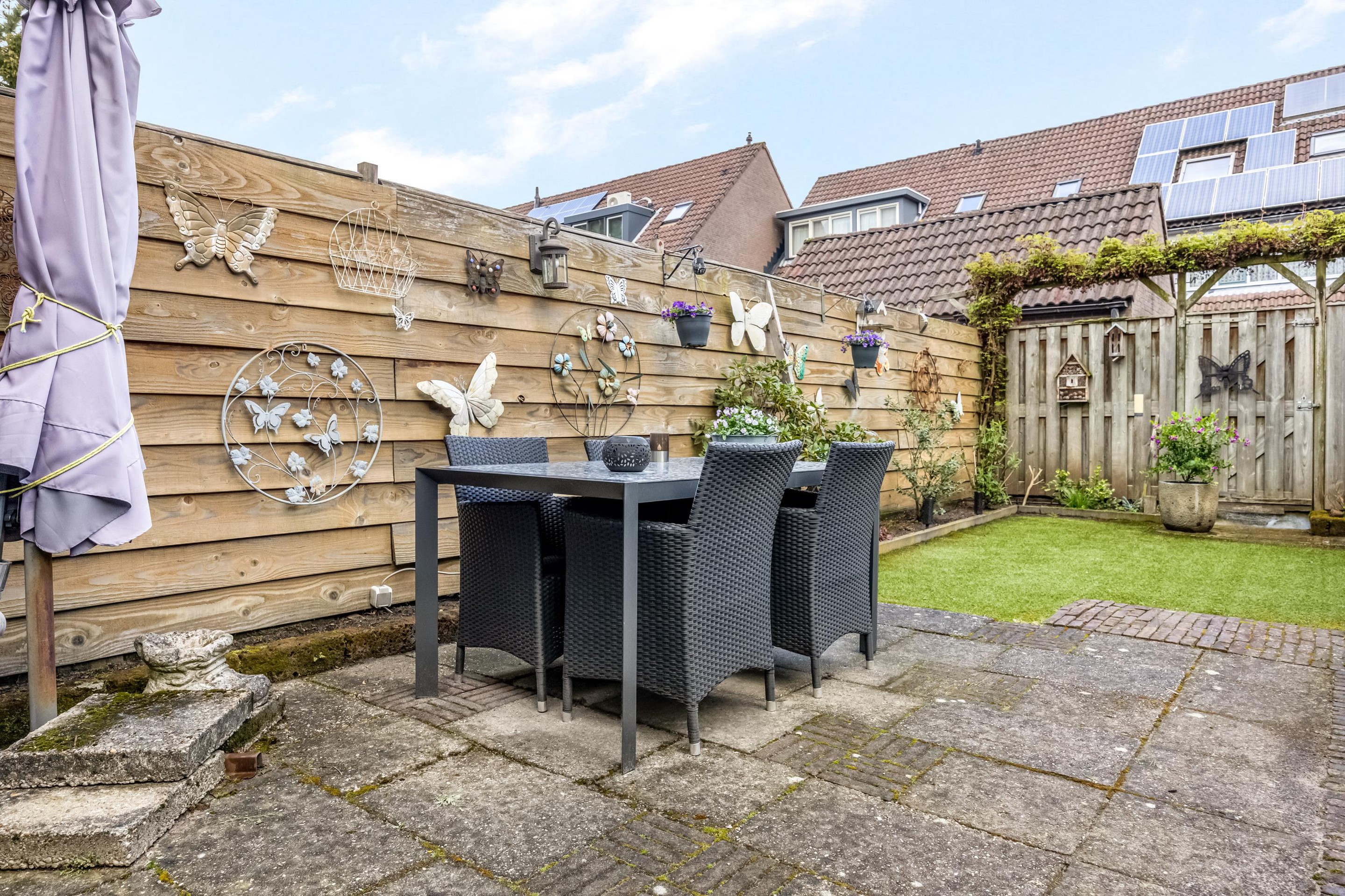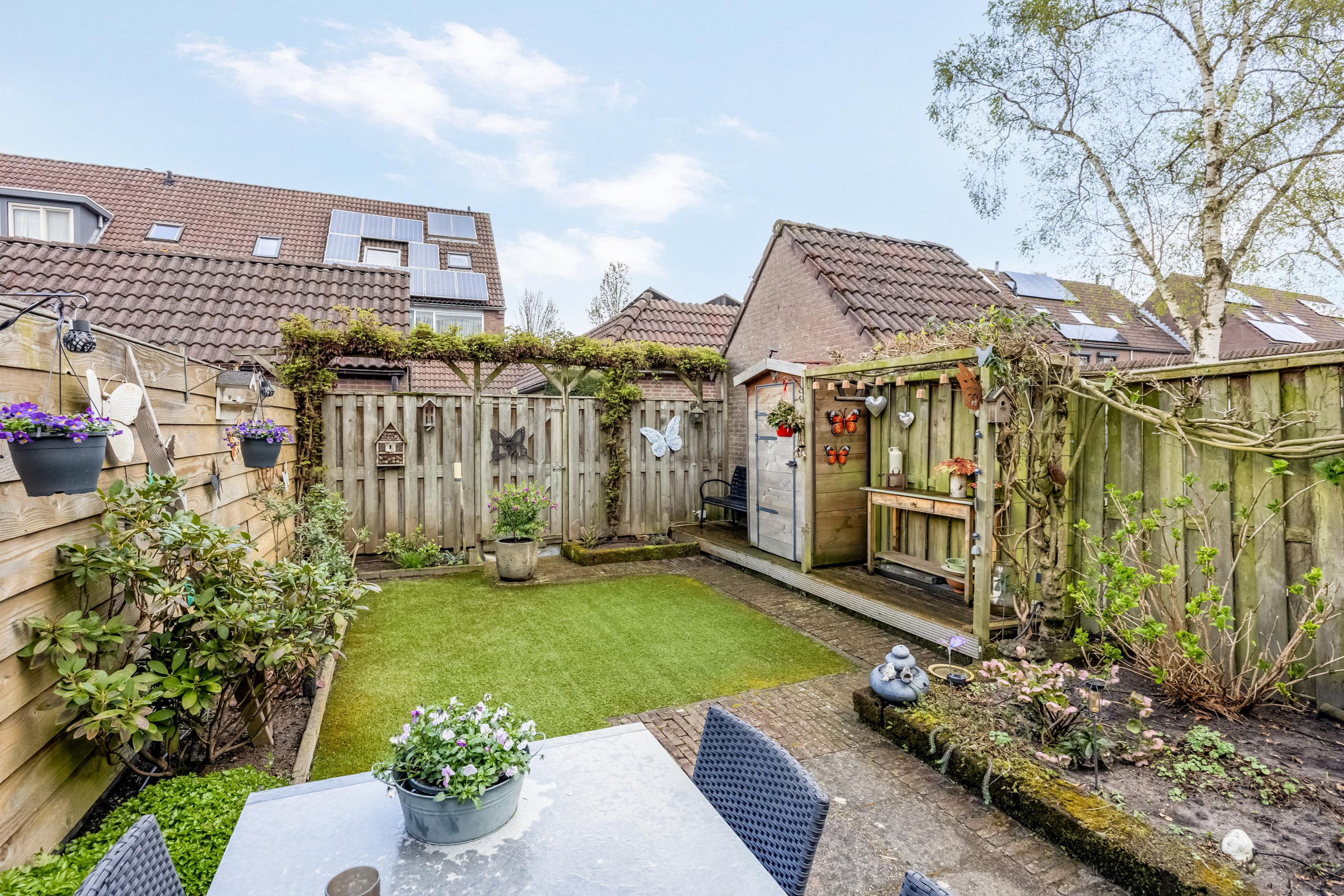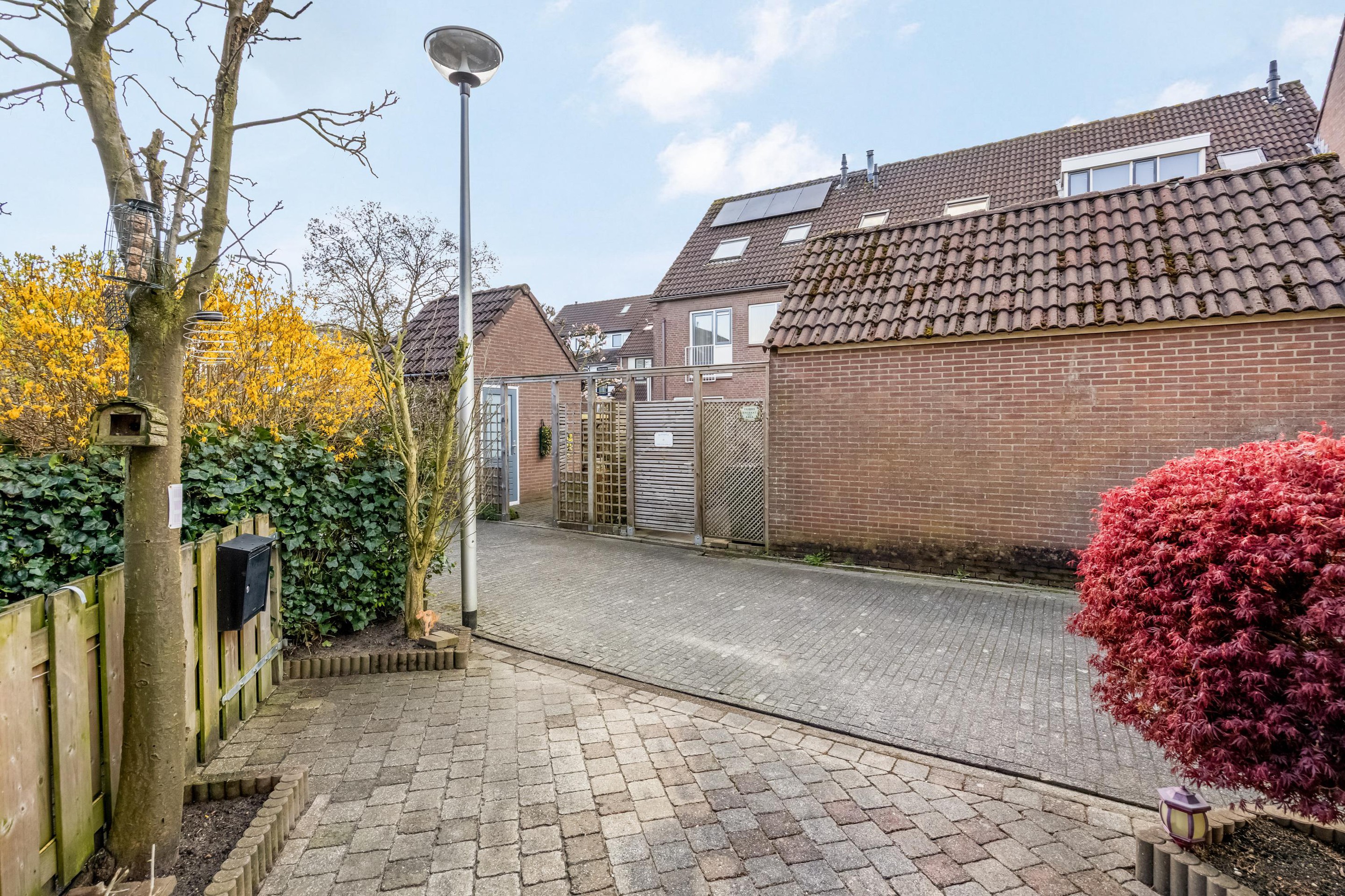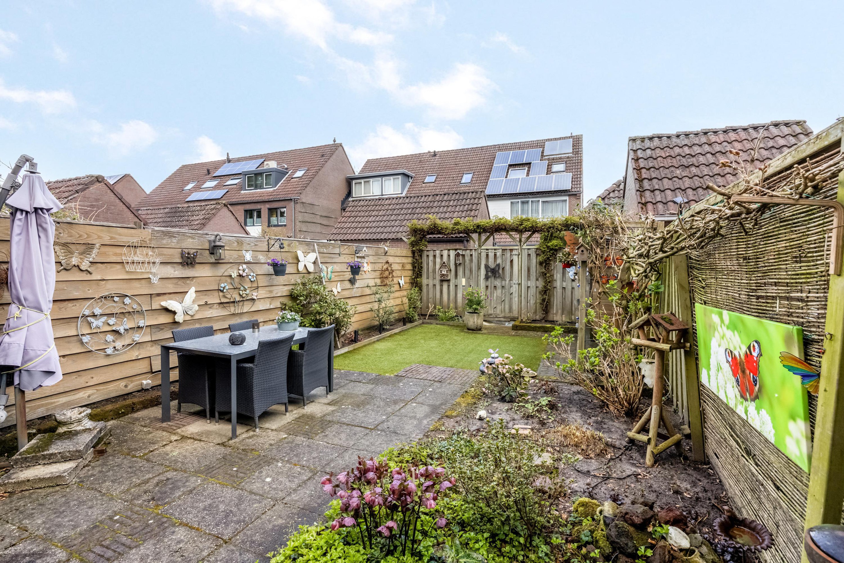De fraai aangelegde voortuin zorgt voor extra privacy en een groene, rustige uitstraling. De diepe achtertuin, gelegen op het oosten, is verzorgd ingericht met een mooie mix van groen en bestrating. Hier geniet je van zon, rust en ruimte. Via de achterom bereik je eenvoudig de steeg.